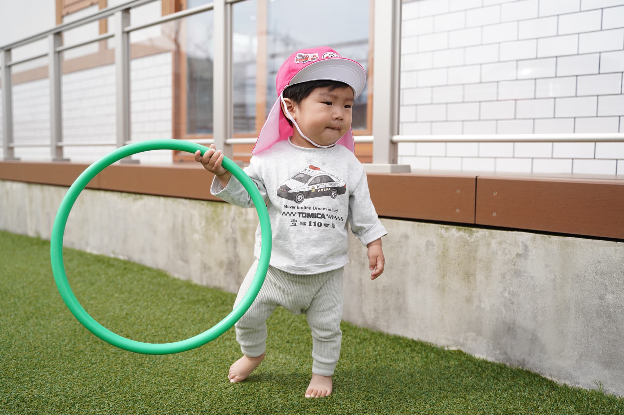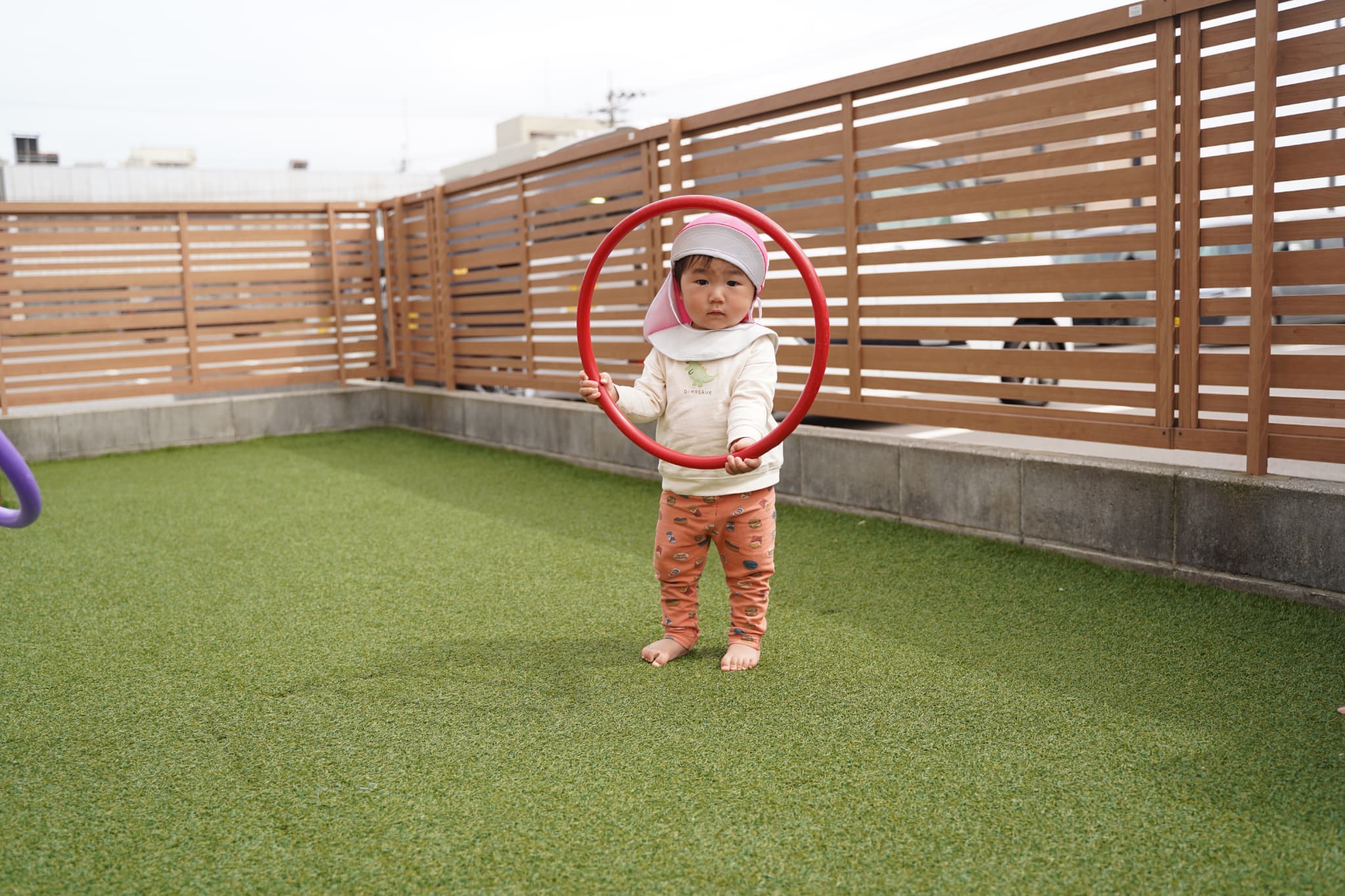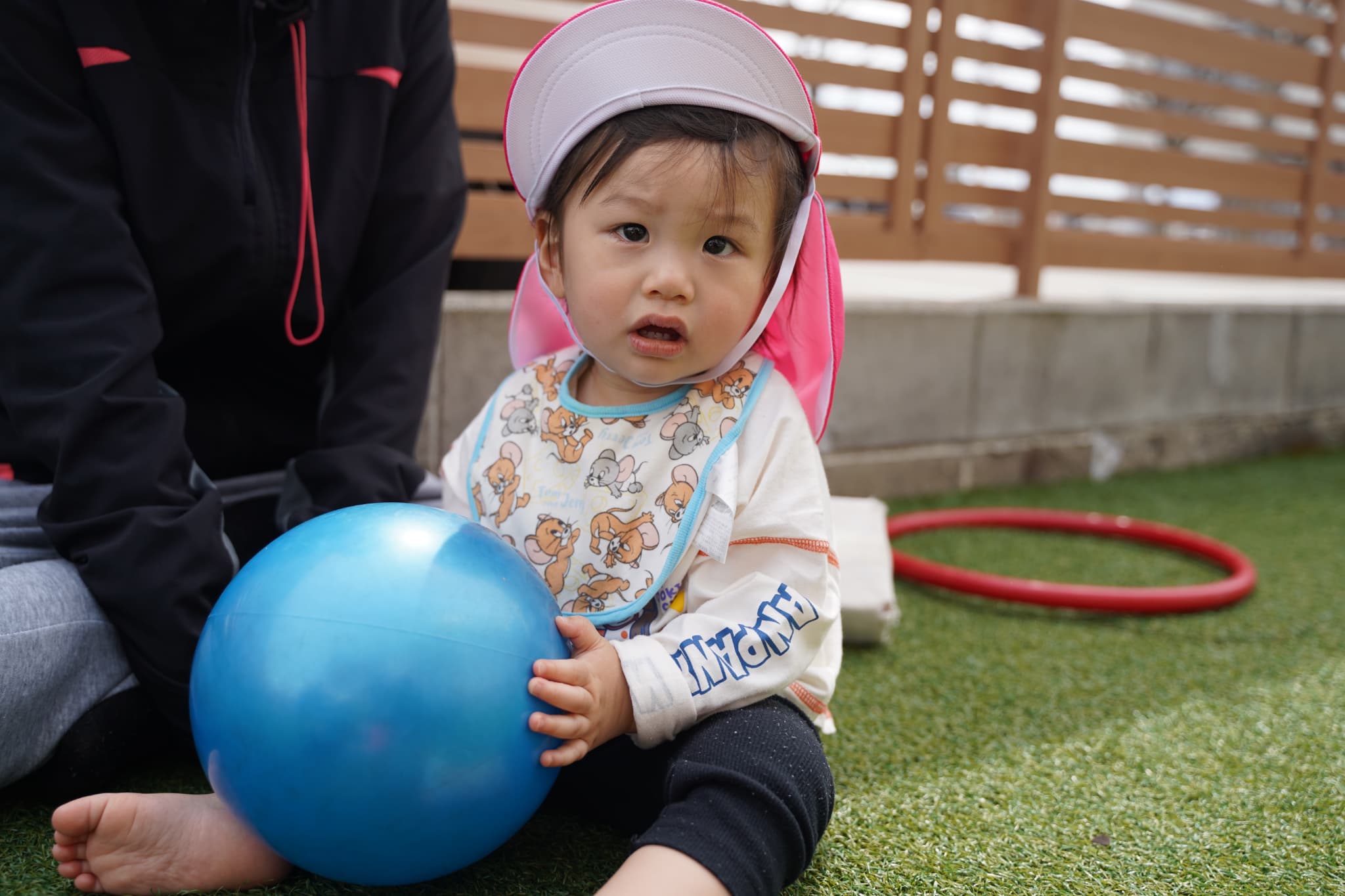 園庭でフラフープやボールを出して遊びましたよ♩