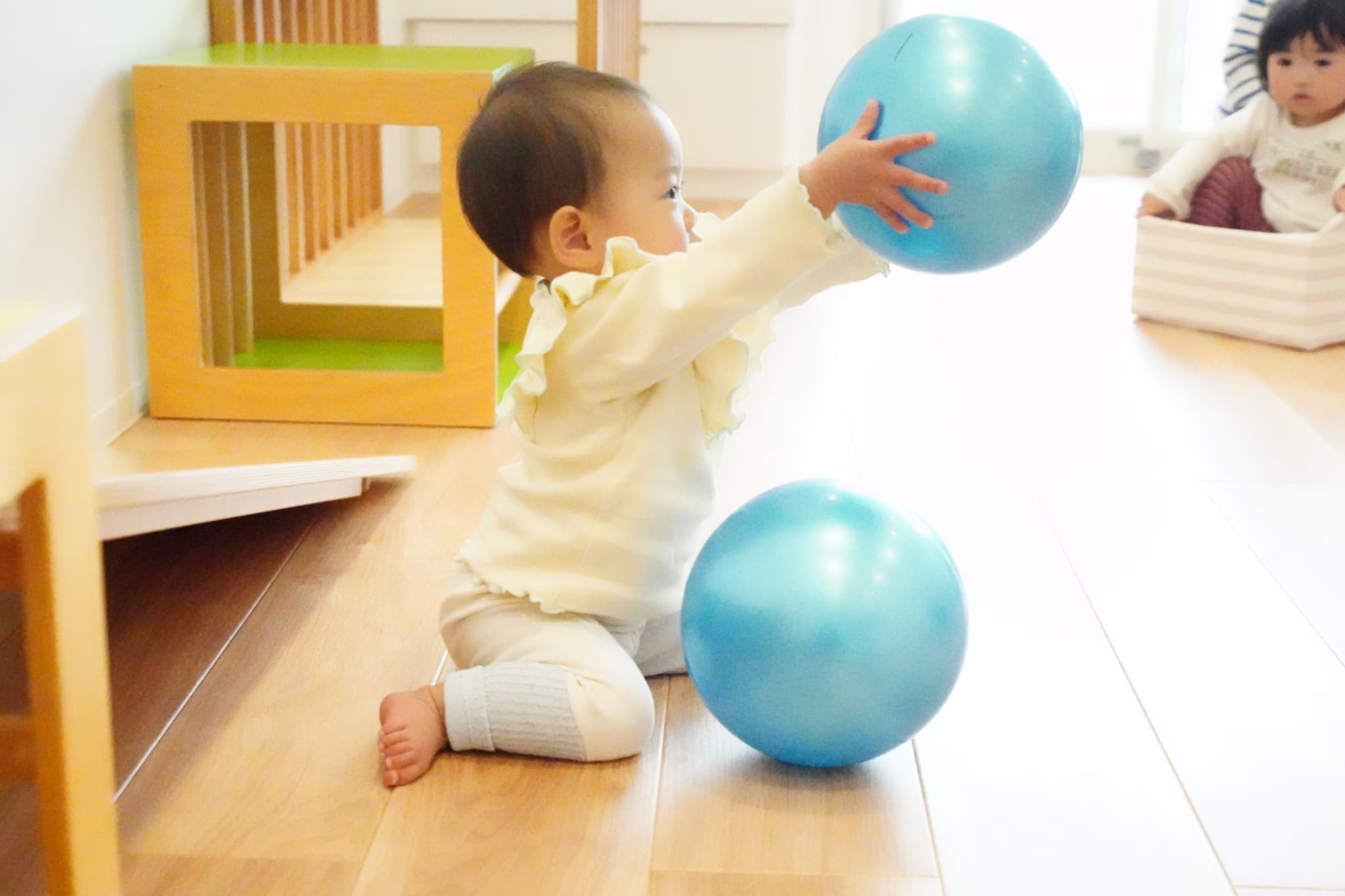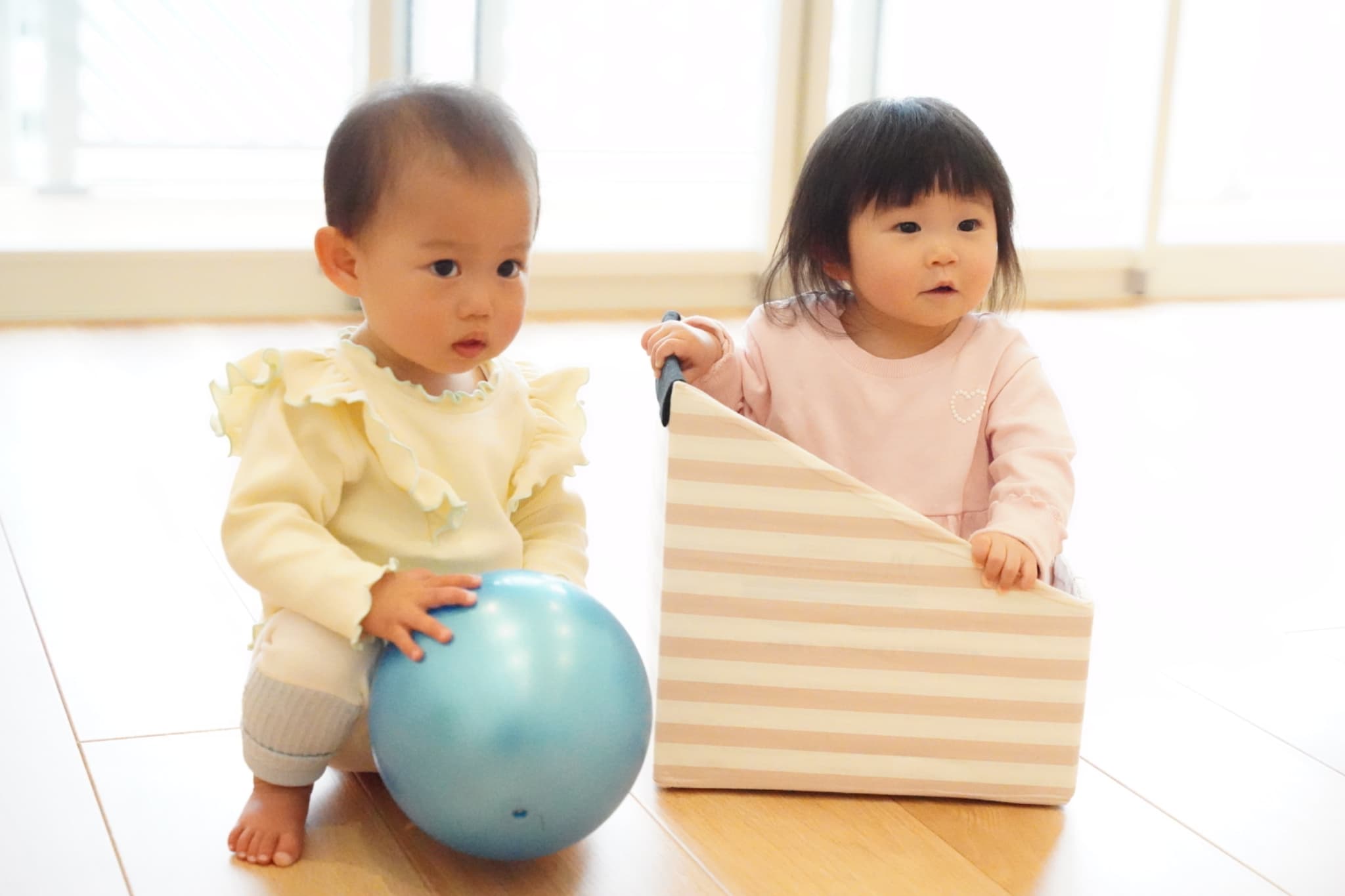 押し箱やボールに興味津々で積極的に触りにいく子ども達でした😉🤲
