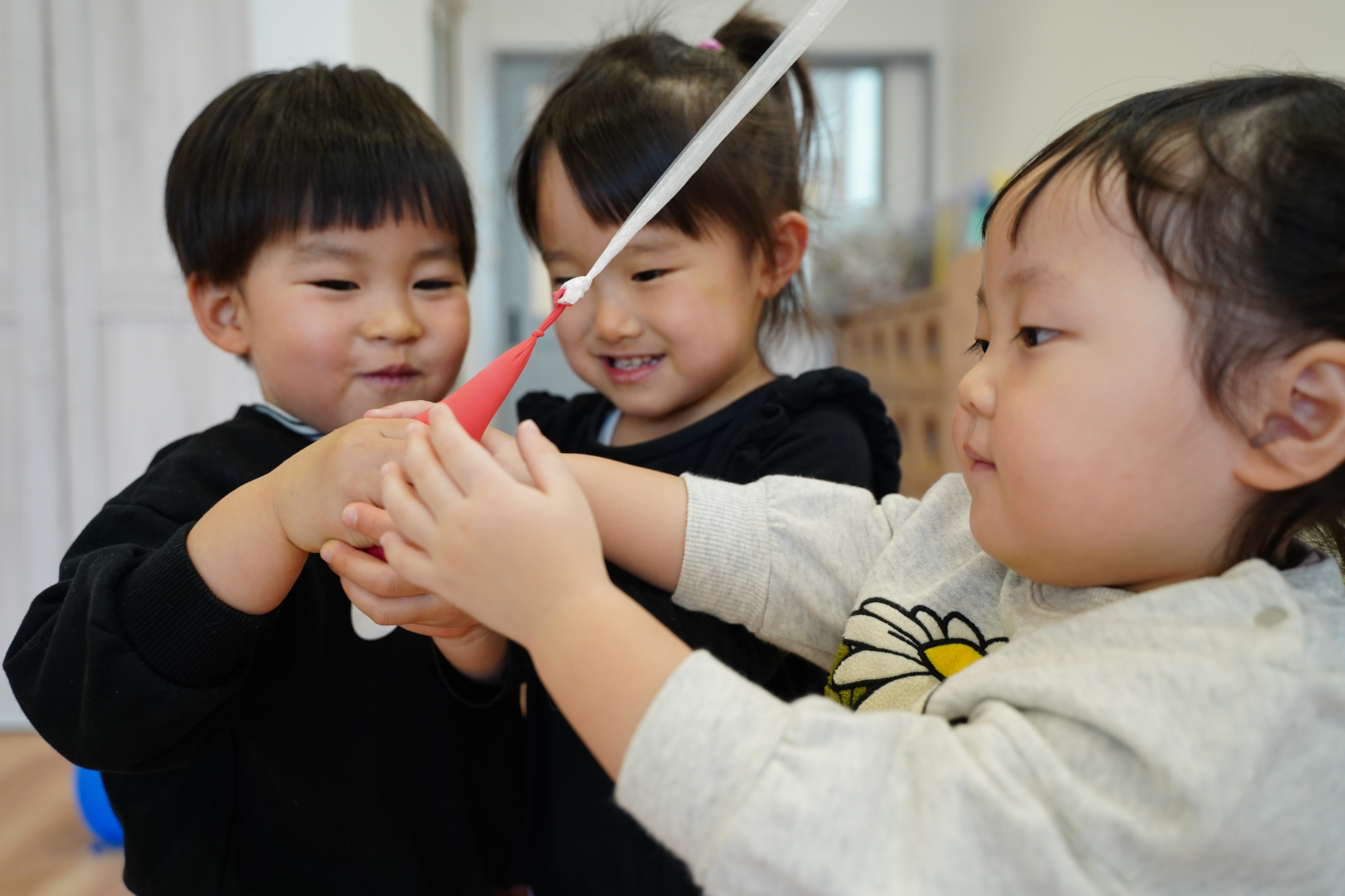 プレイルームで年齢別に分かれて体も動かしてあそびました🎉