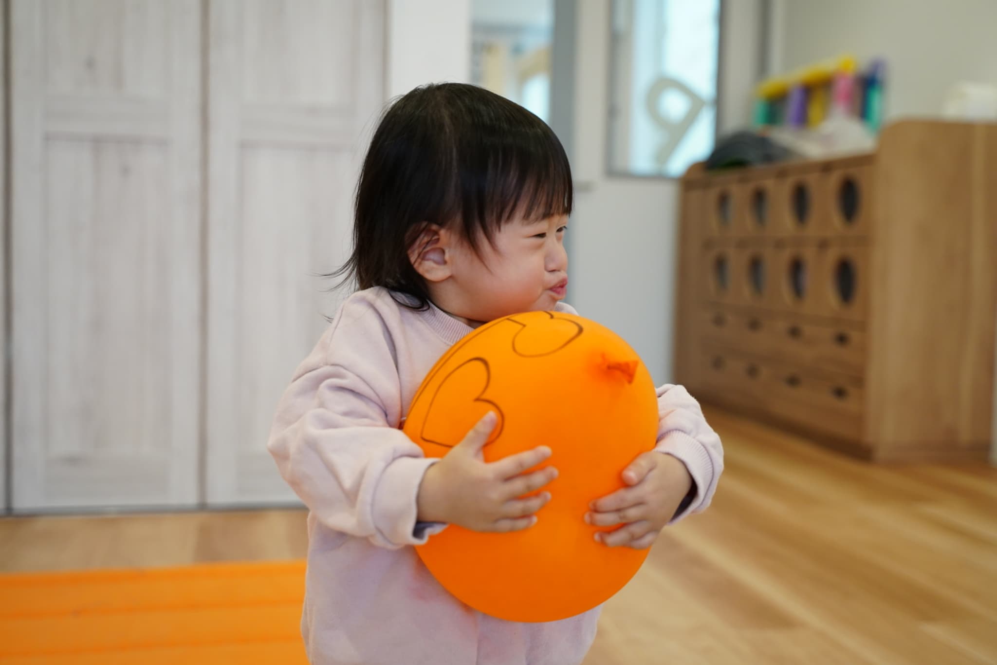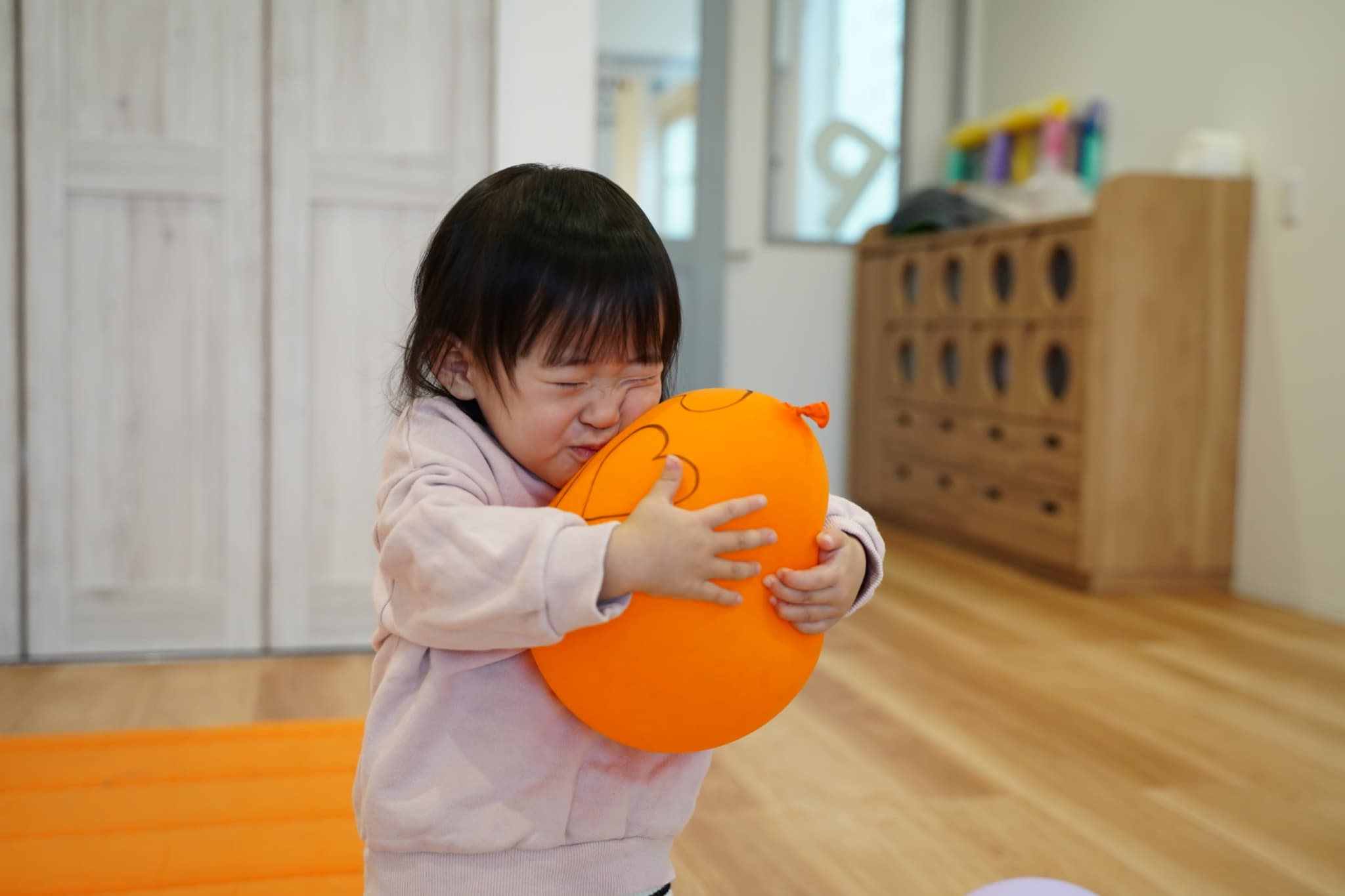 「こわーい」と遠ざかる子もいれば、じっくり観察して「めめ」「はな」と顔のパーツを確認する子もいましたよ👹