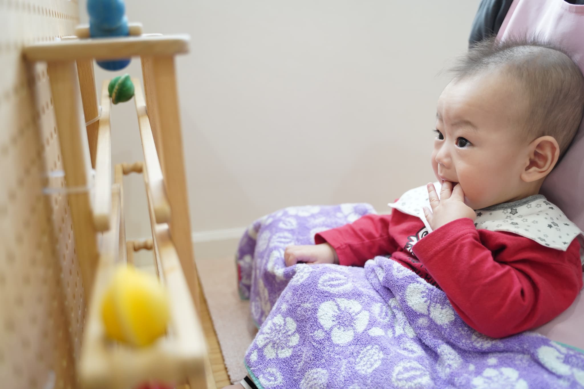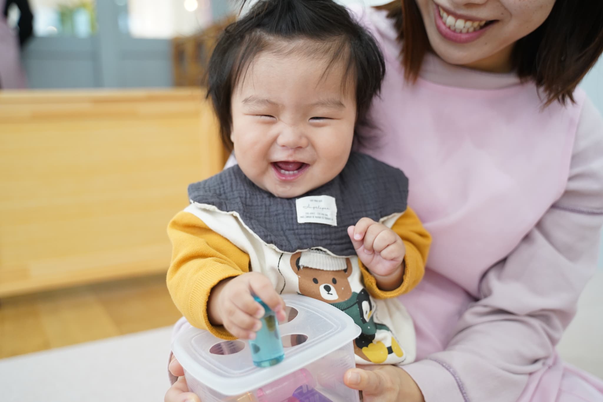 はじめてのしゃぼんだま遊びをするとすごく興味津々なさくらんぼさんです🍒