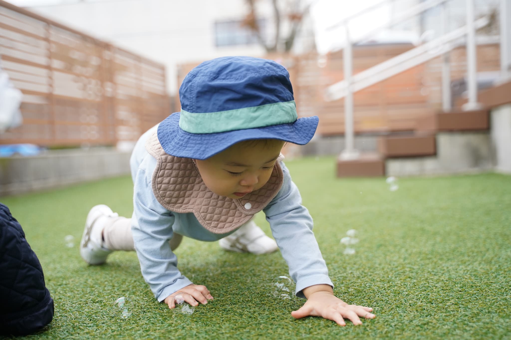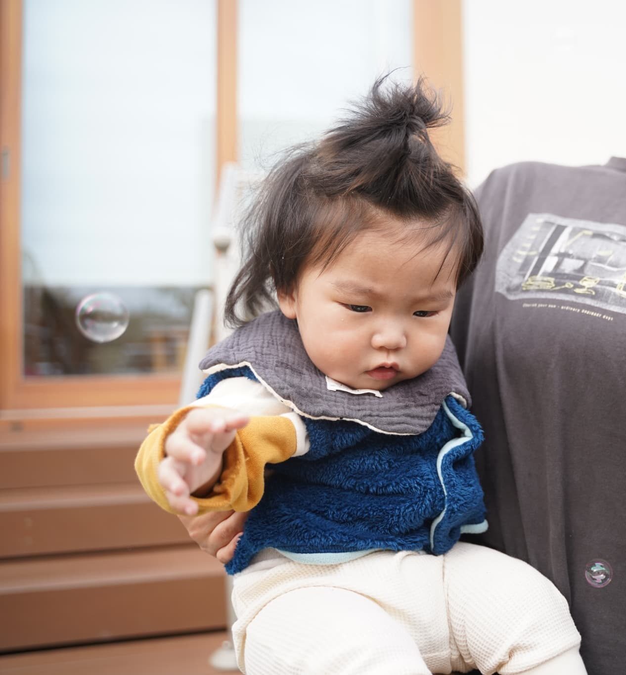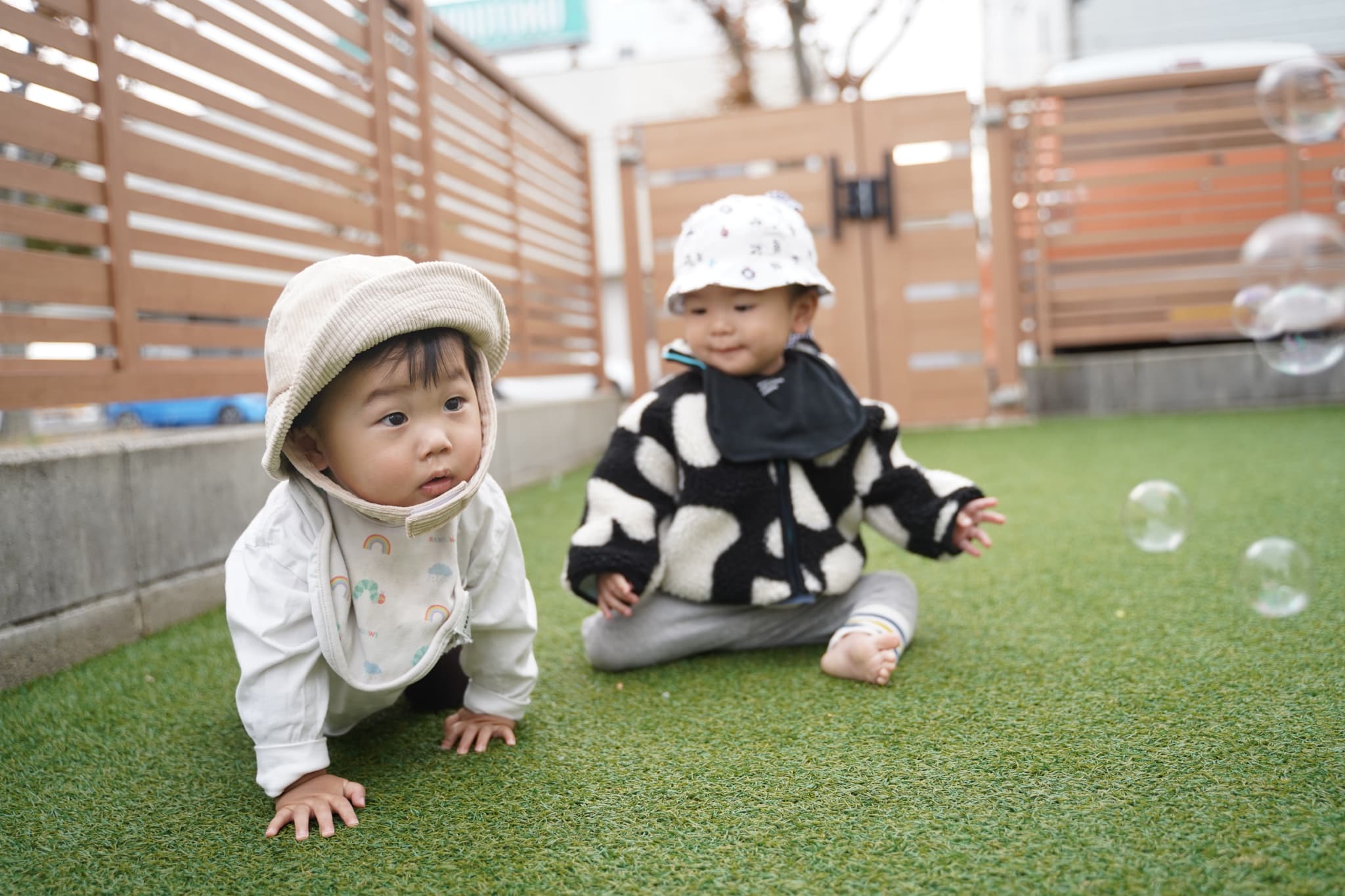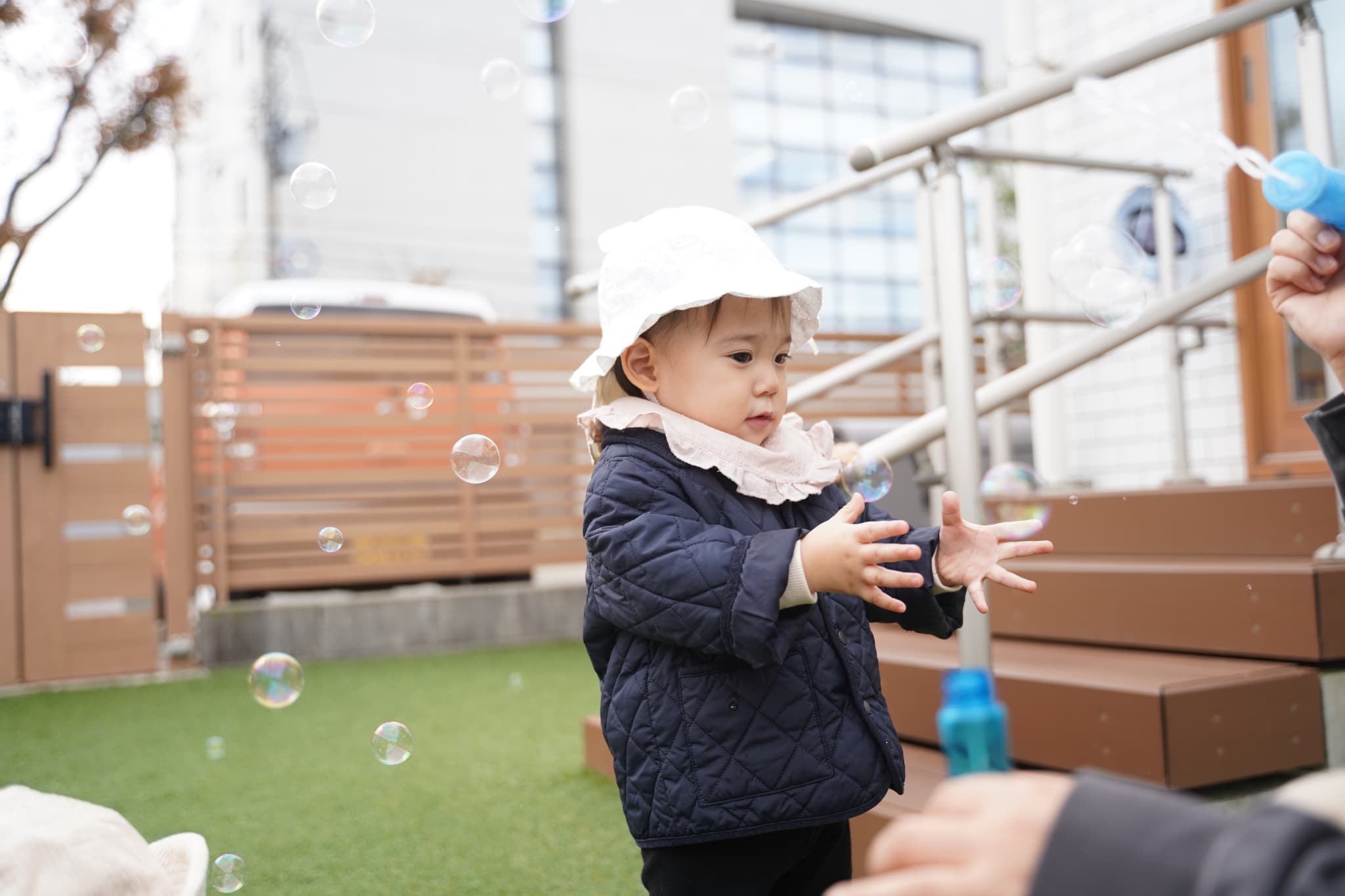 ふわふわ飛んでいくシャボン玉を「まてまて〜!!」と、夢中に追いかけていました😆