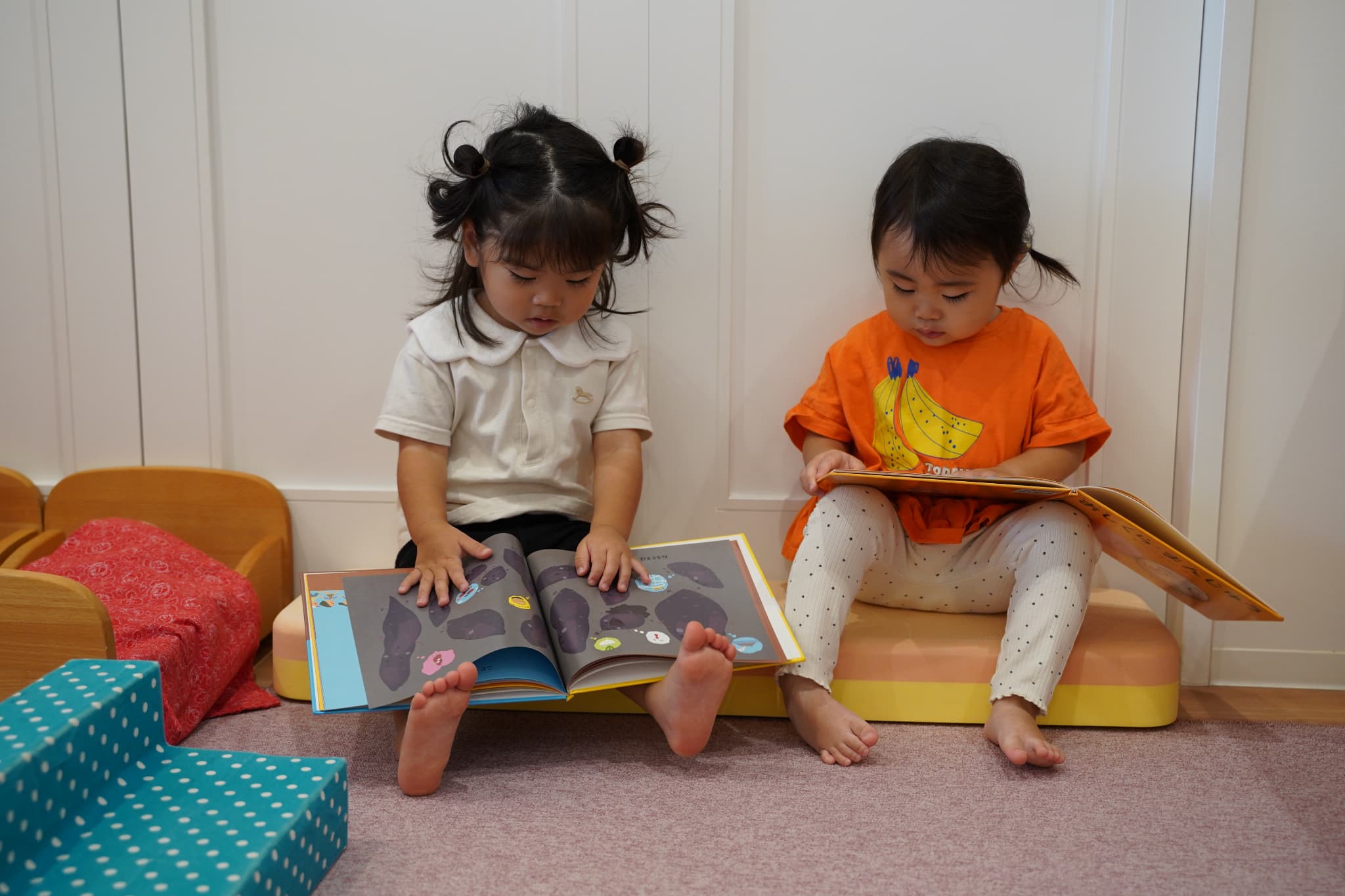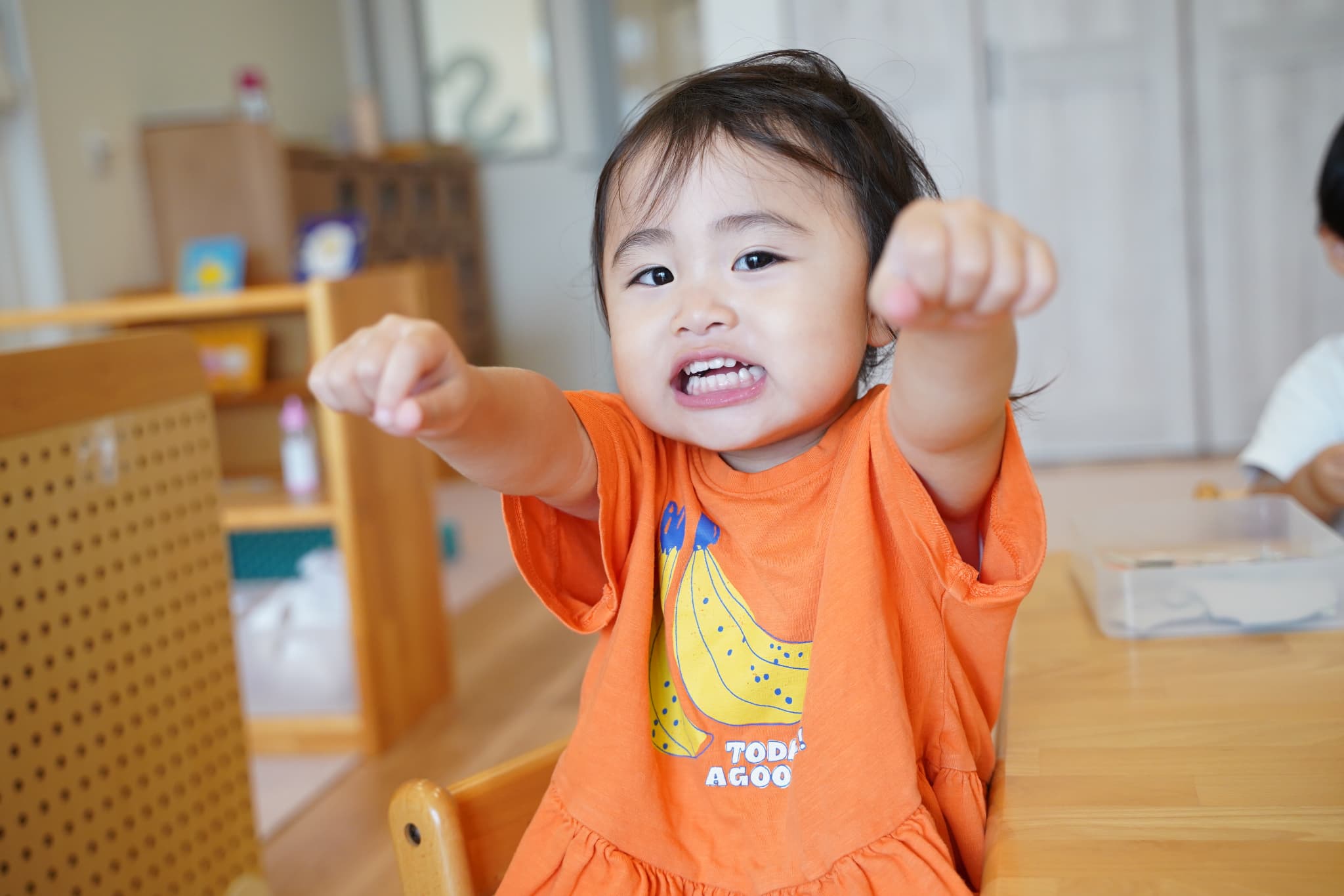 保育園に来ると、「雨降ってたね〜!」と教えてくれたもも組さん☔️今朝は卓上遊びが大人気でした♪
