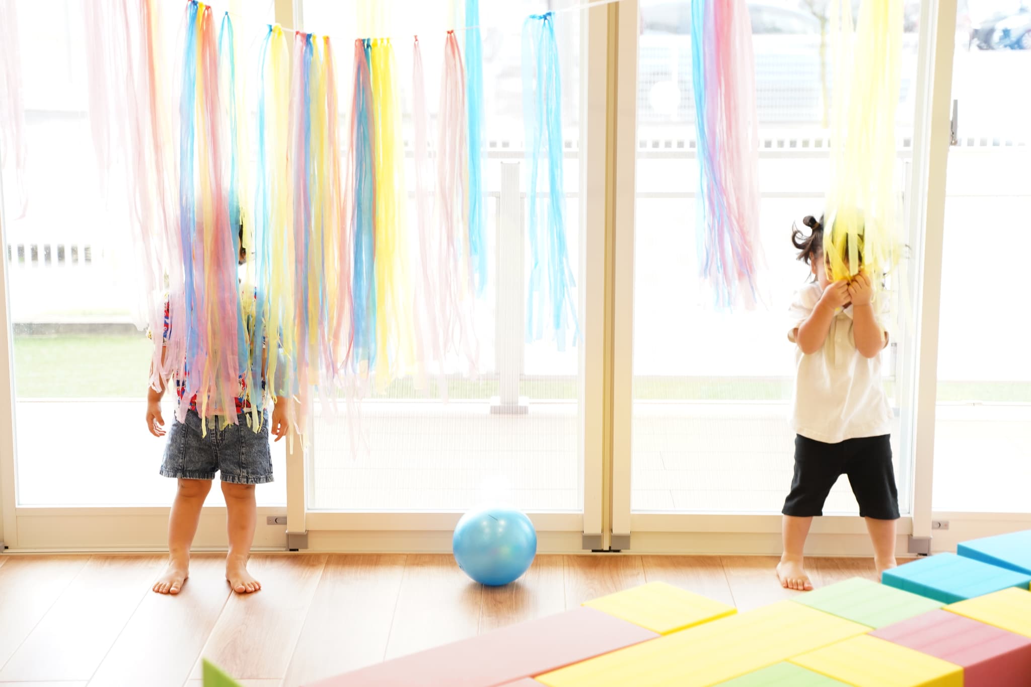 スズランテープを使ってこんな遊びも🤗 だーれだ!?