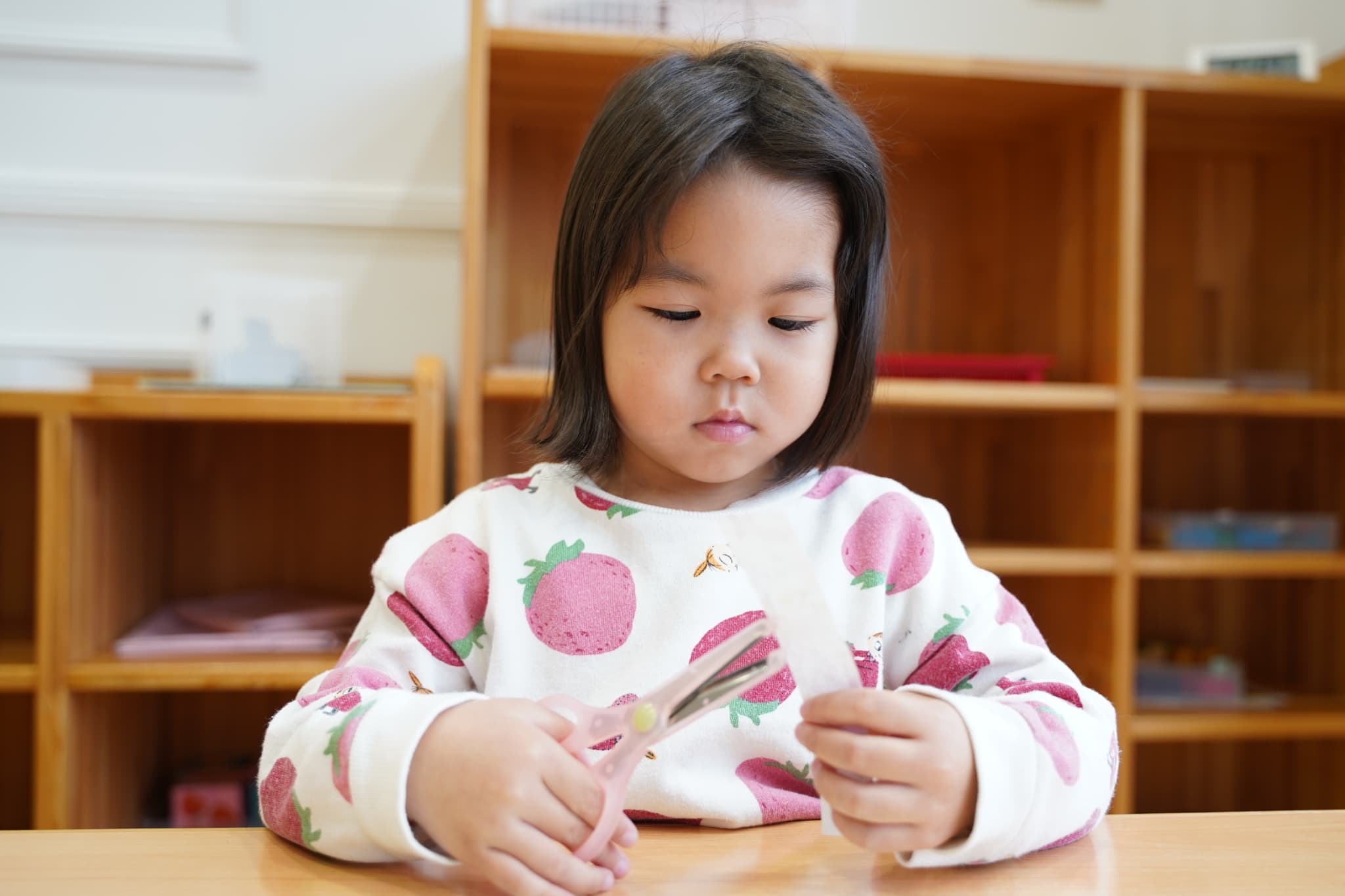 慎重にハサミを使って折り紙を切っていましたよ✂️
