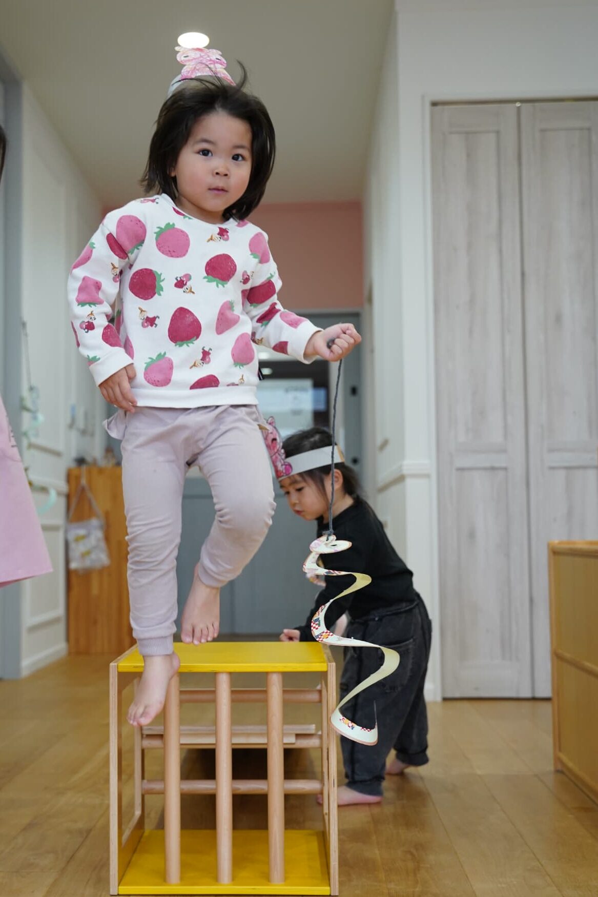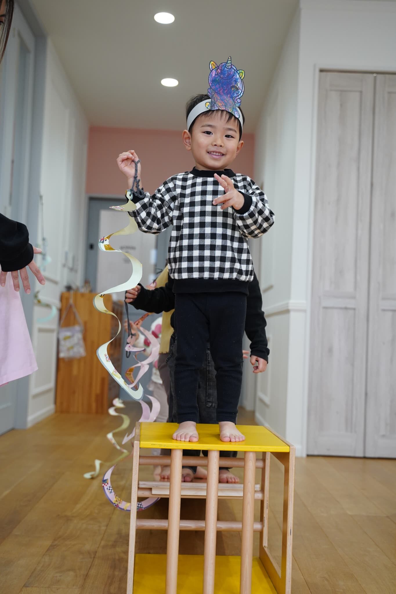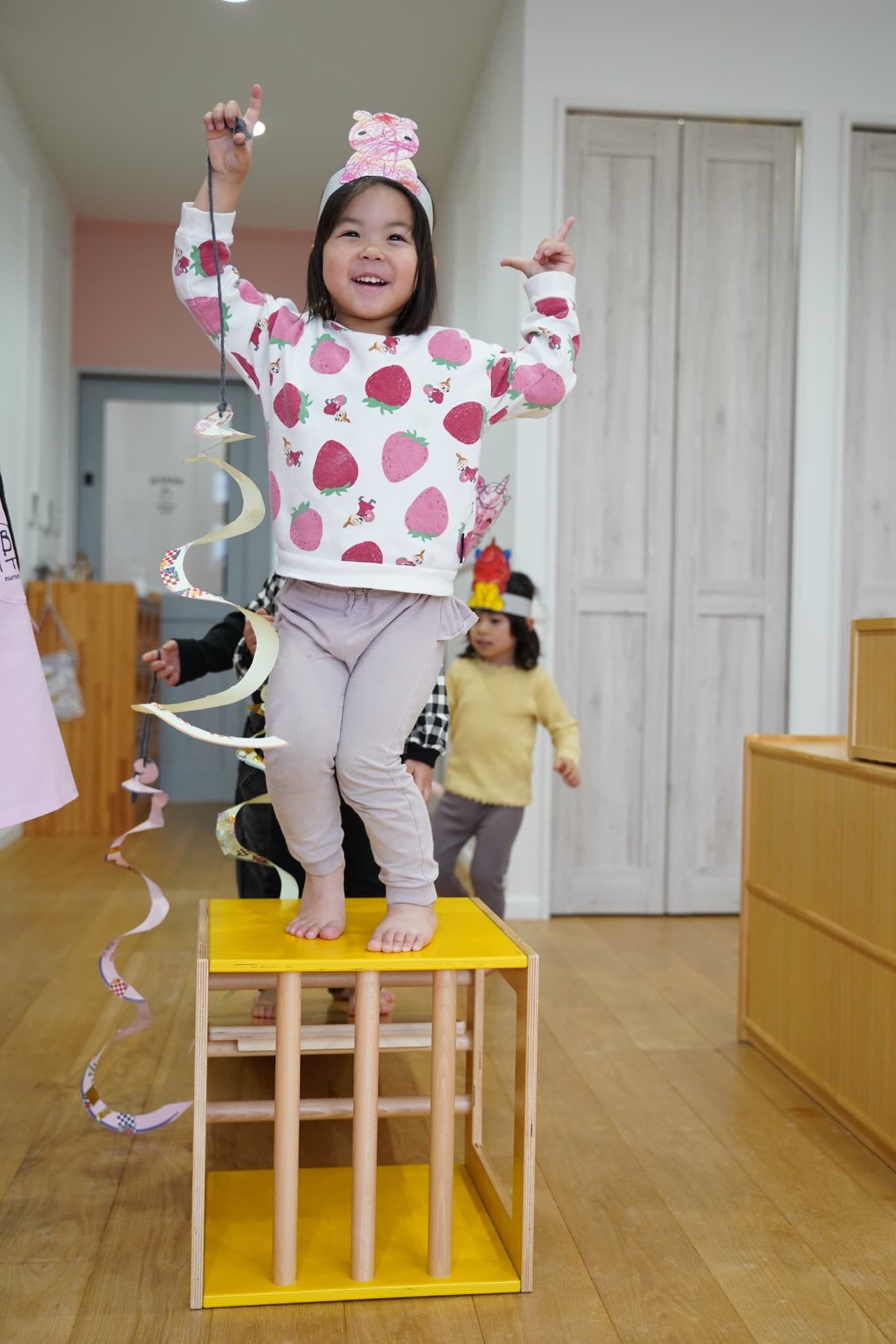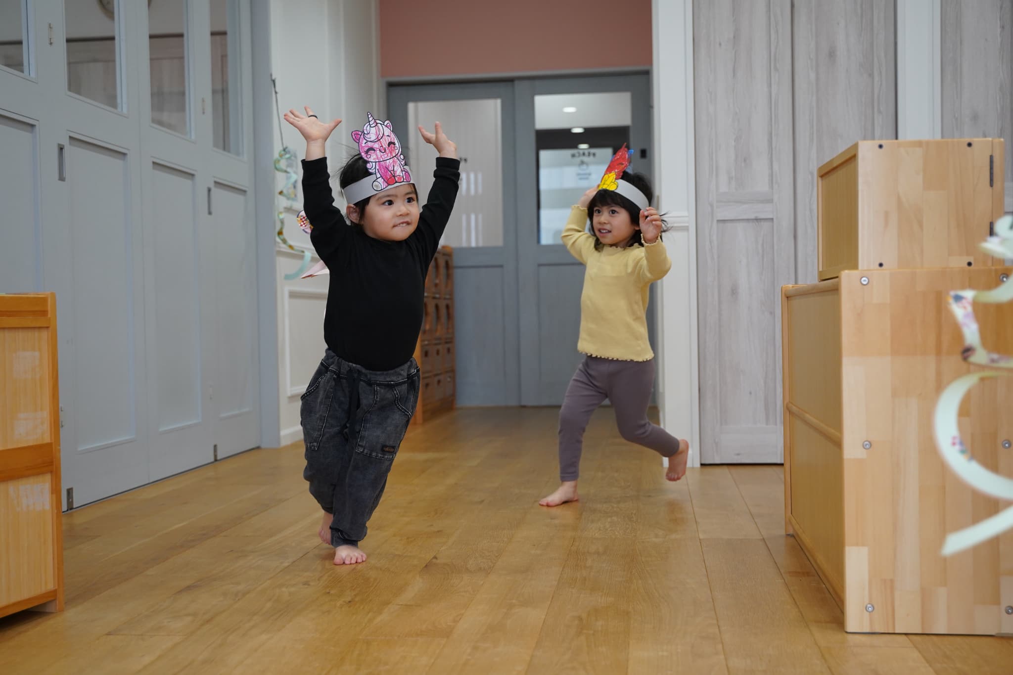 お馬さんになったらもっと早く走れるかも?と思いみんなでつくったお馬さんのお面を被り変身してみました🐴