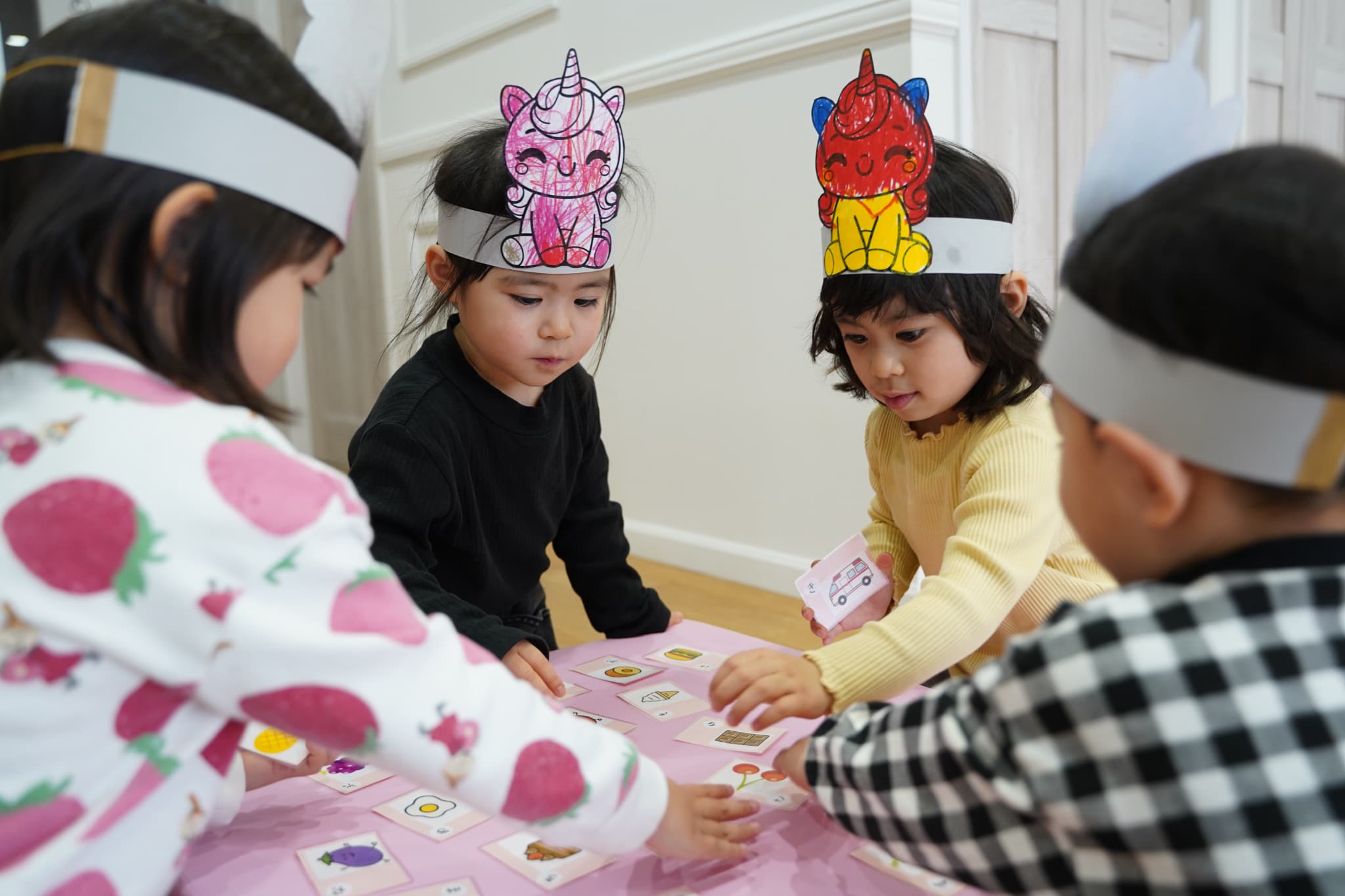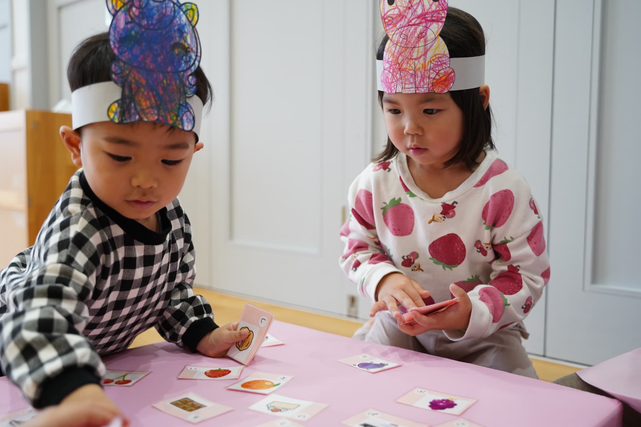 お馬さんのお面が気に入ったのか、その後のカルタ遊びでもつけたまま遊んでいました。