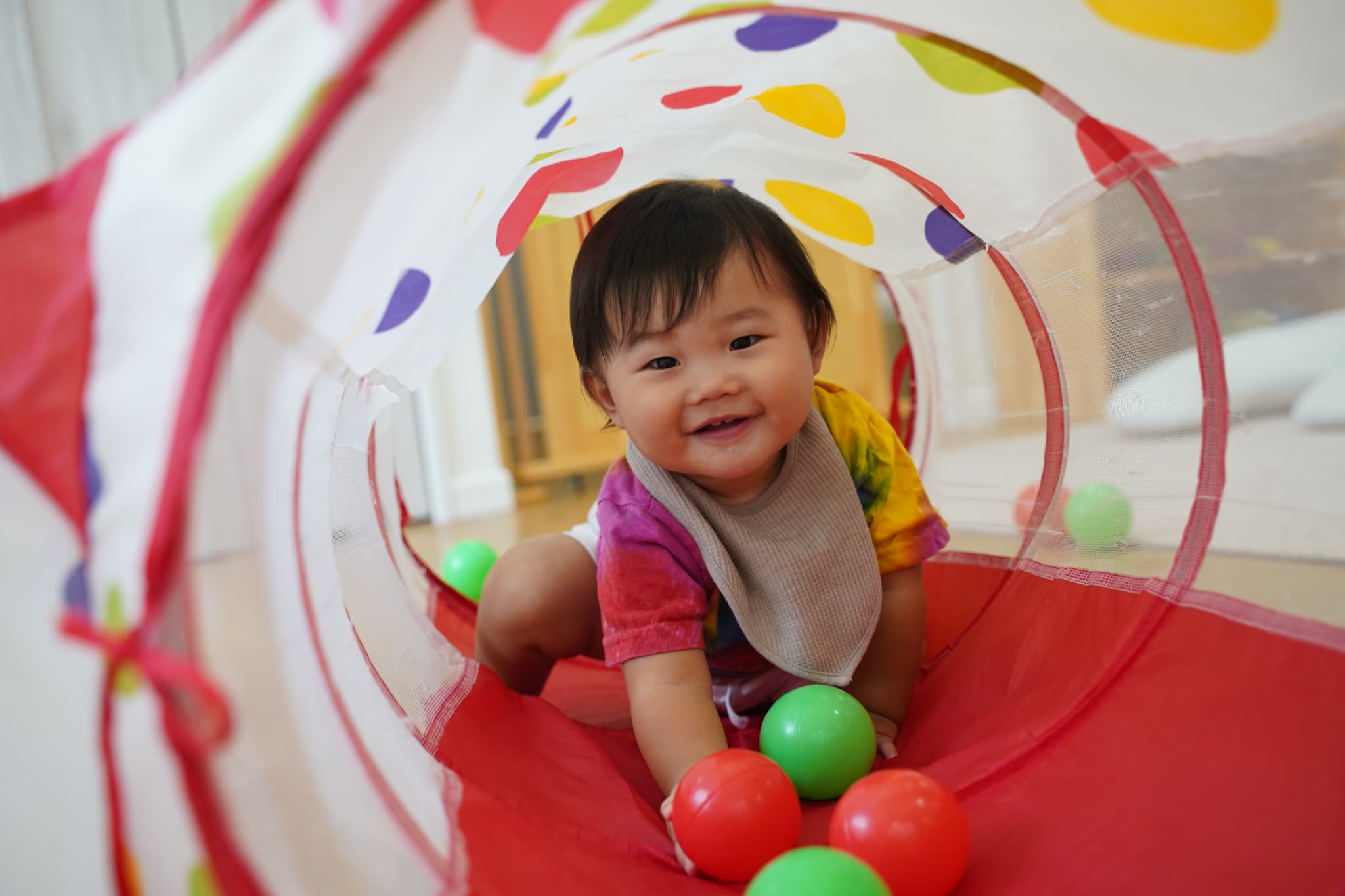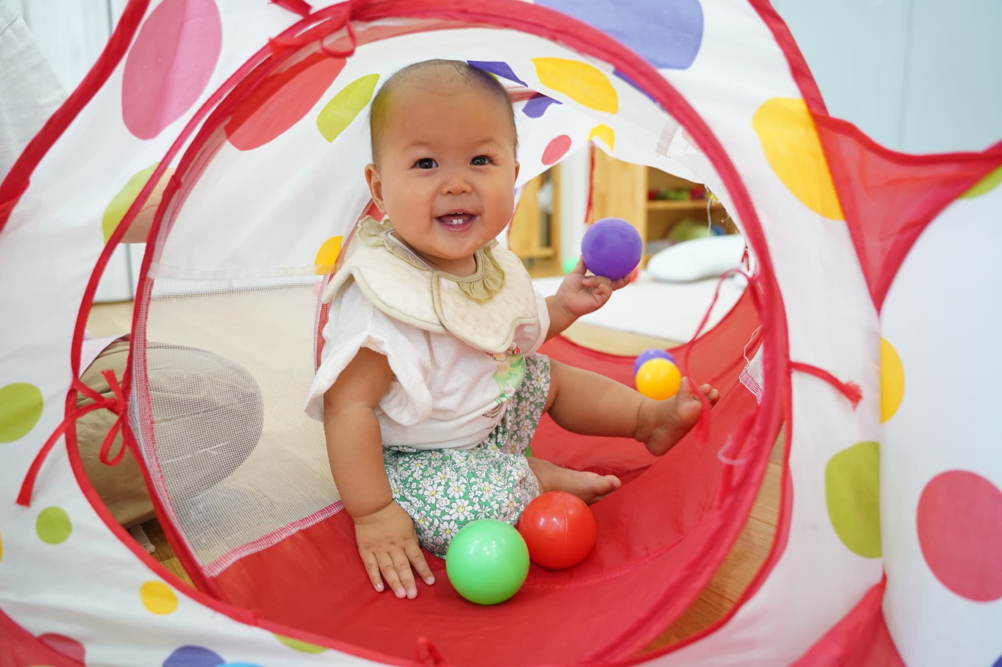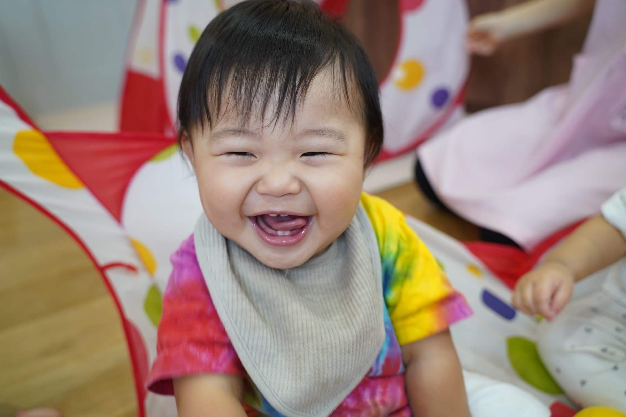 腹ばいの体勢でみんなのことを見つめたり、ボールで遊んだりとにこにこ笑顔がたくさん見られました😊