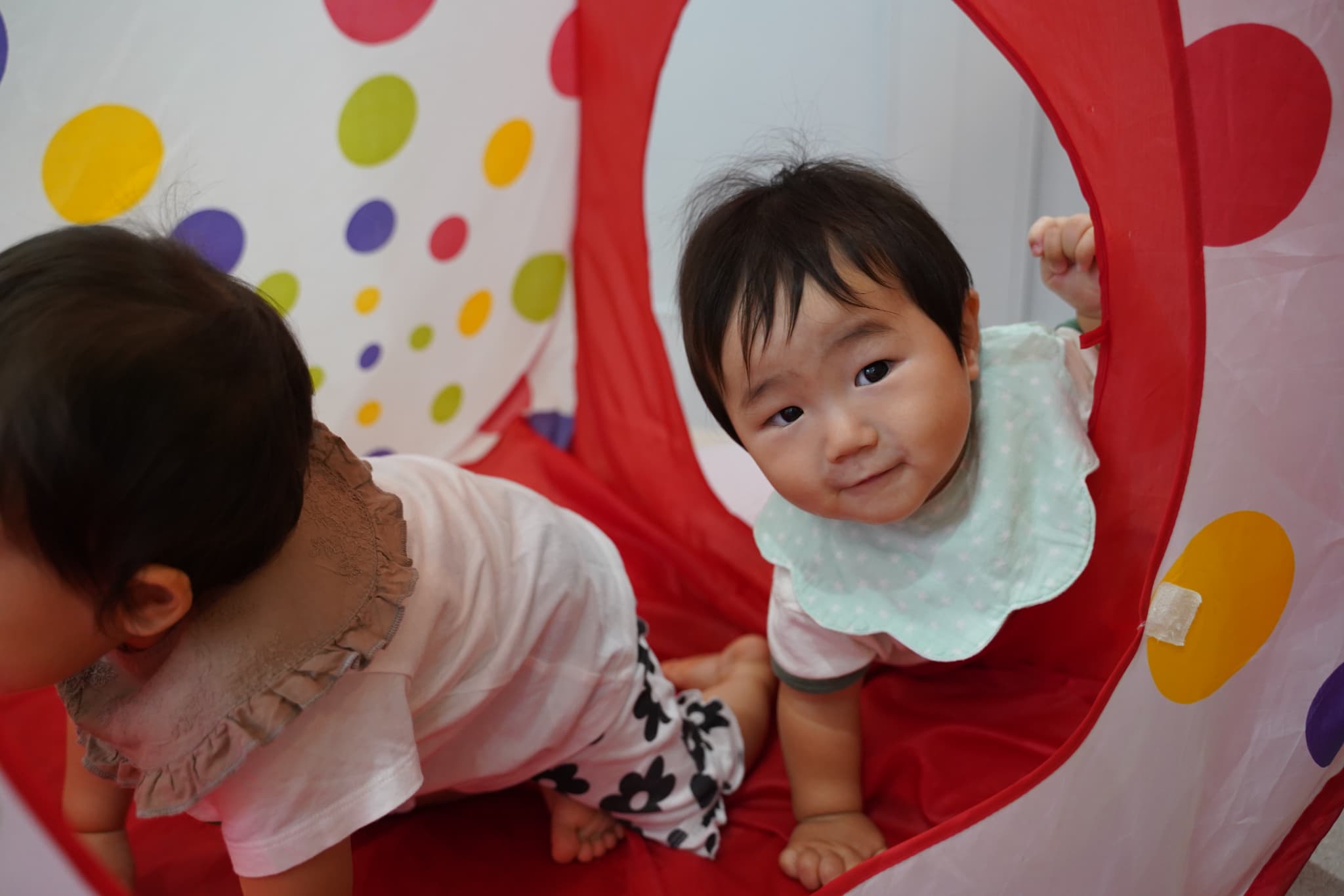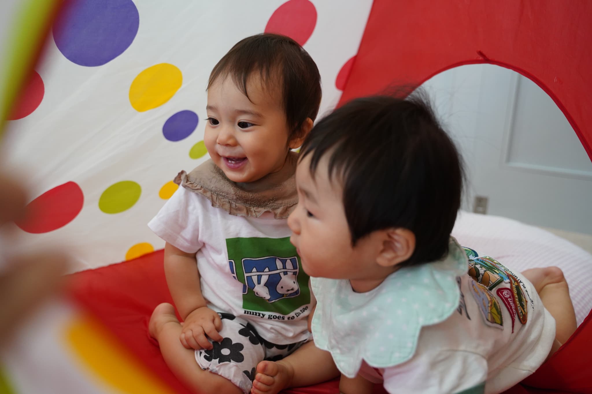 友達が入っているテントに興味を示して、テントの中に入る子もいました🎪