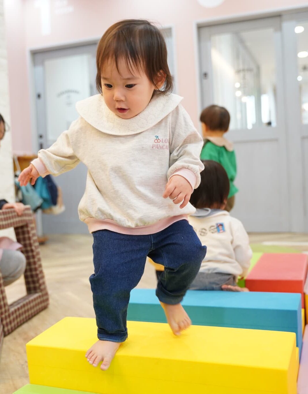 ウレタン積み木で作る凸凹道が大好きなさくらんぼ組さん🍒