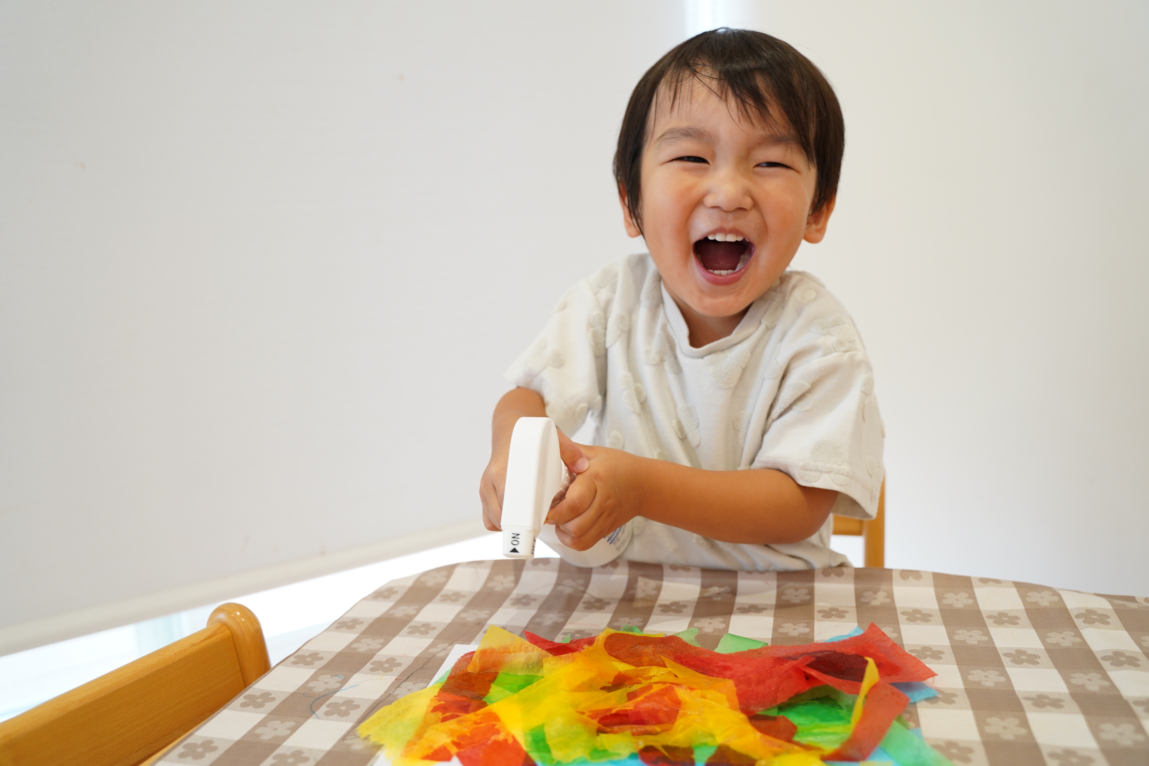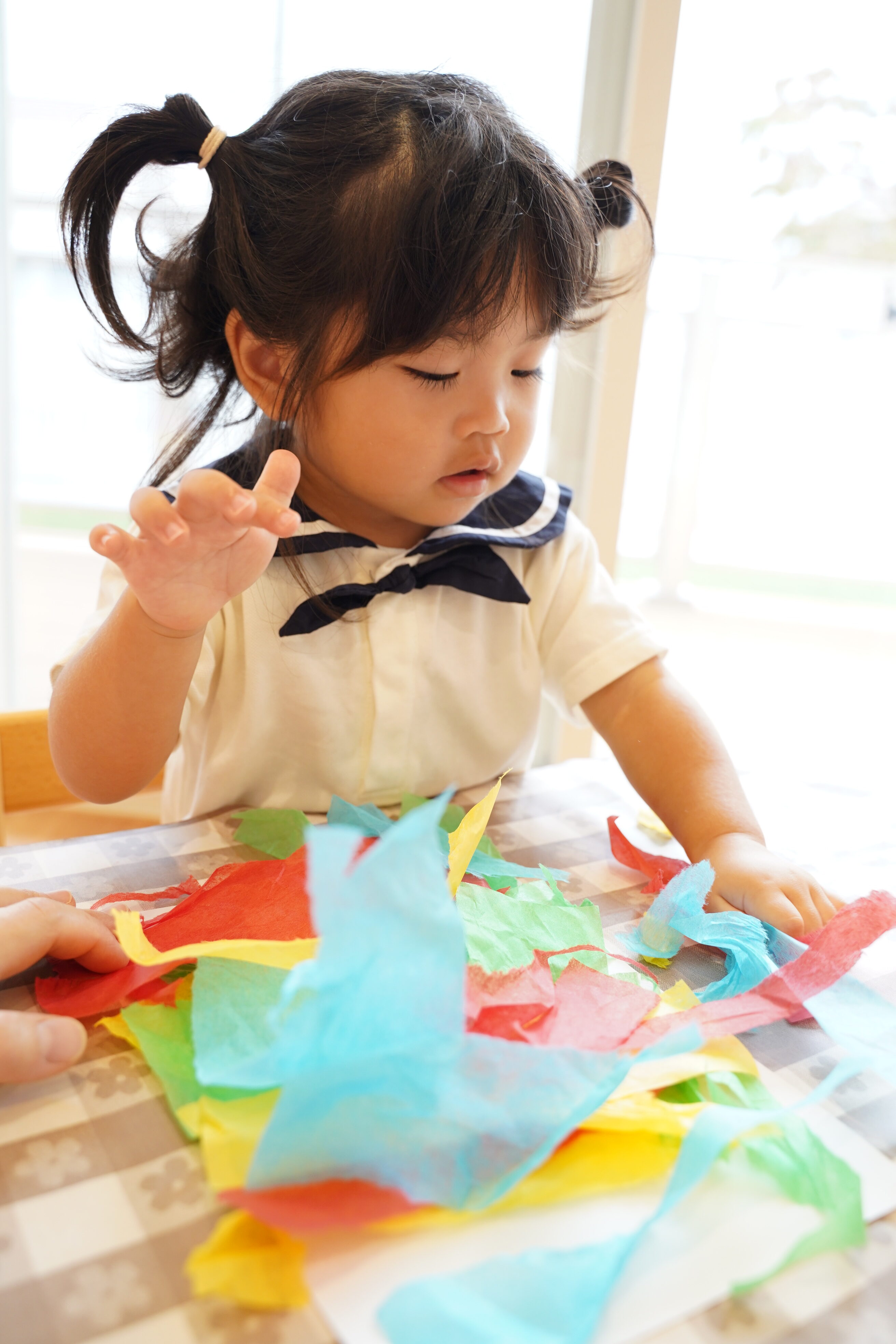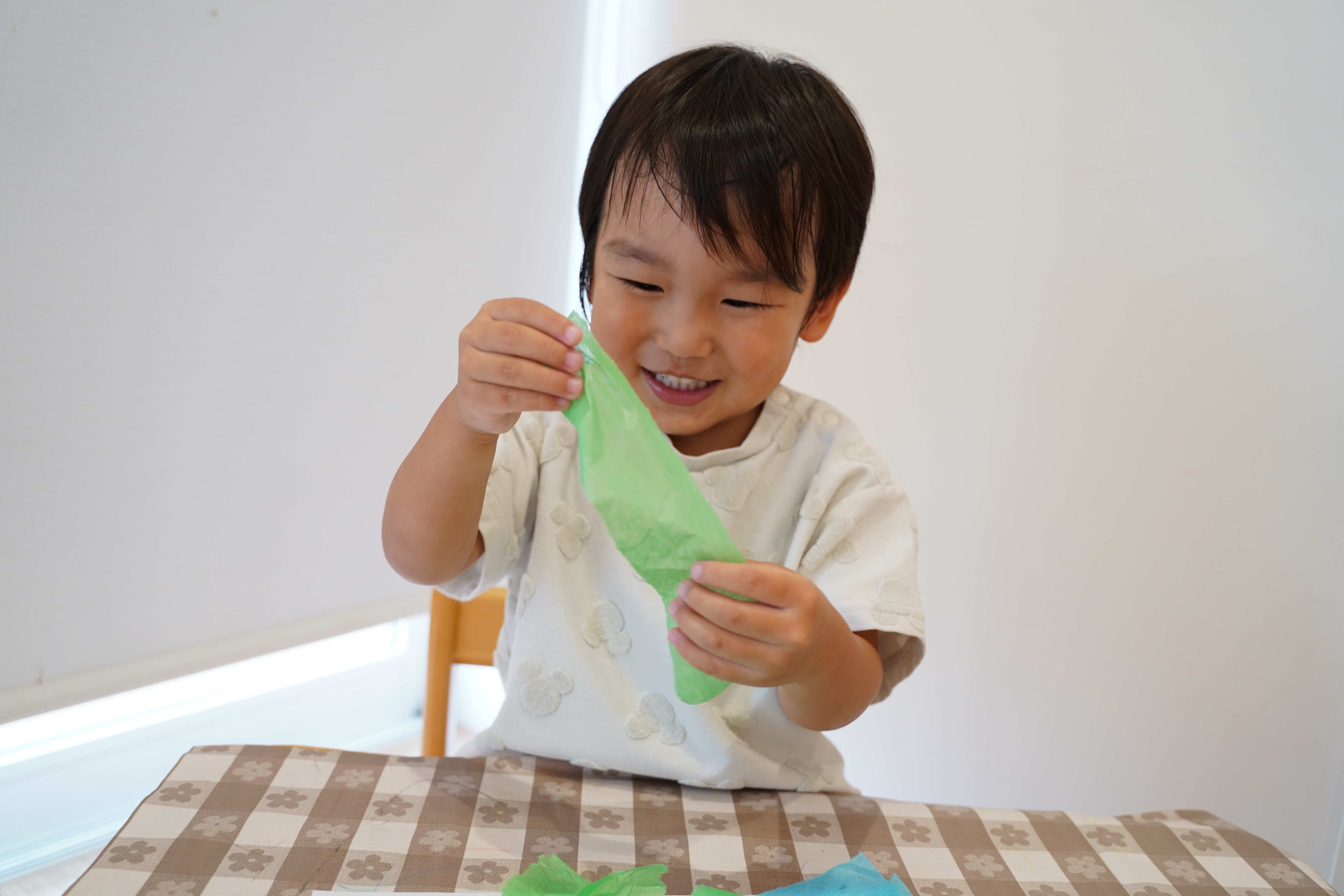 自分で好きな色の花紙を選んでビリビリ〜✨画用紙の上においていきます🎉