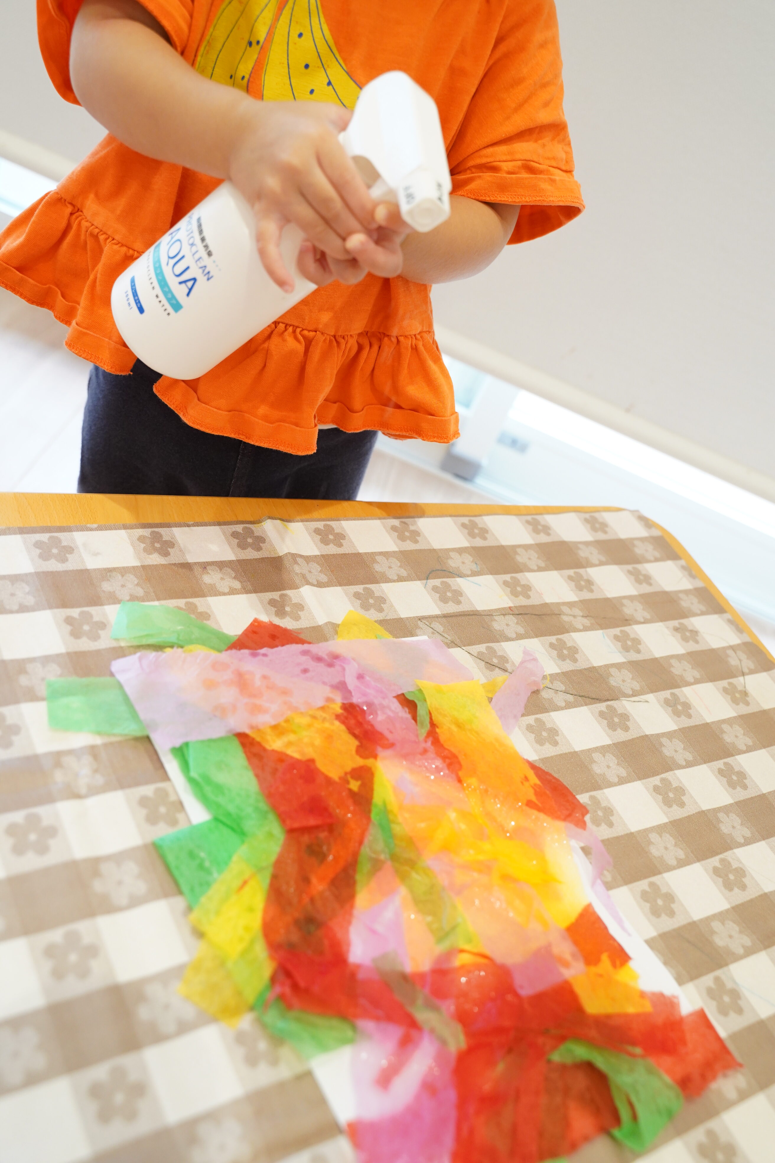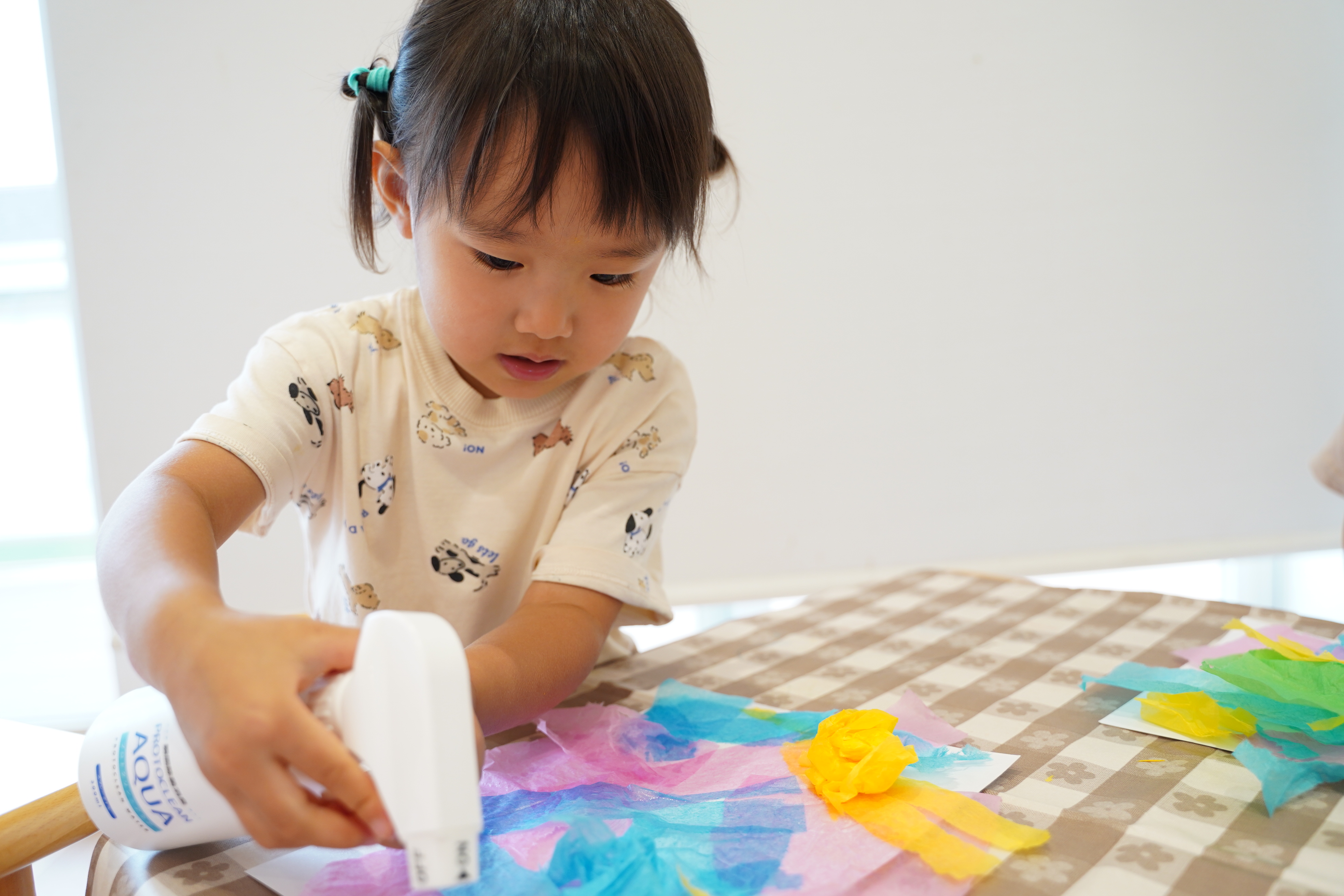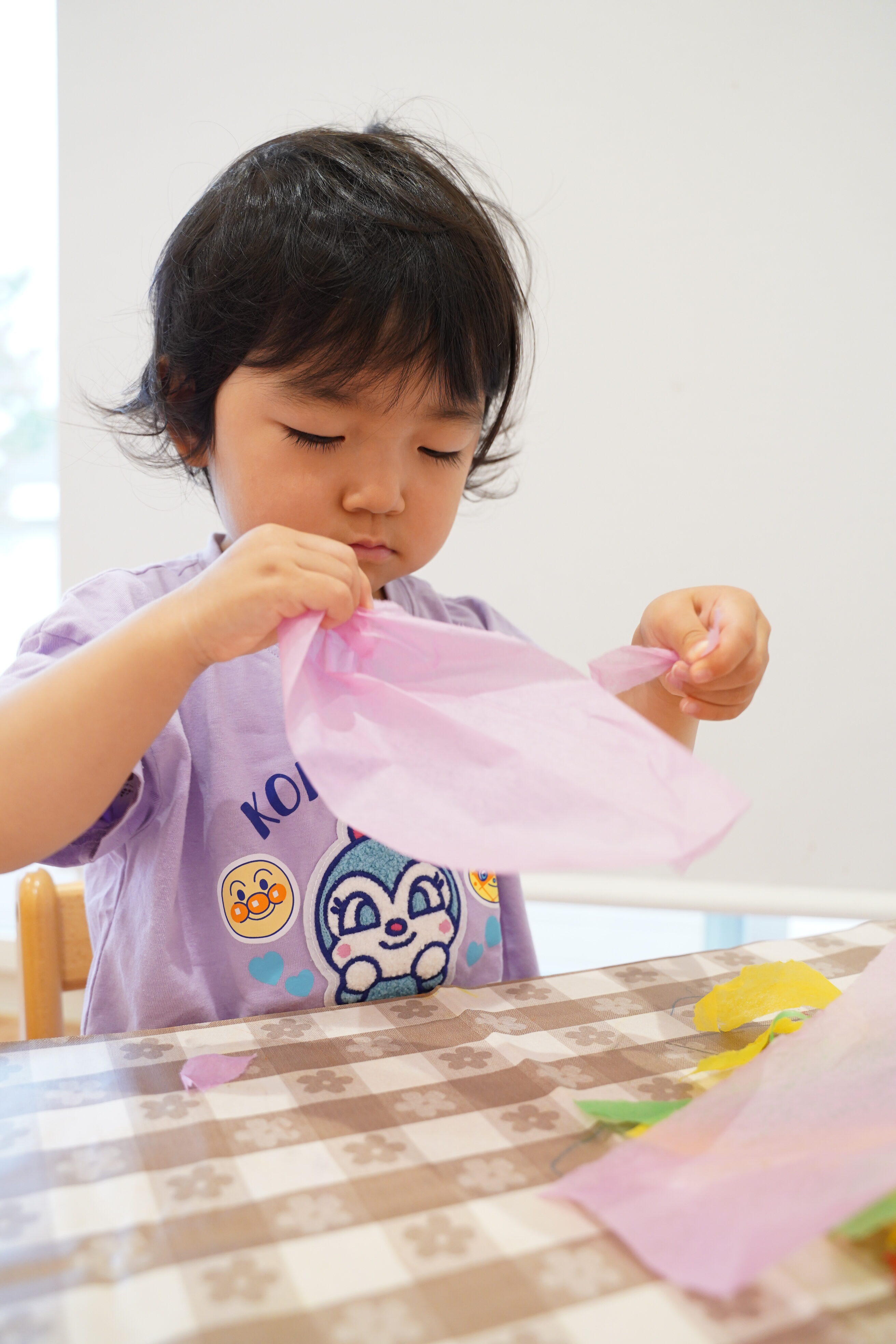 自分で好きな色の花紙を選んでビリビリ〜✨画用紙の上においていきます🎉
