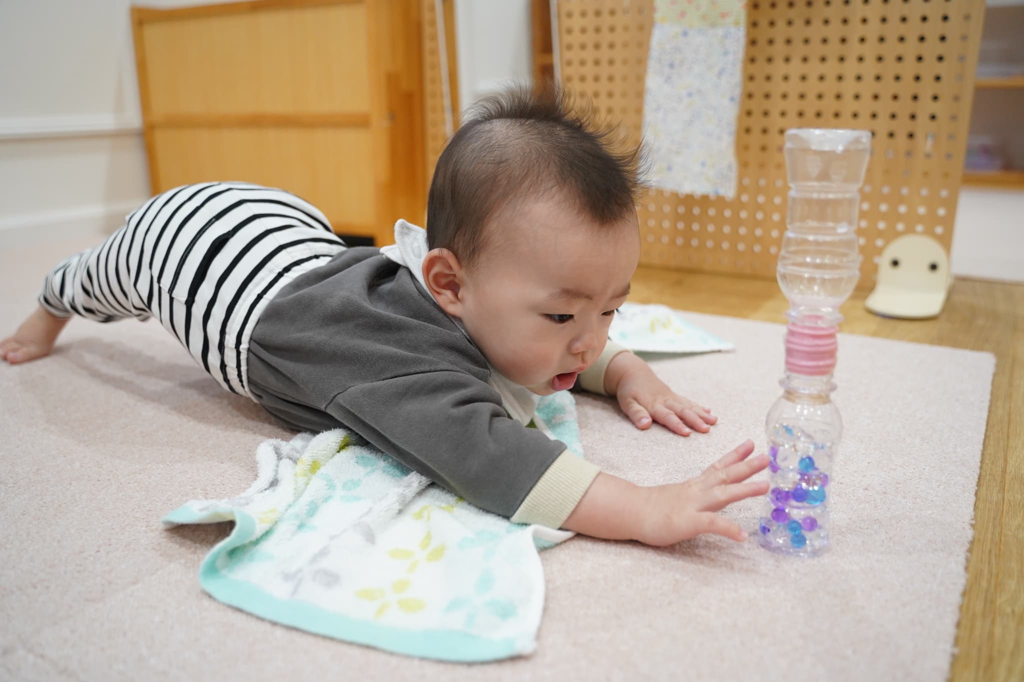 おもちゃに手を伸ばす姿は、とても真剣でした📣