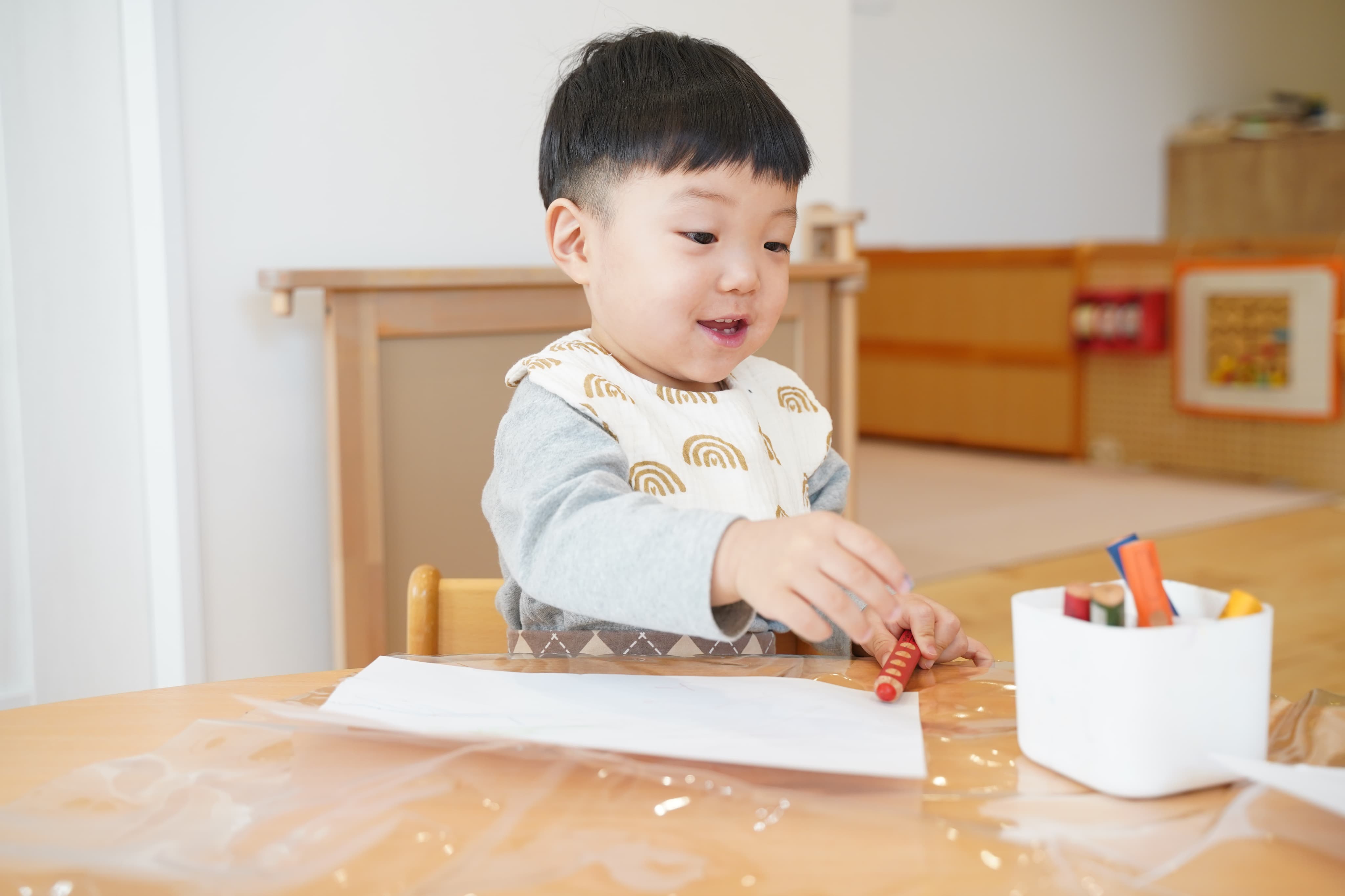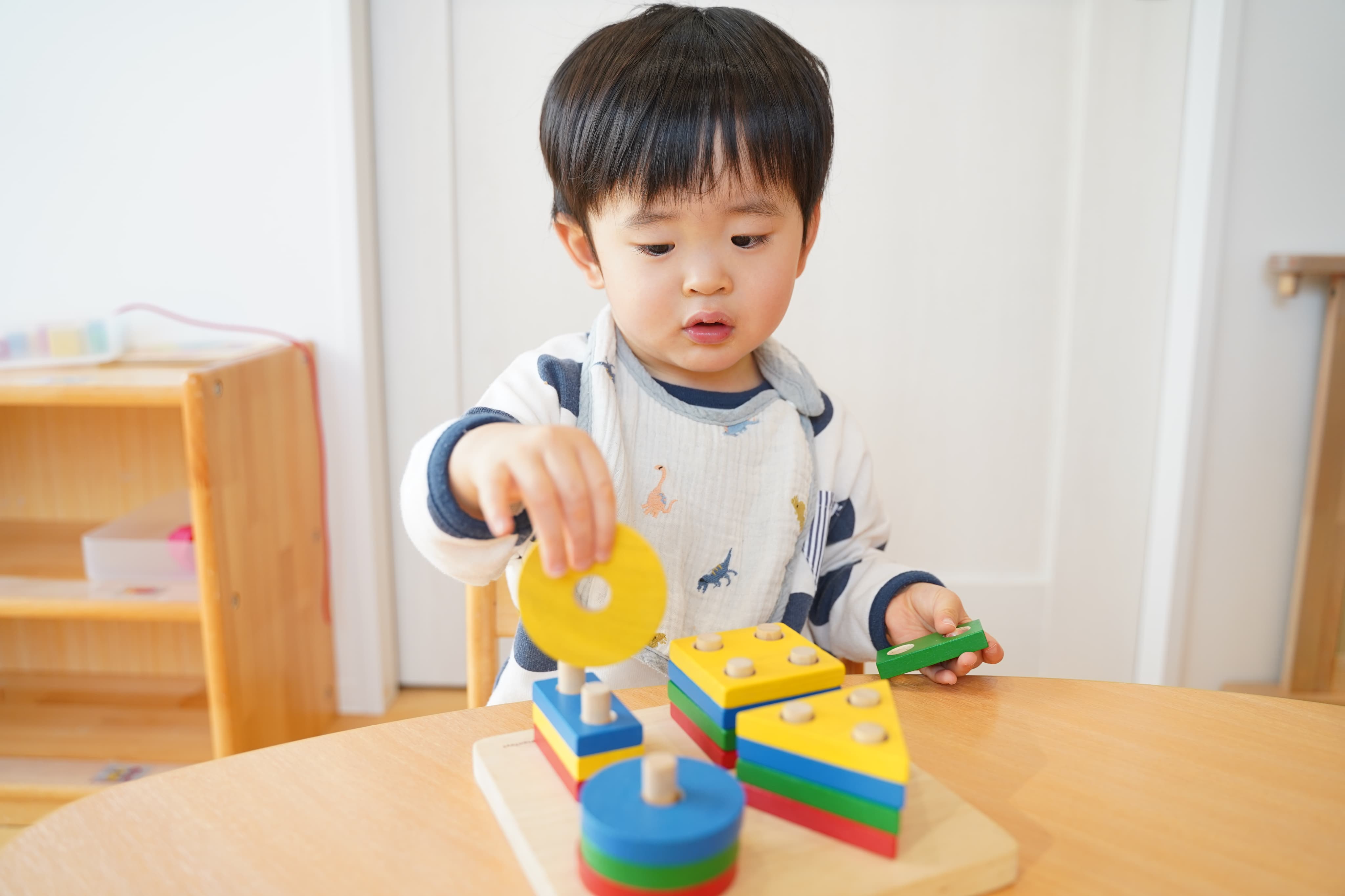 「あか、きいろ、みどり!」と色を確認しながら黙々と遊ぶボク🌟