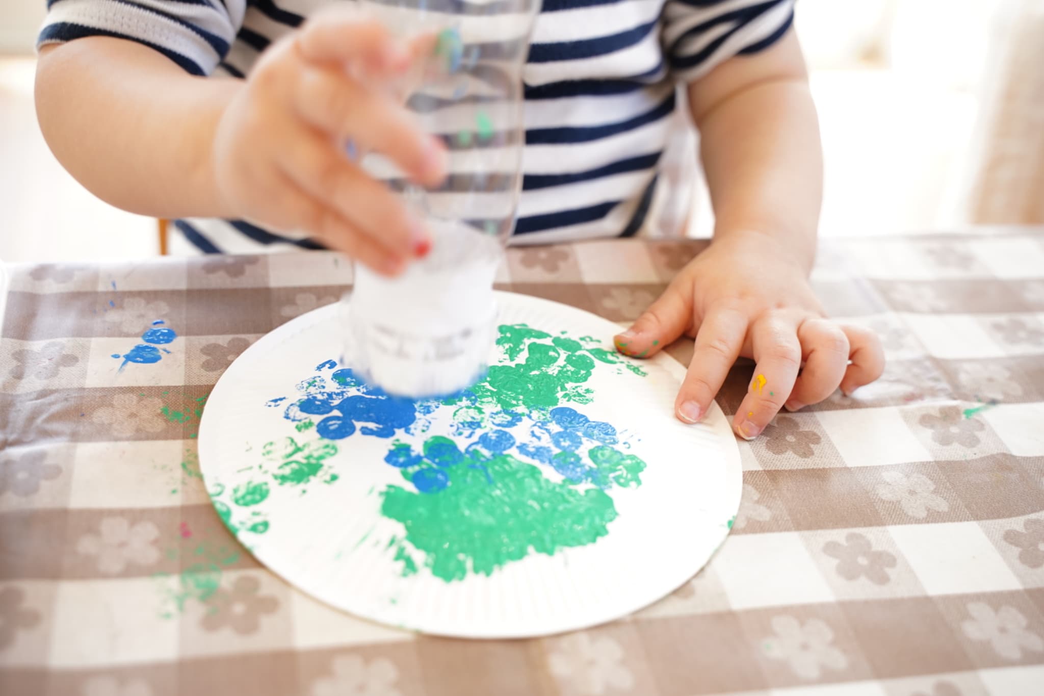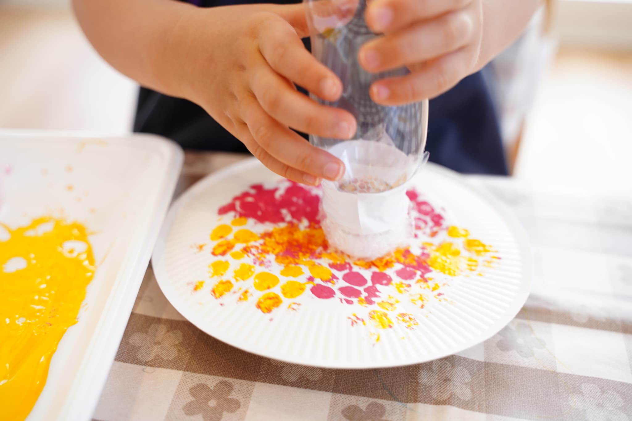 紙皿にプチプチスタンプを押してみました🎨