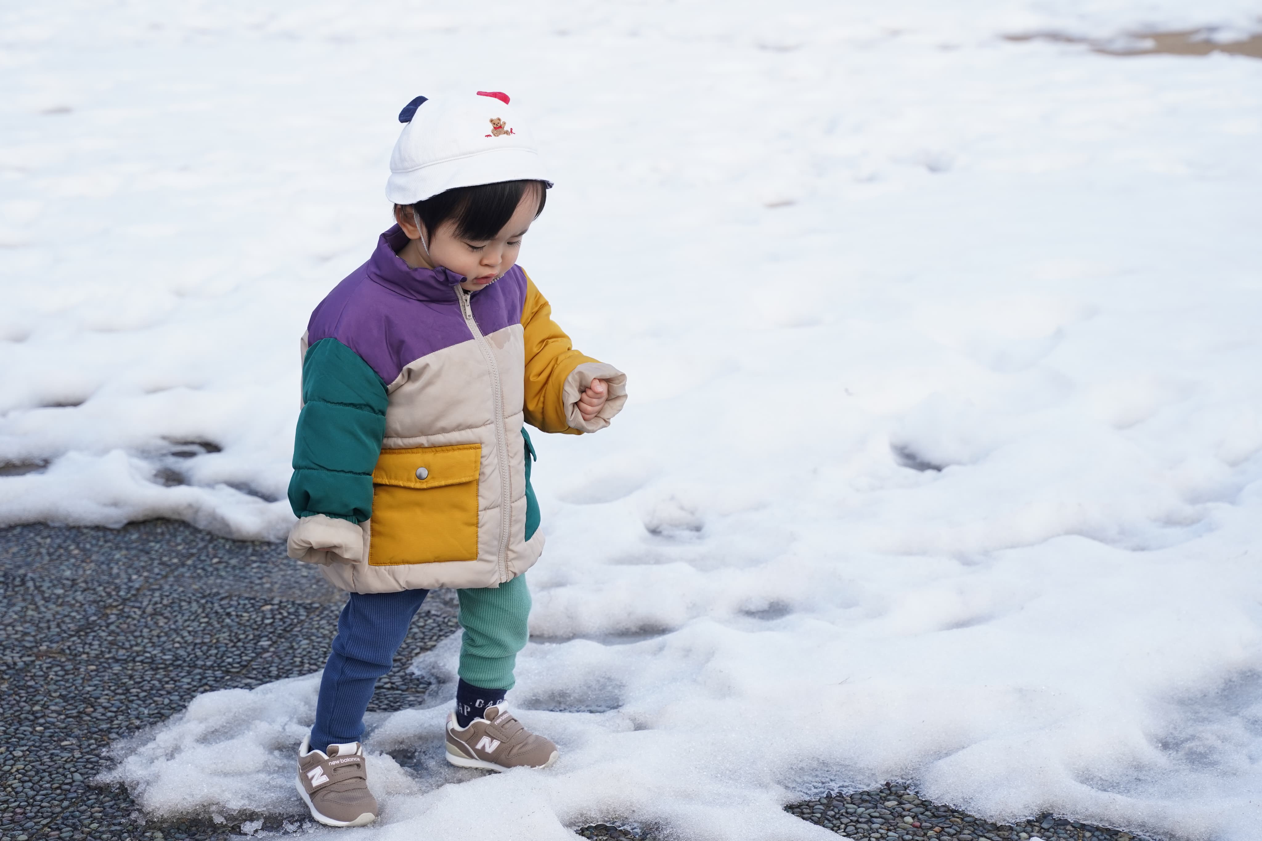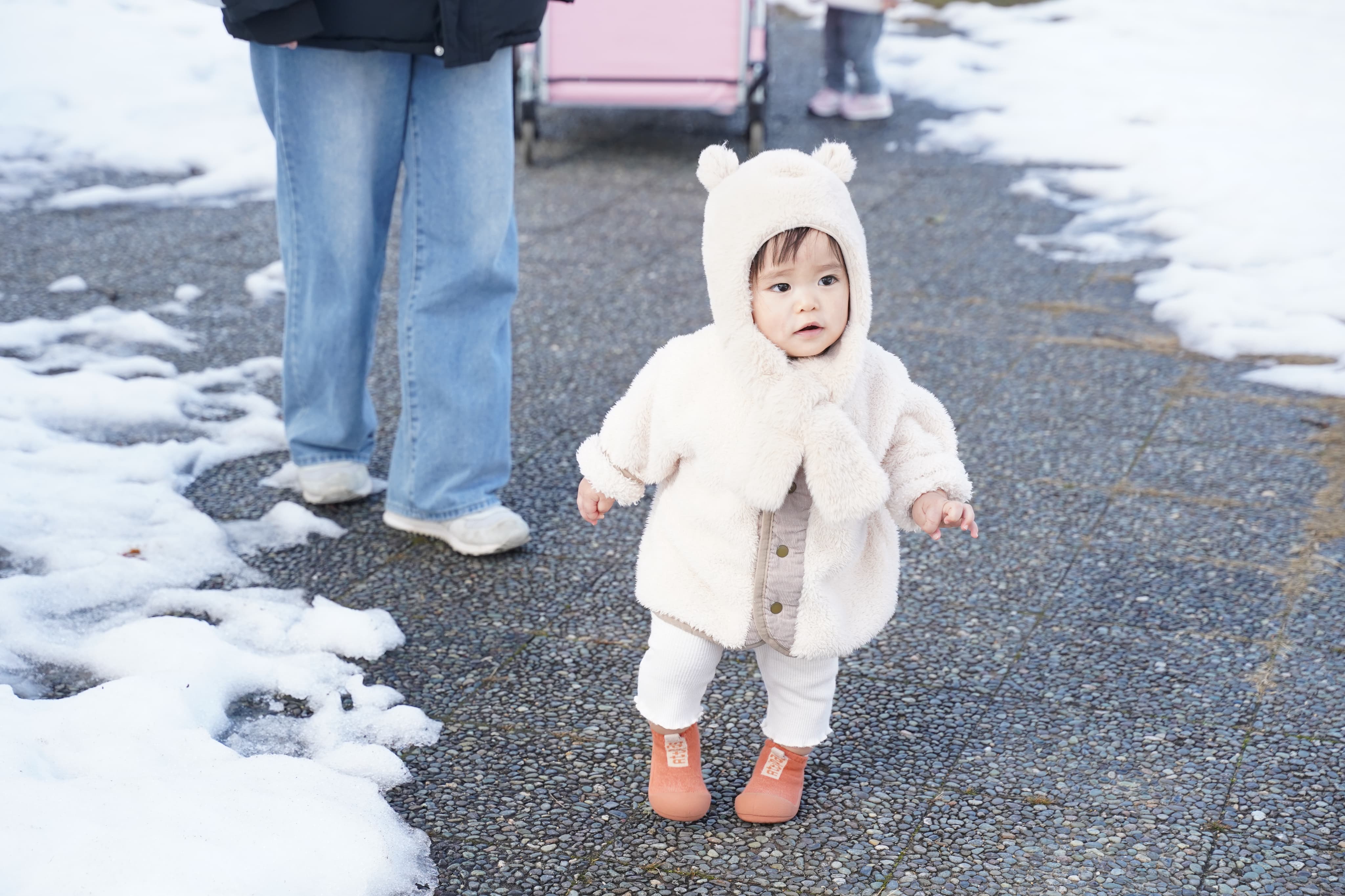 滑らないように気をつけながら雪を踏みしめます😌