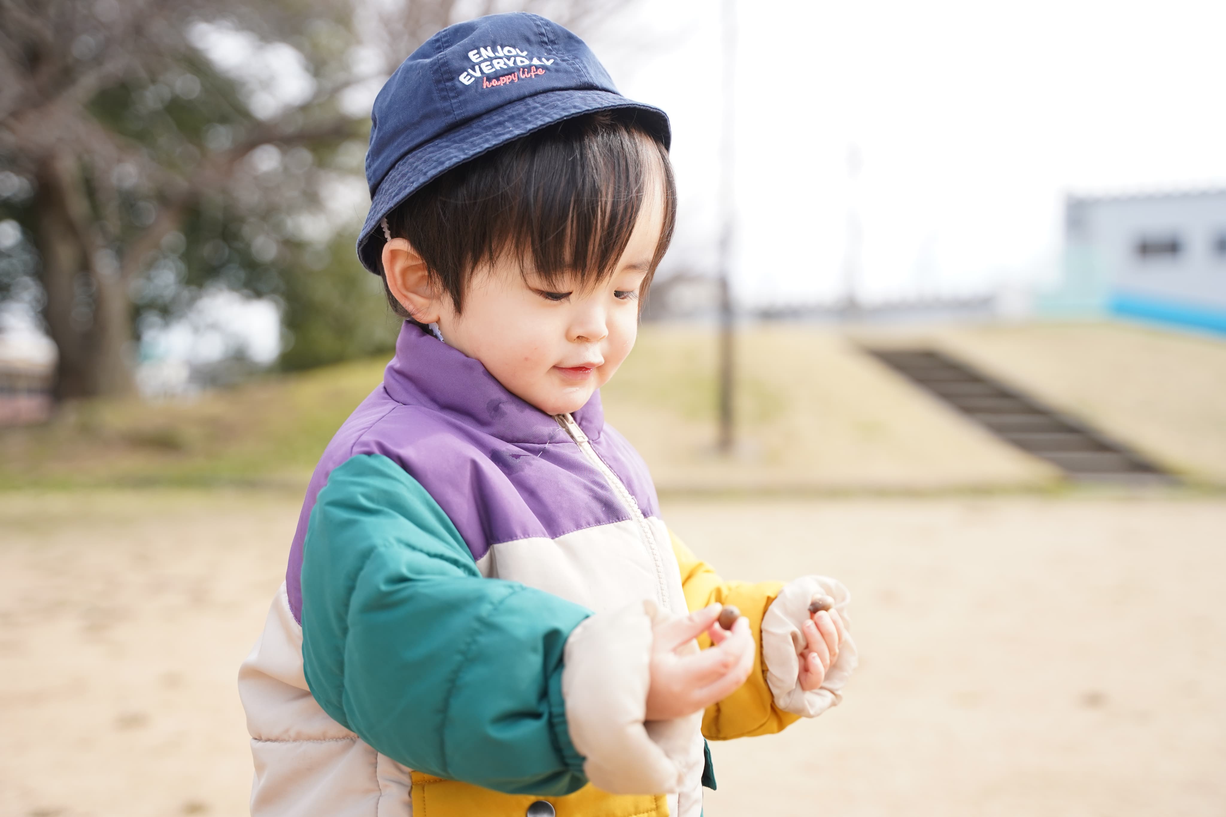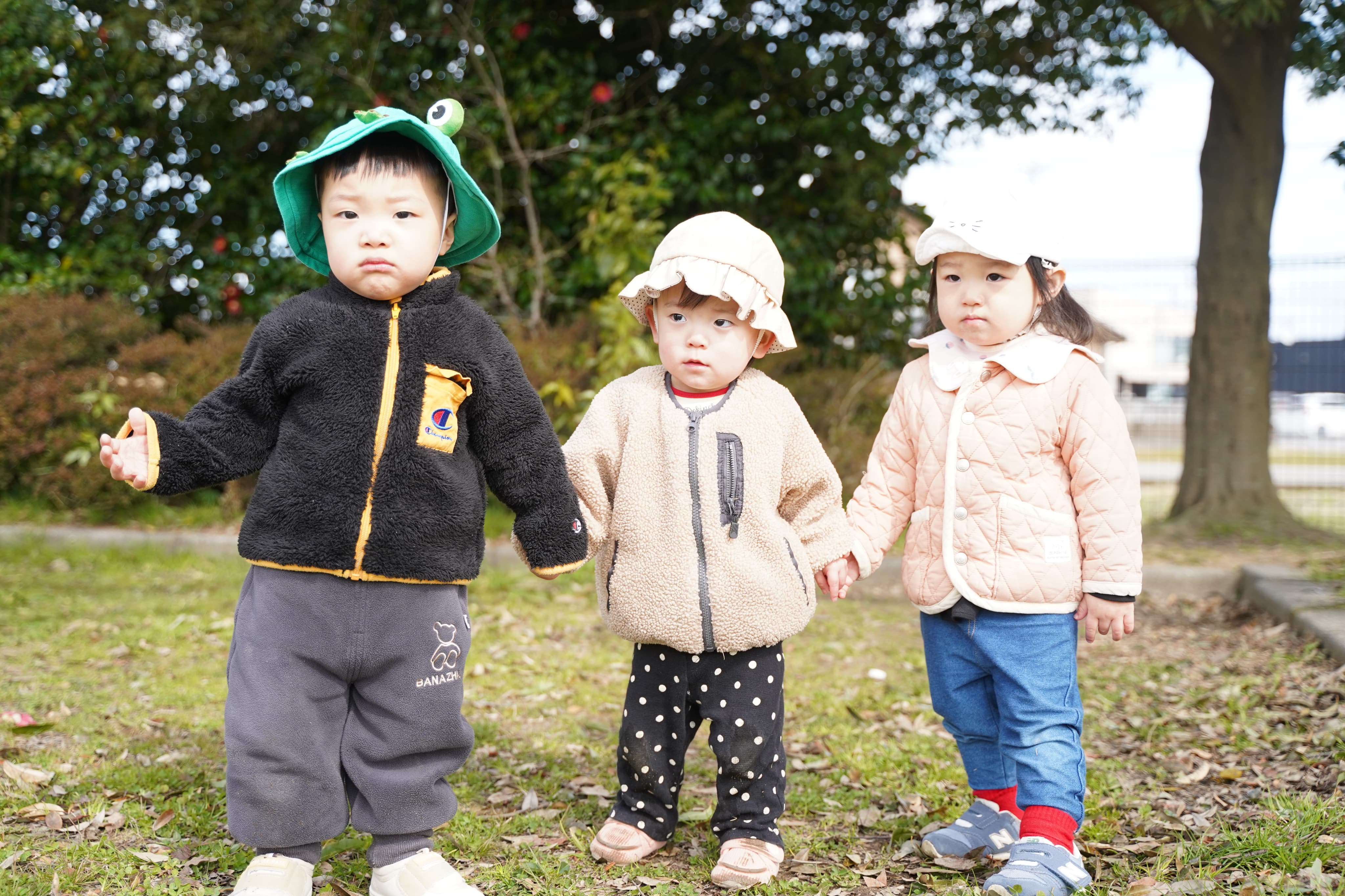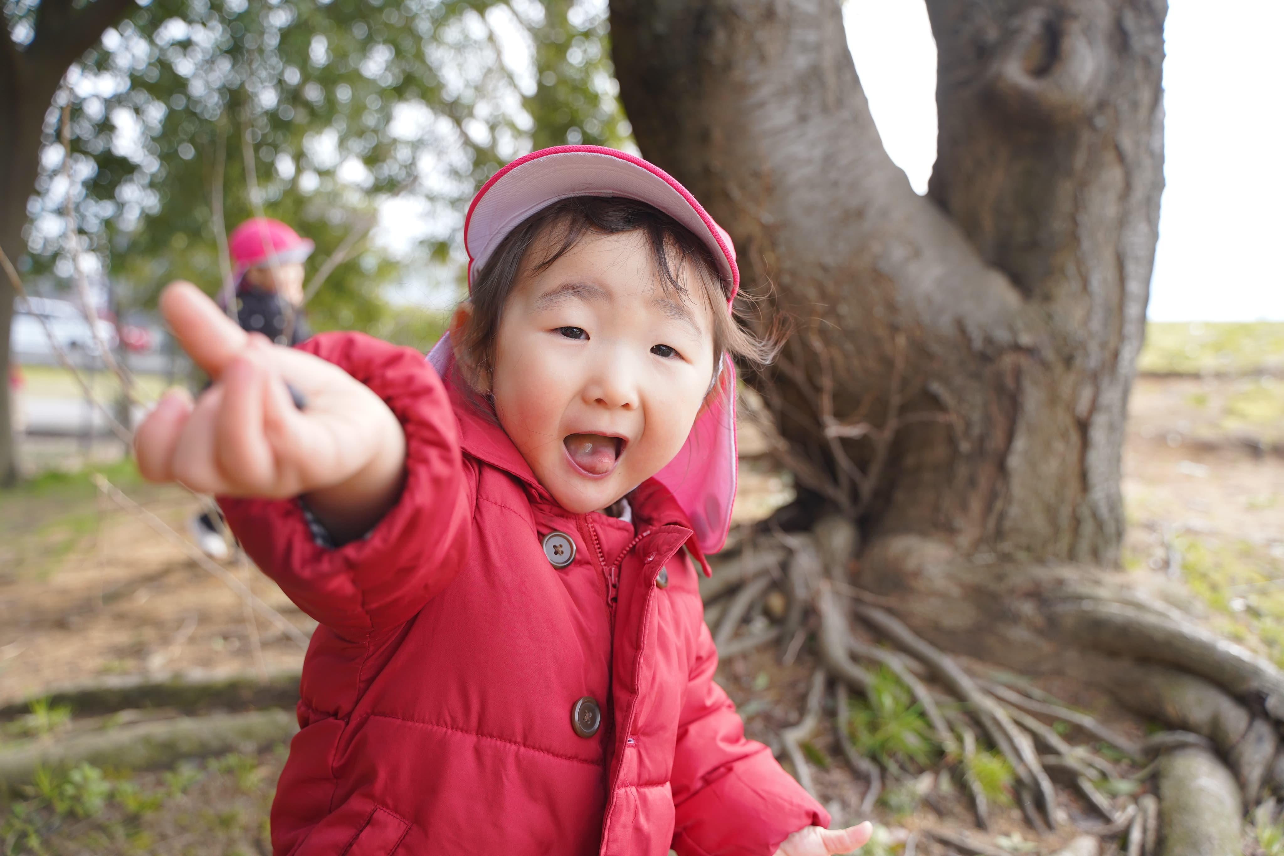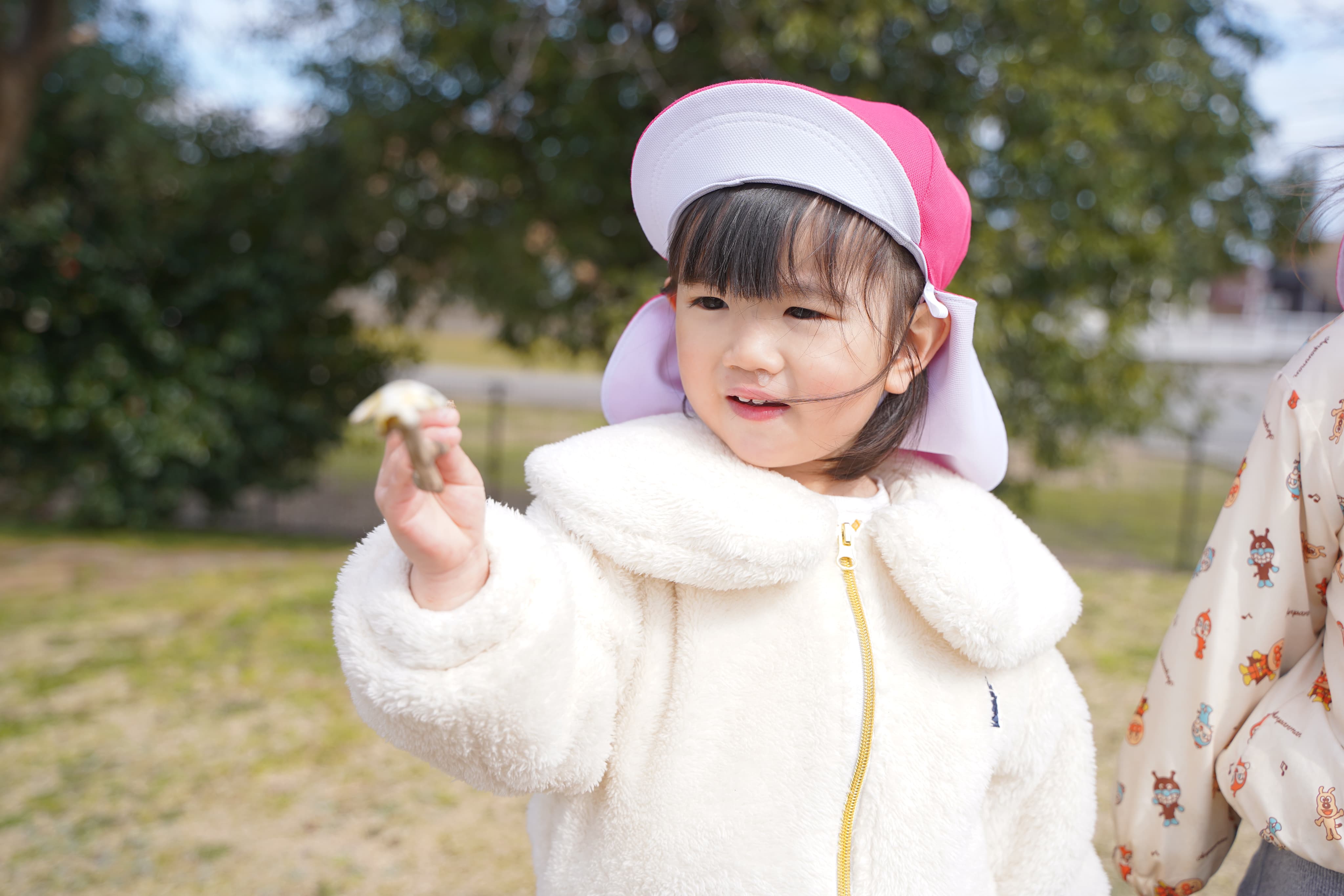 木からの落とし物に夢中になる子どもたち💖