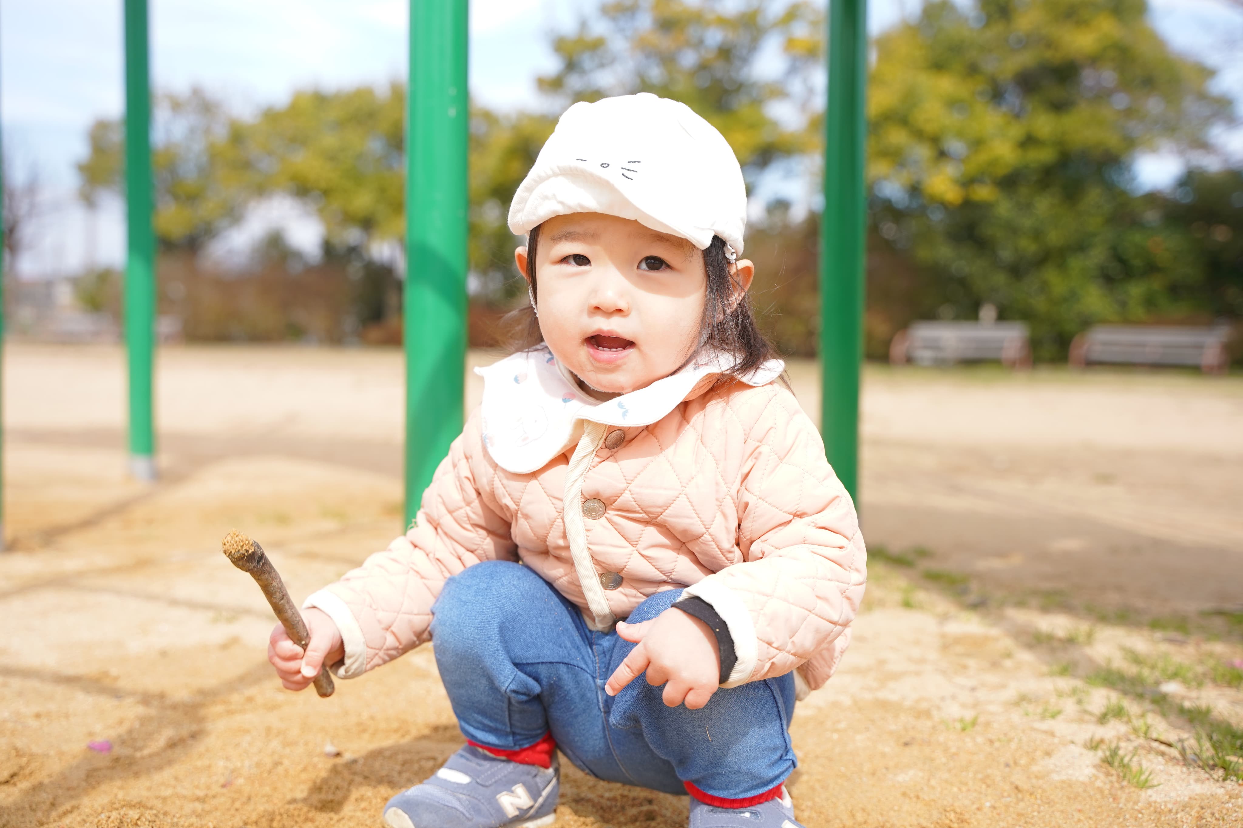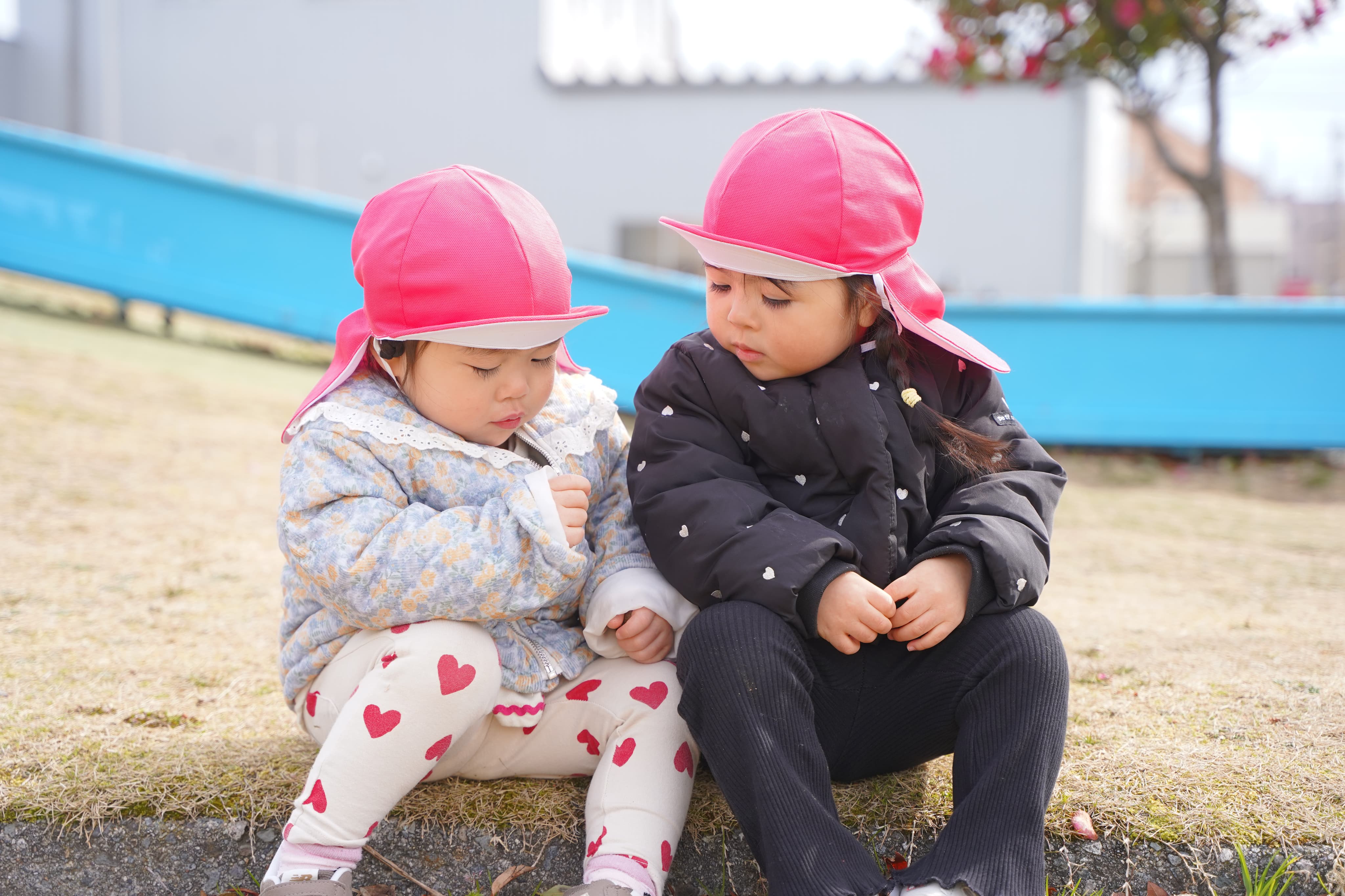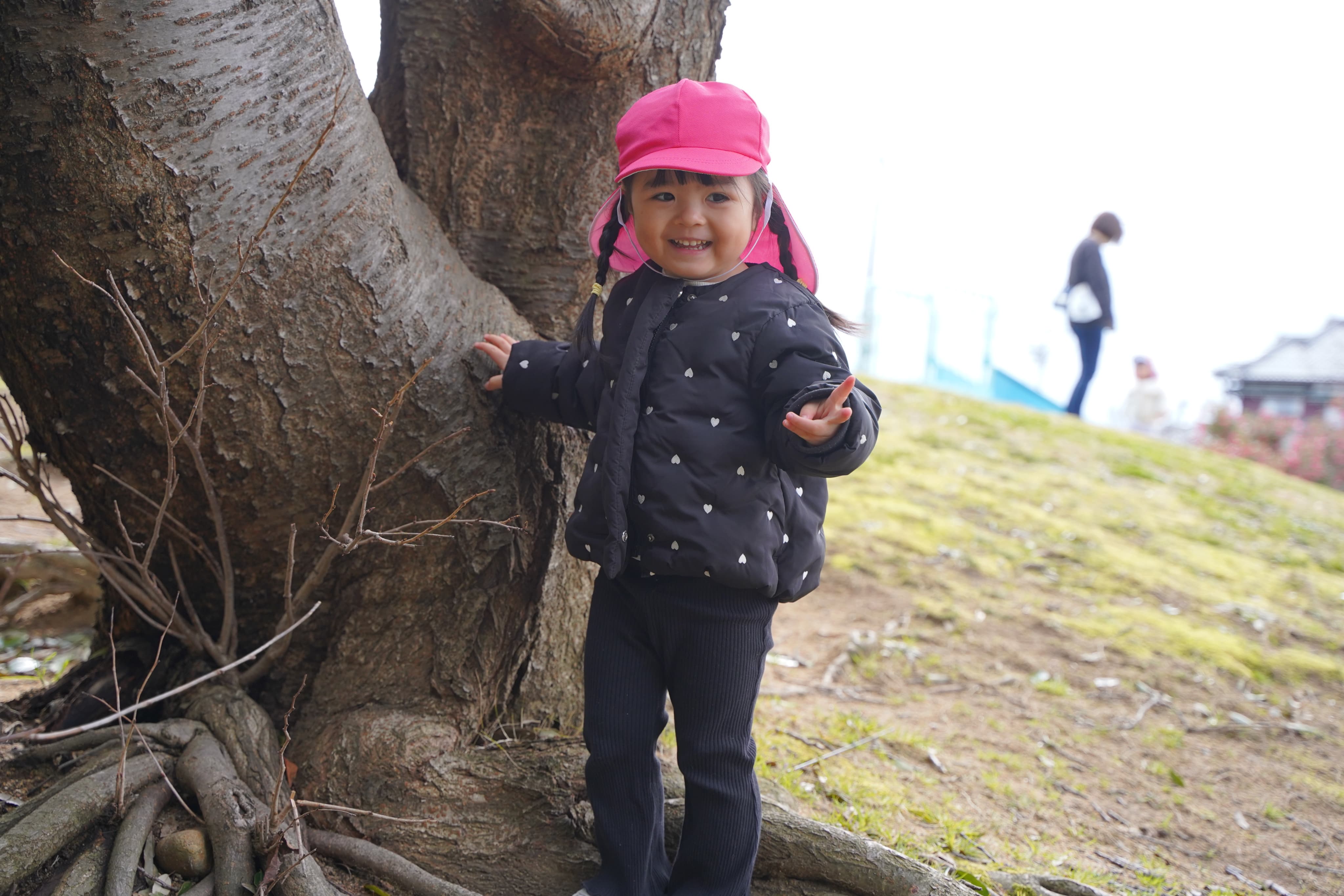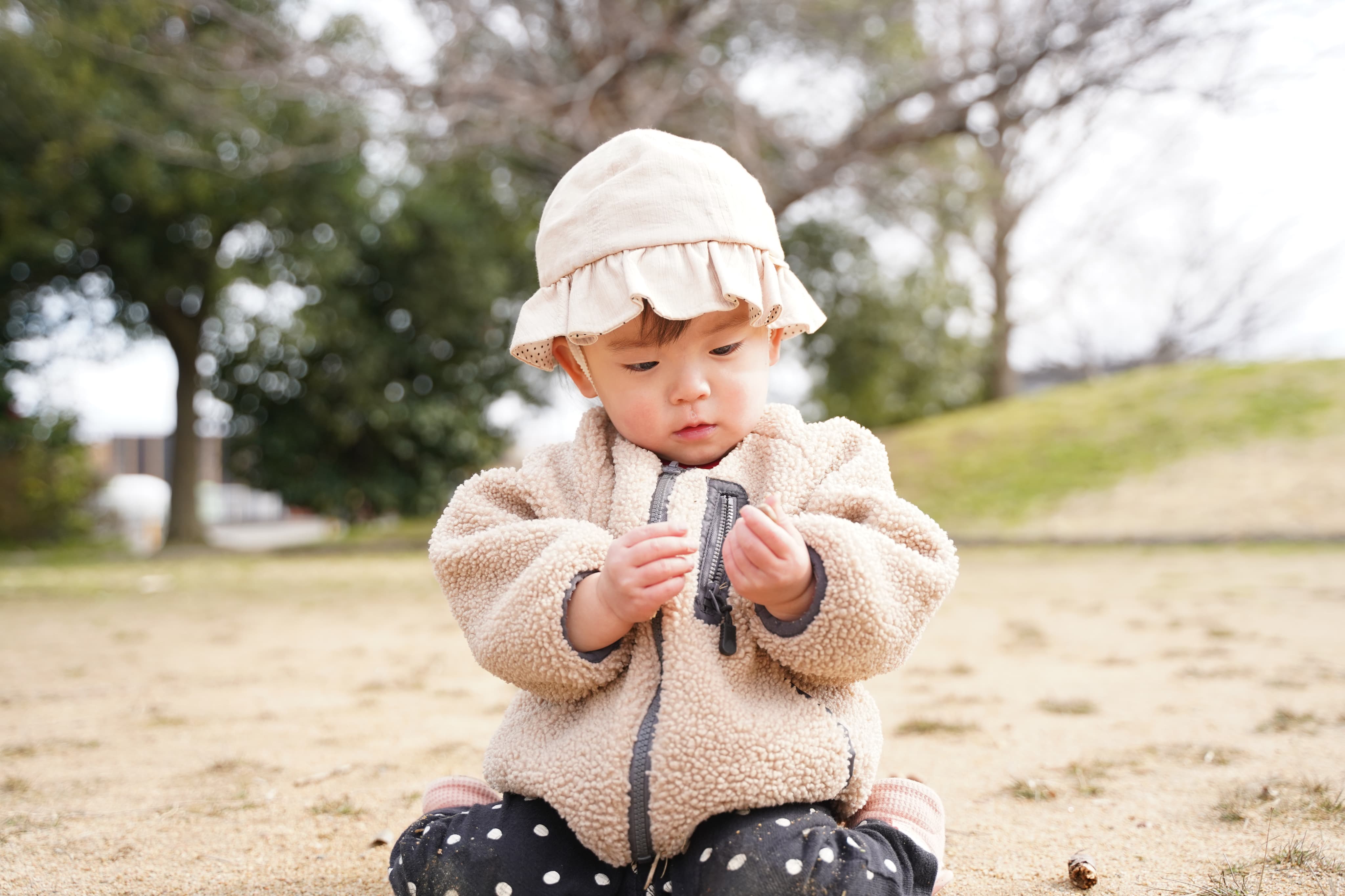 木からの落とし物に夢中になる子どもたち💖