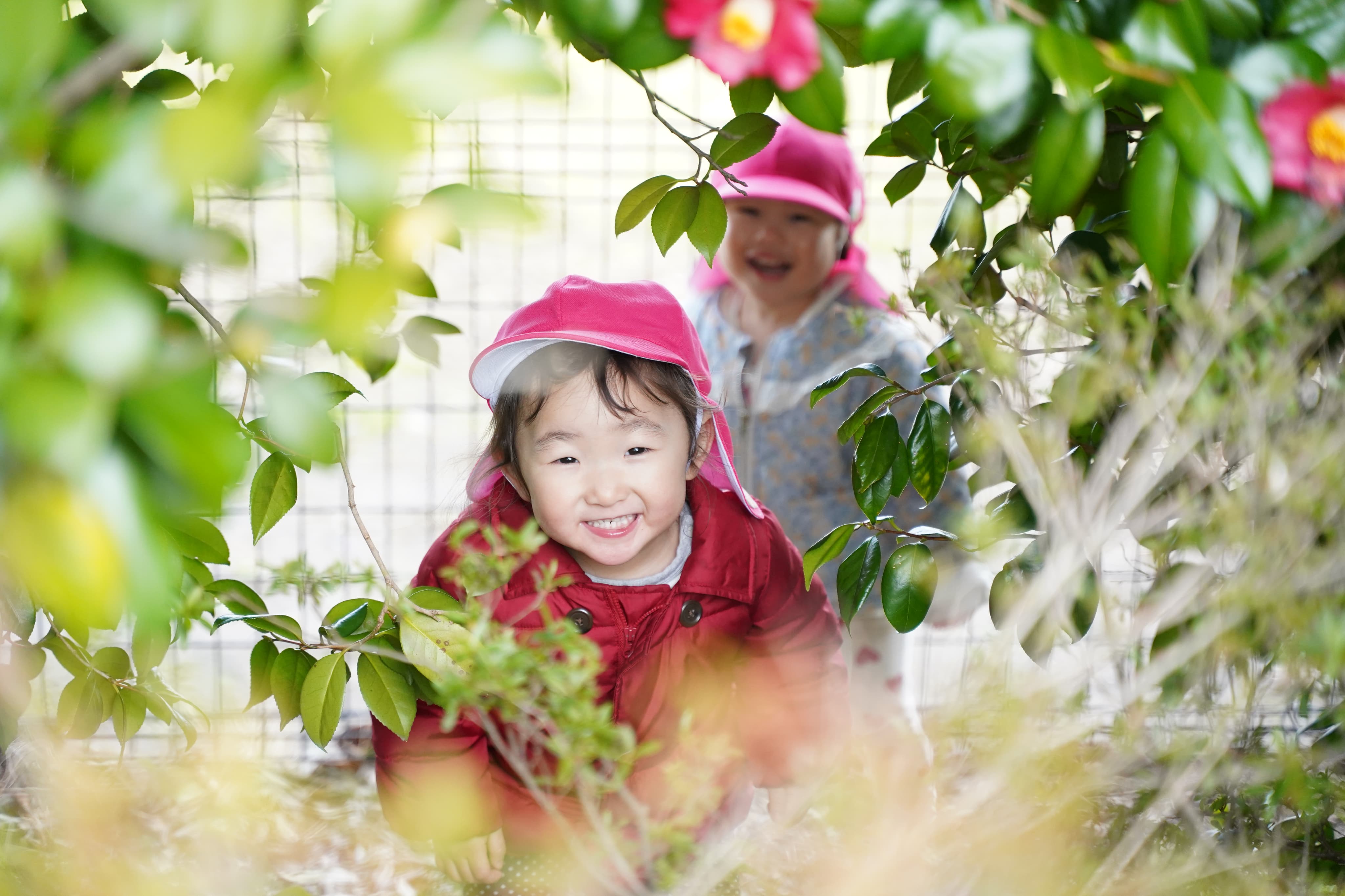 葉っぱに囲まれたお家からは、可愛い家主たちが顔を出します🤭