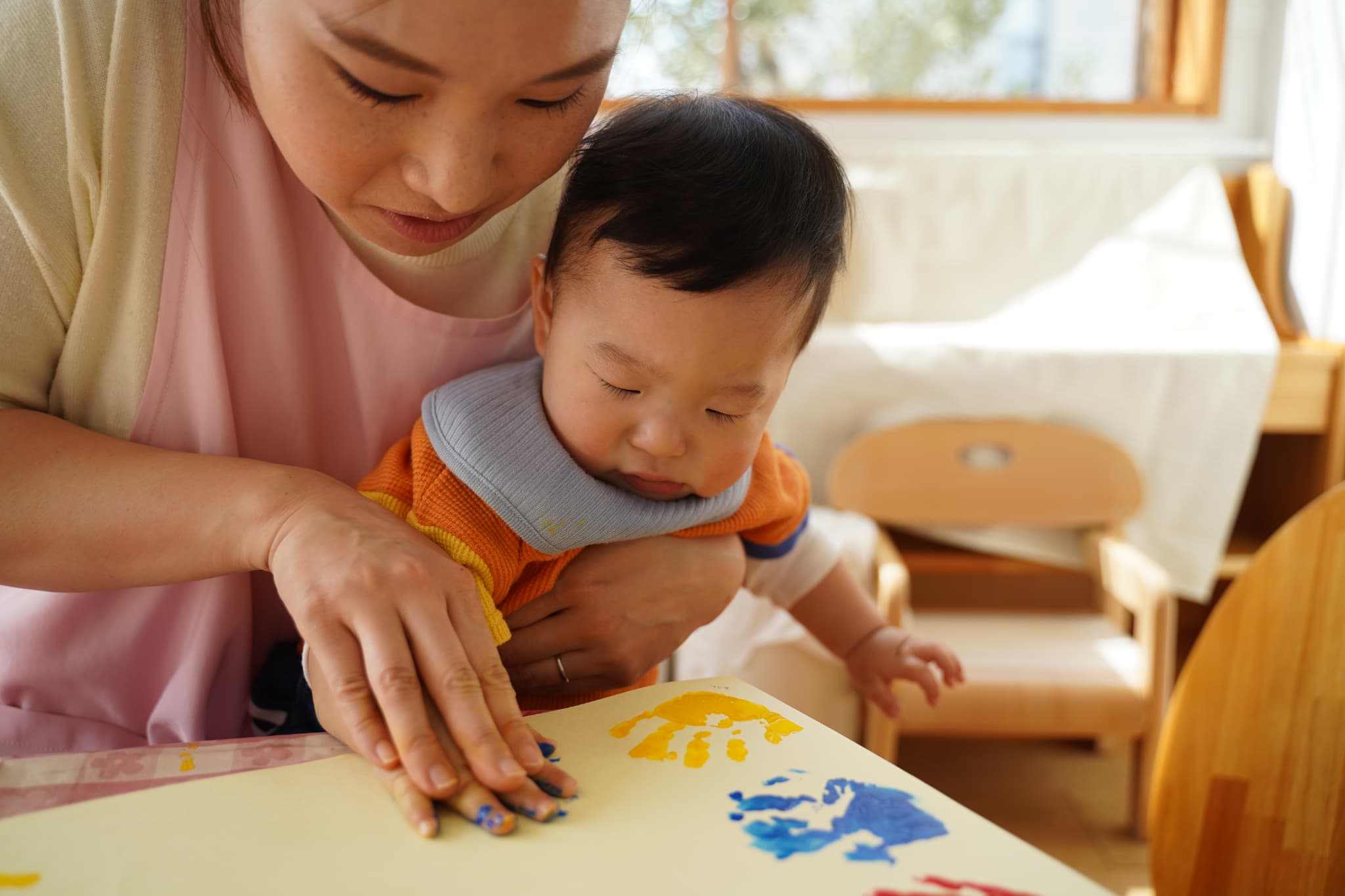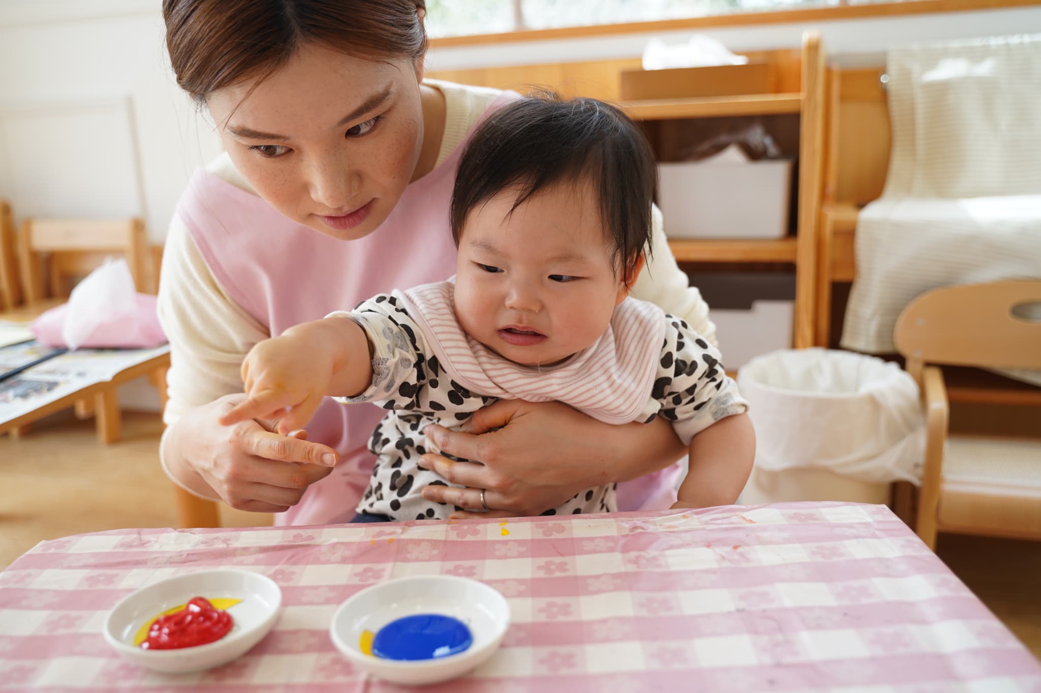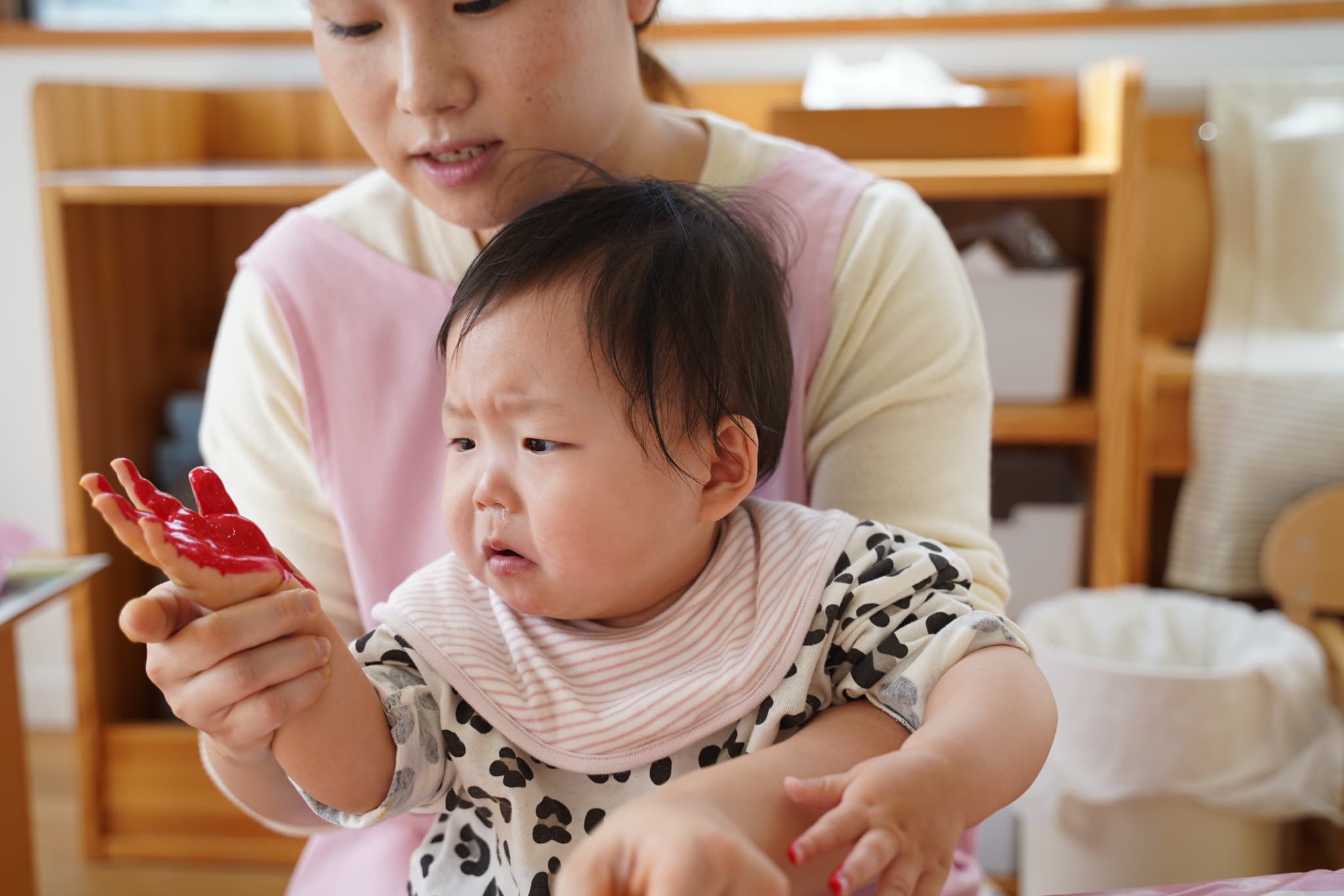筆を使って手に塗られる感触や色を楽しむ姿が様々で見ていて面白かったですよ🎶