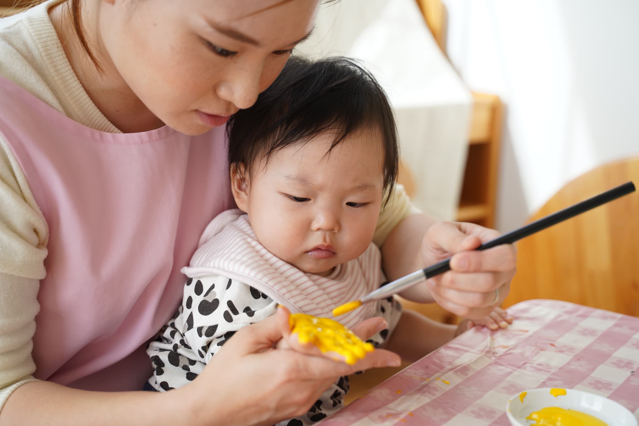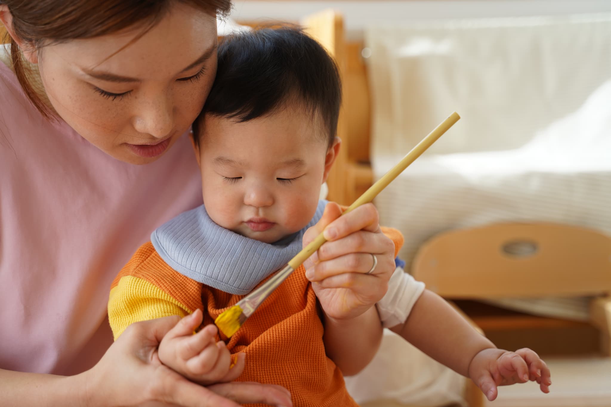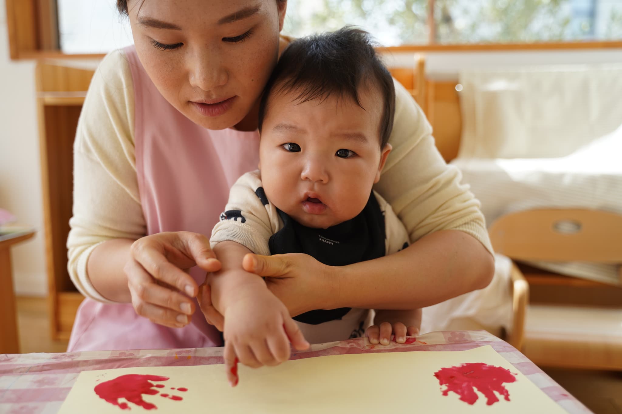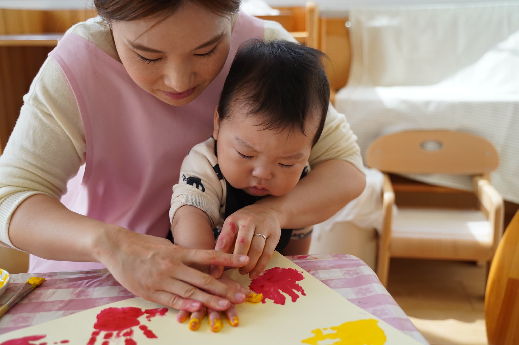 筆を使って手に塗られる感触や色を楽しむ姿が様々で見ていて面白かったですよ🎶