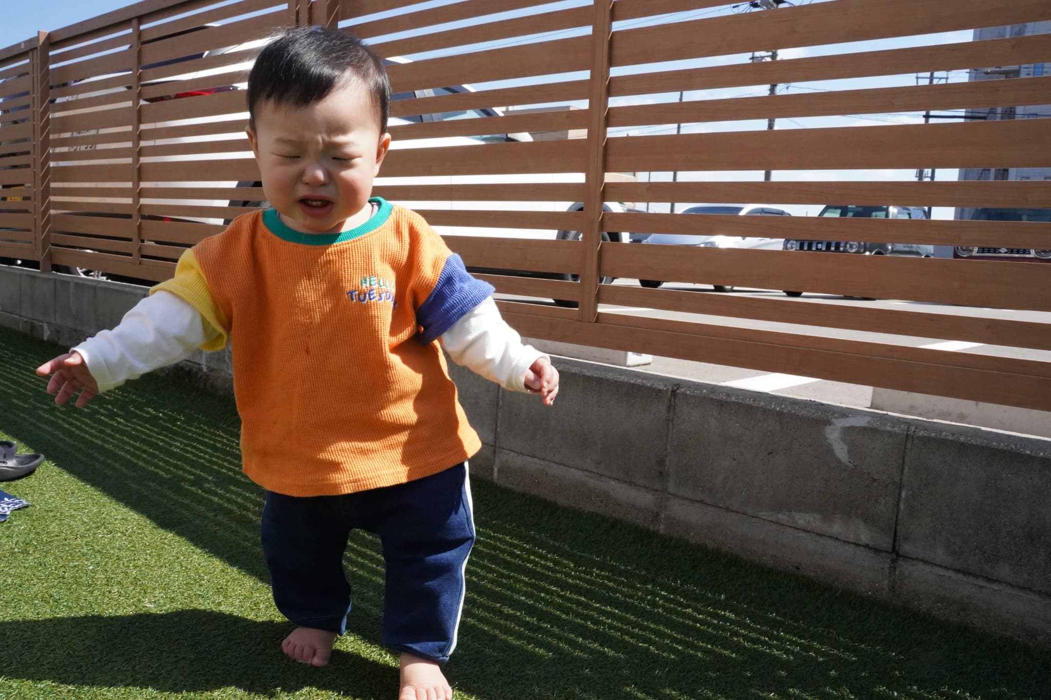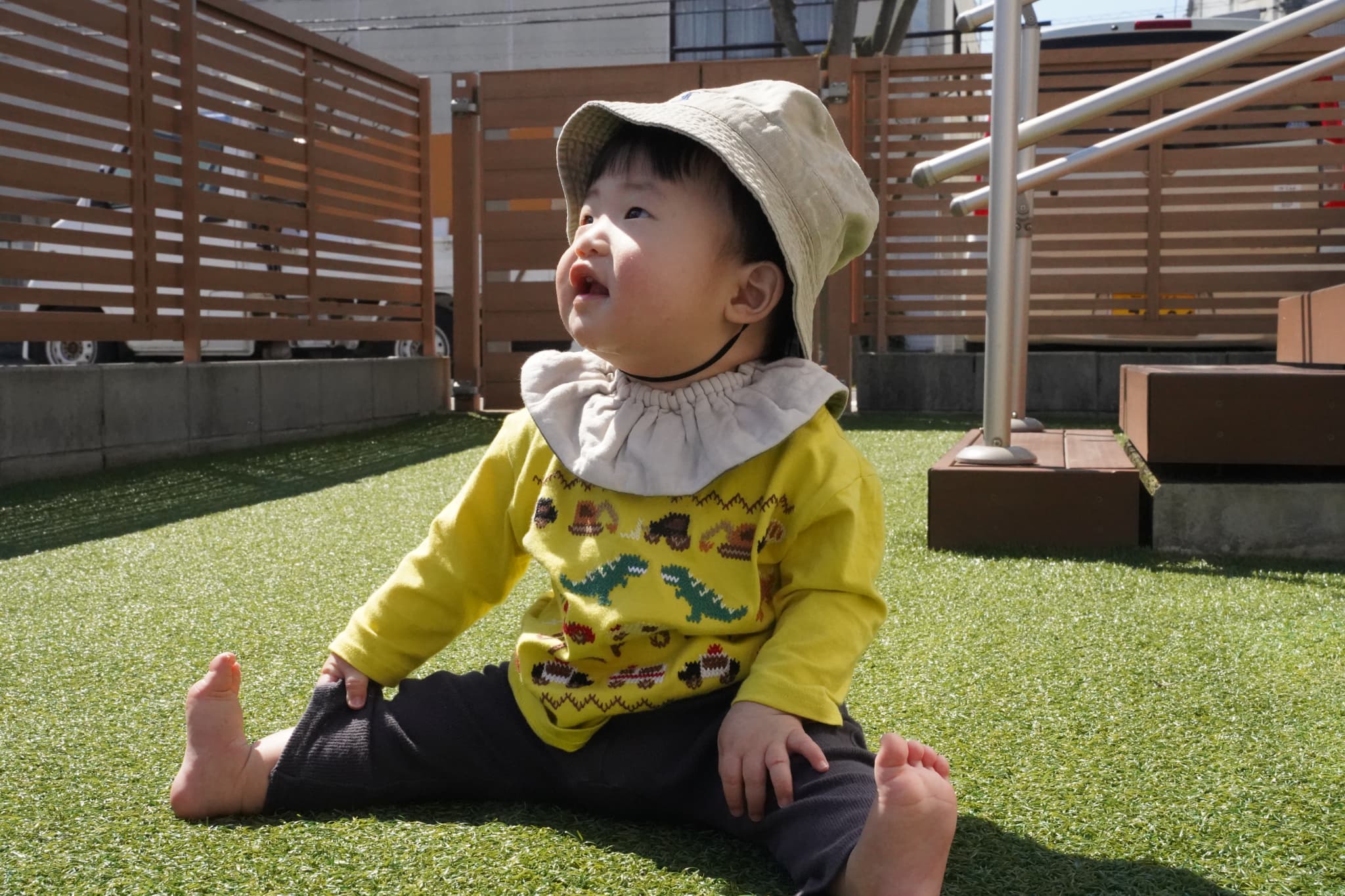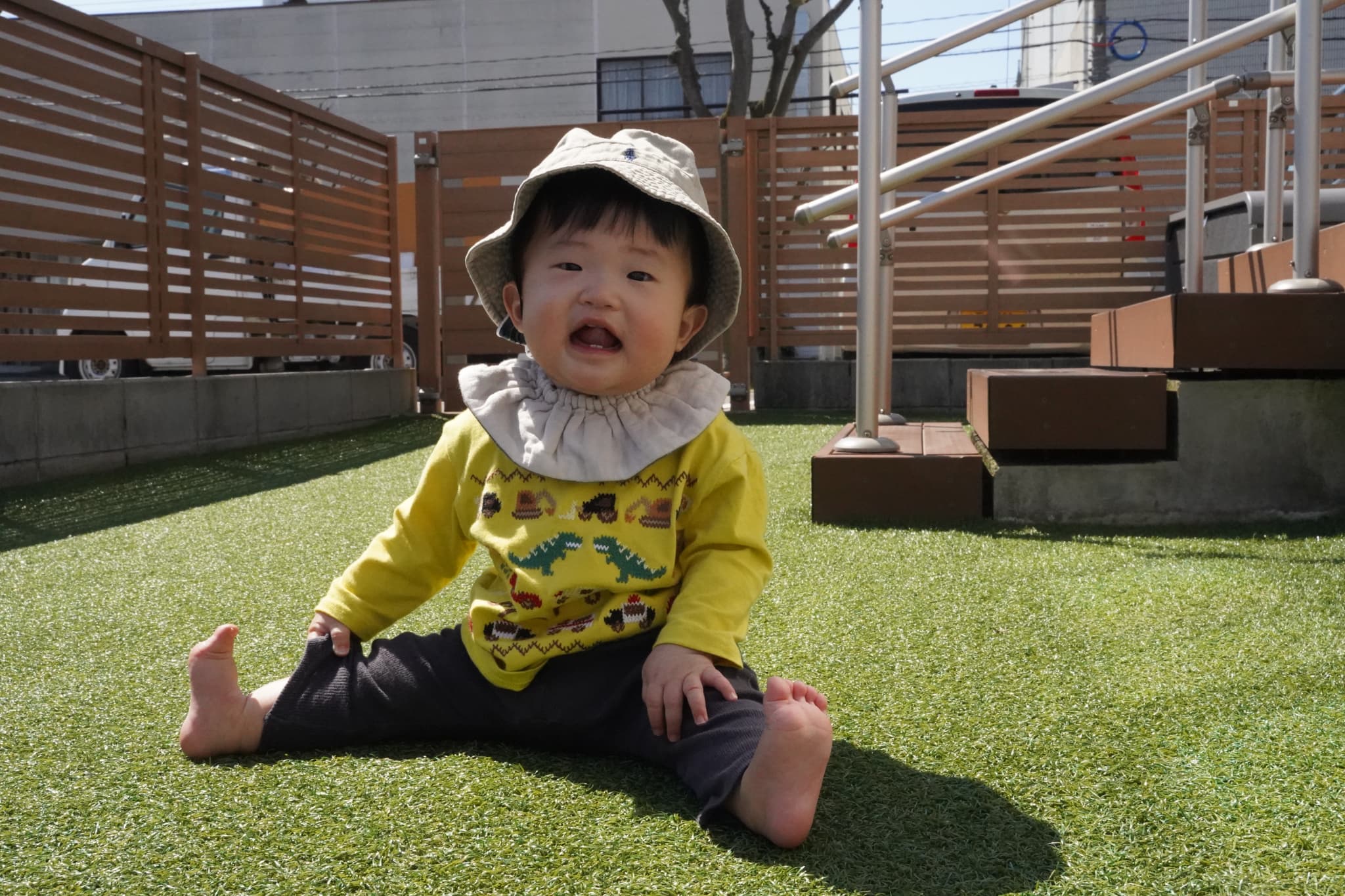 「すごいでしょ!」ちくちく芝生、あるけたよ!