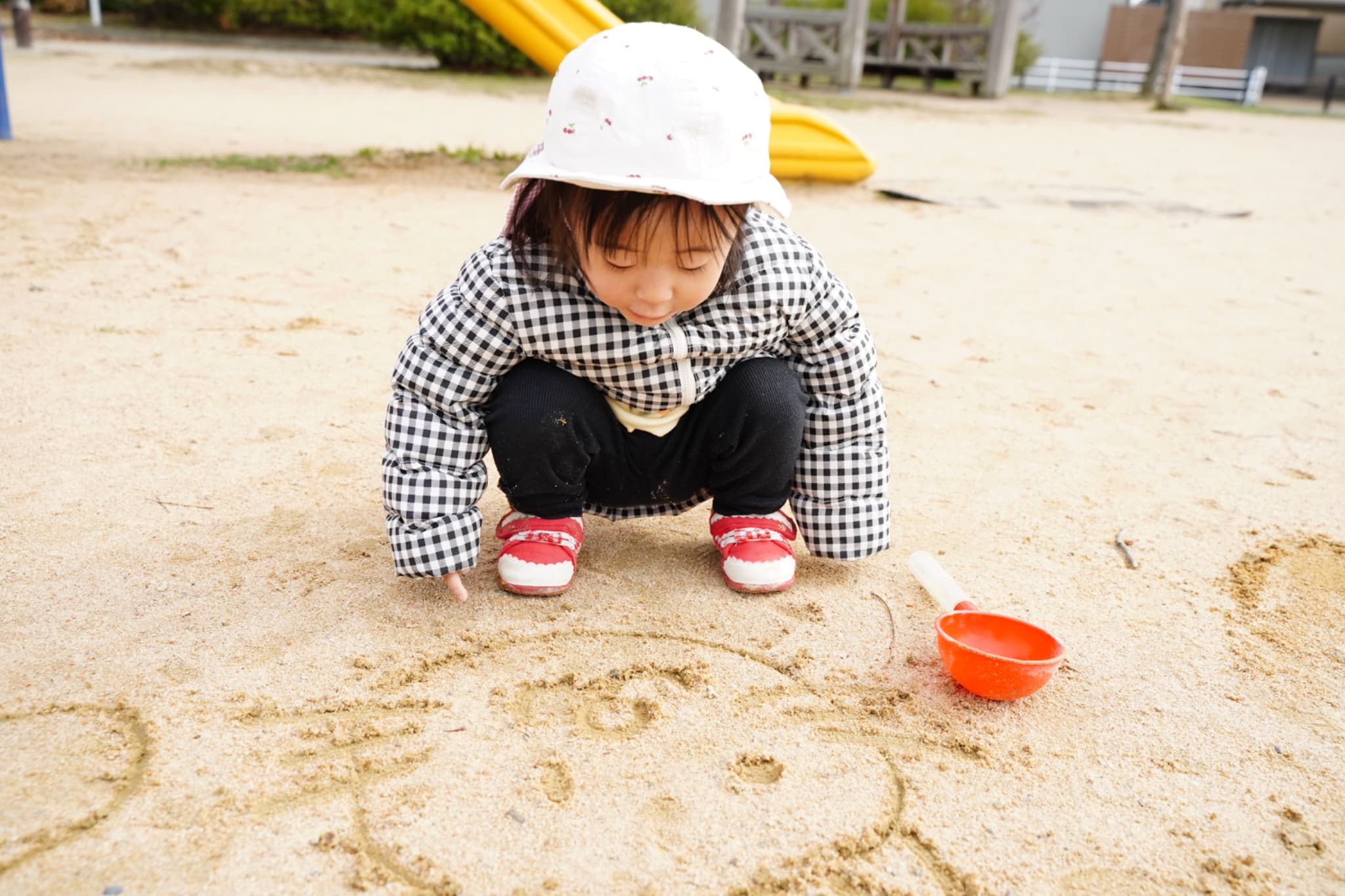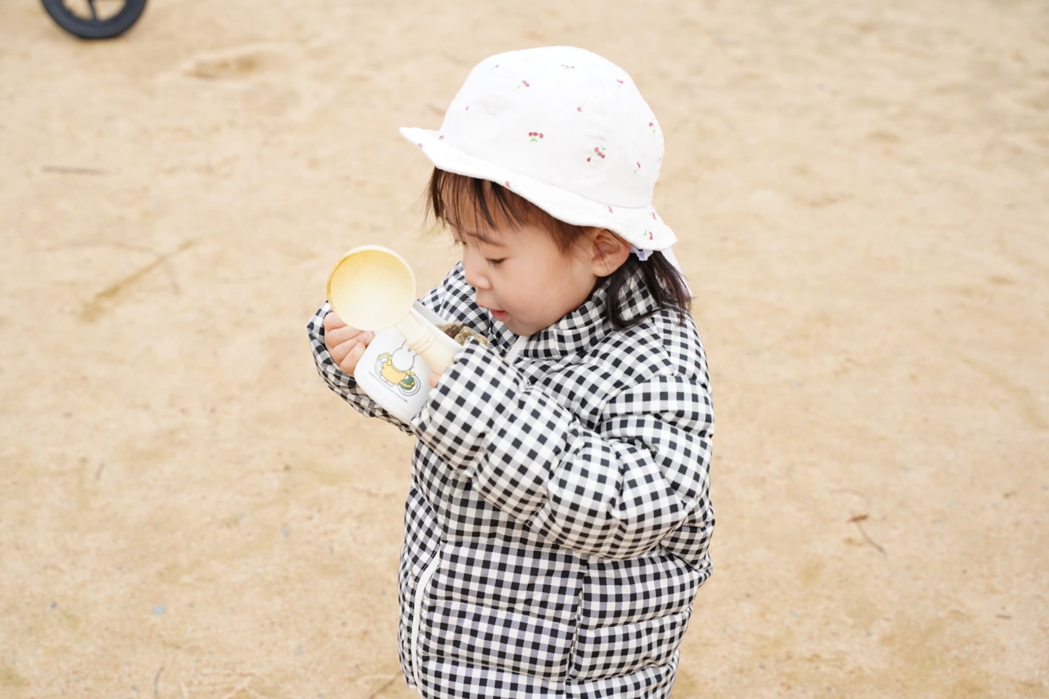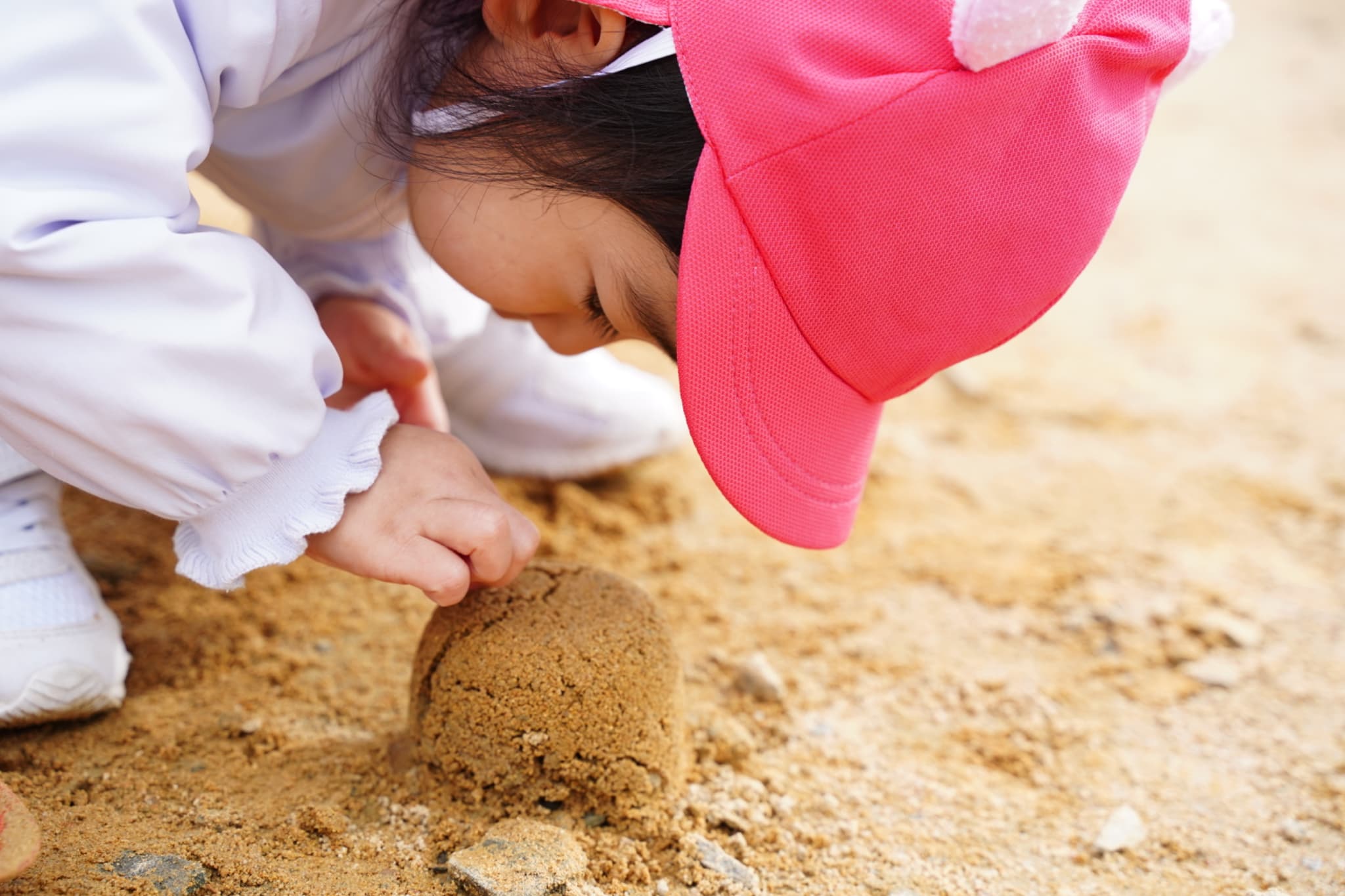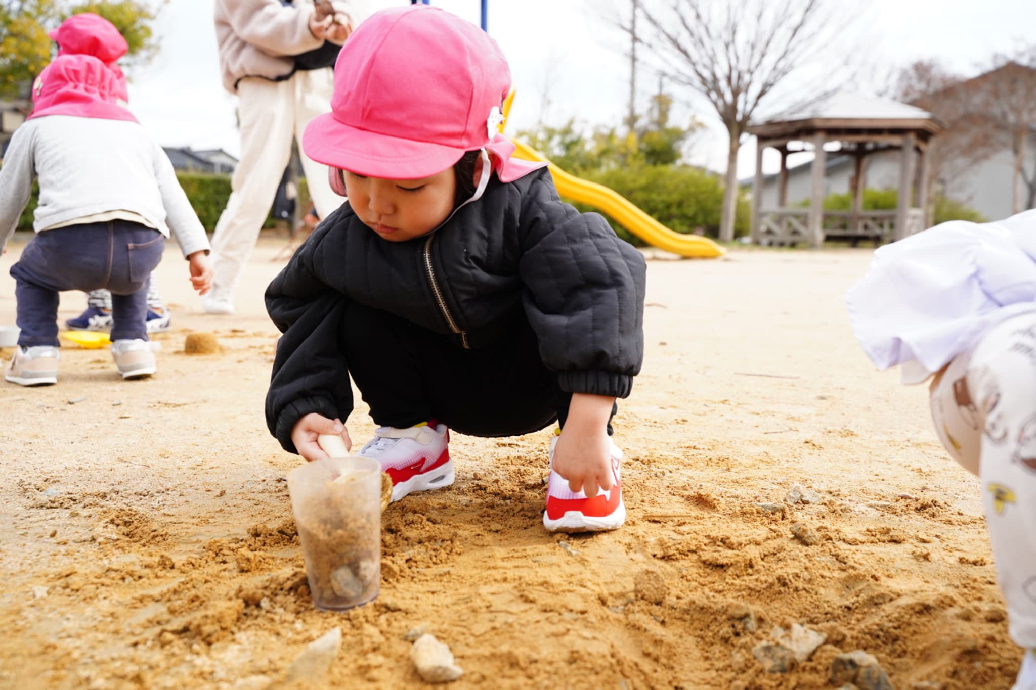 大人気の砂遊びコーナー今日の砂は少し色が黄色っぽかったり、大きい石がたくさんあったりと、いつもと違う色や感触もじっくり楽しんでいた子どもたち♪