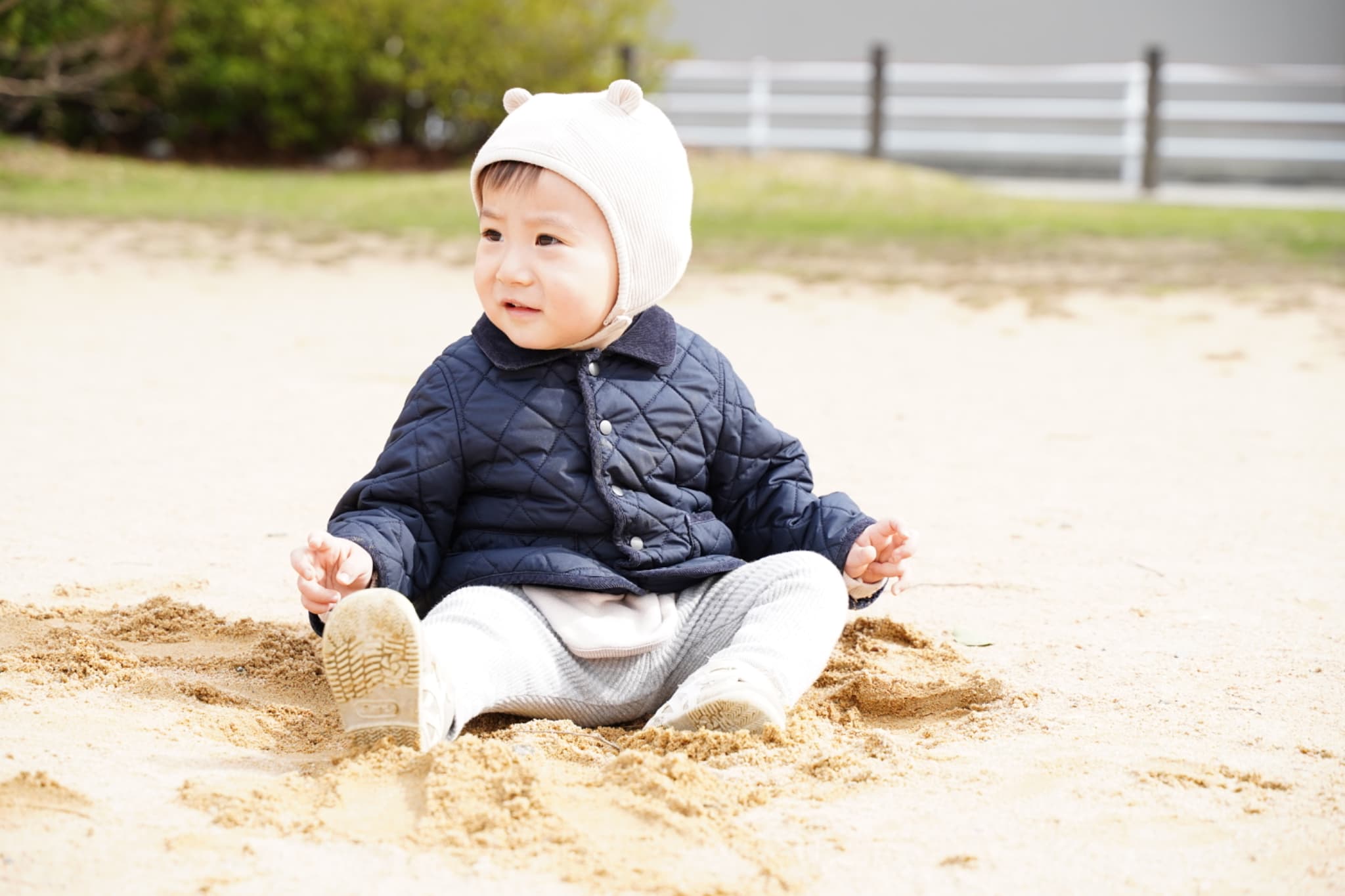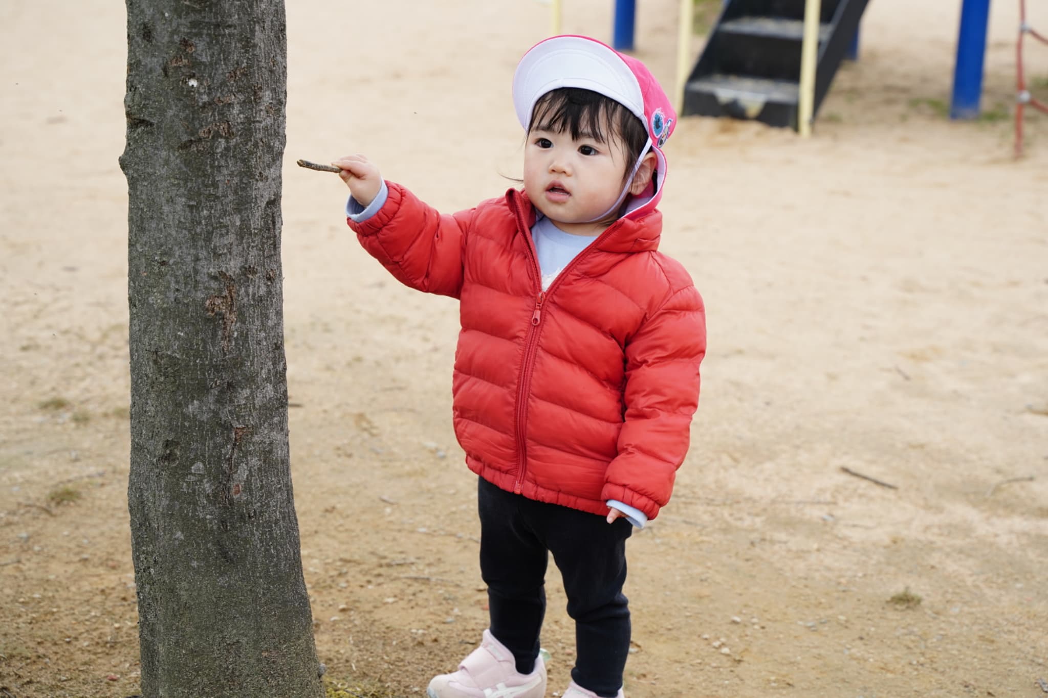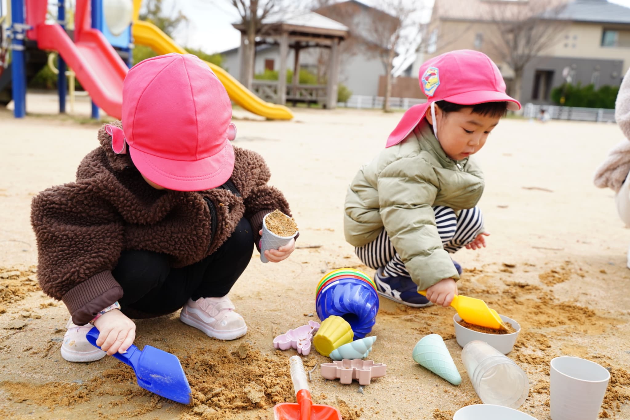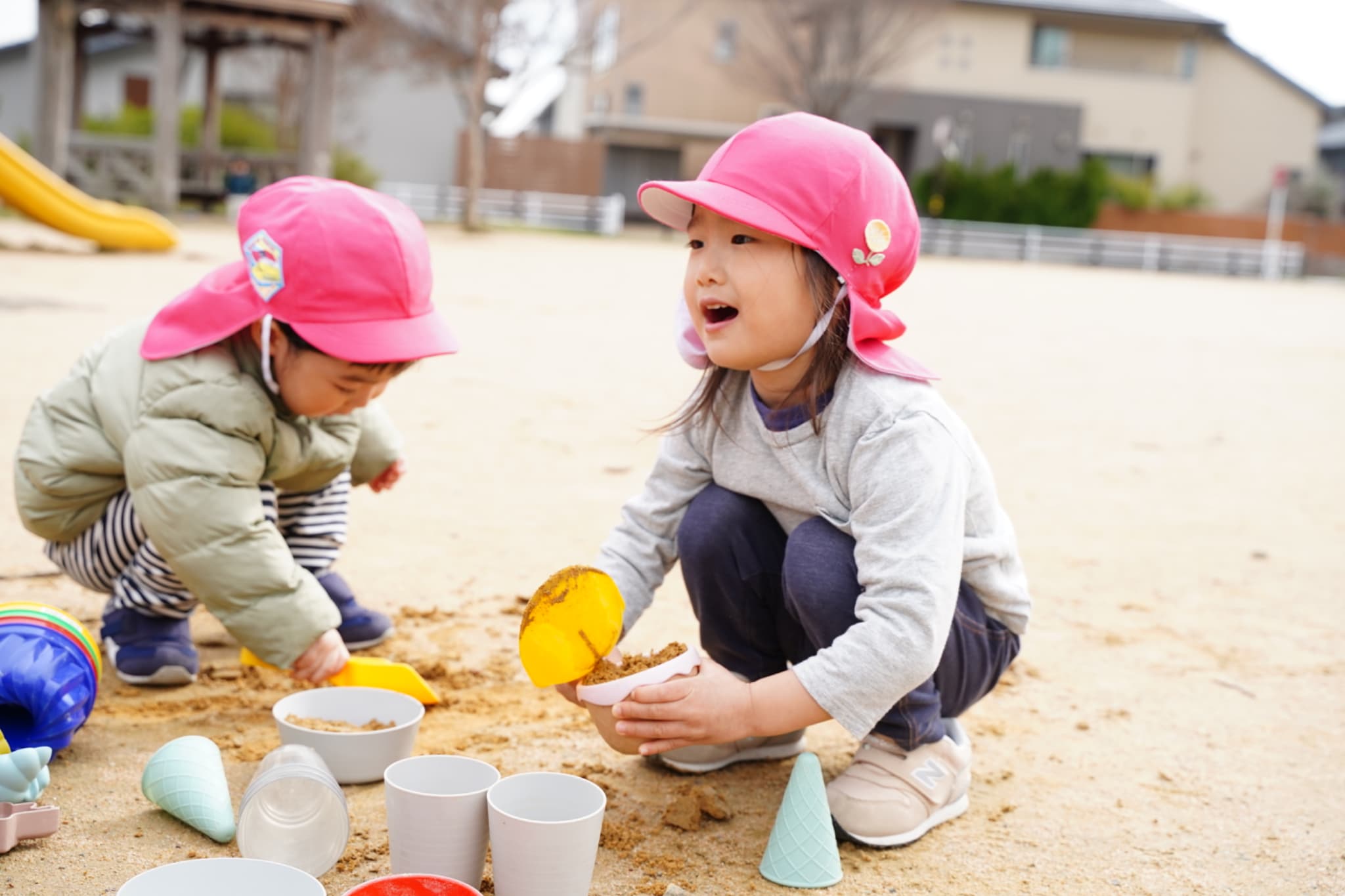 大人気の砂遊びコーナー今日の砂は少し色が黄色っぽかったり、大きい石がたくさんあったりと、いつもと違う色や感触もじっくり楽しんでいた子どもたち♪