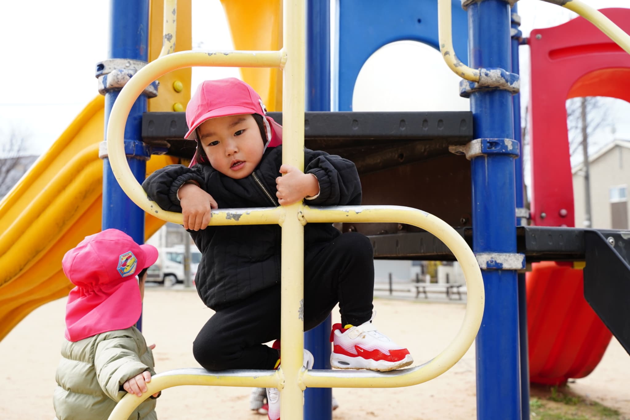 ぼくたちは滑り台の登り棒に挑戦!諦めずに一生懸命できるところまで登ってみようと頑張っていました💪
