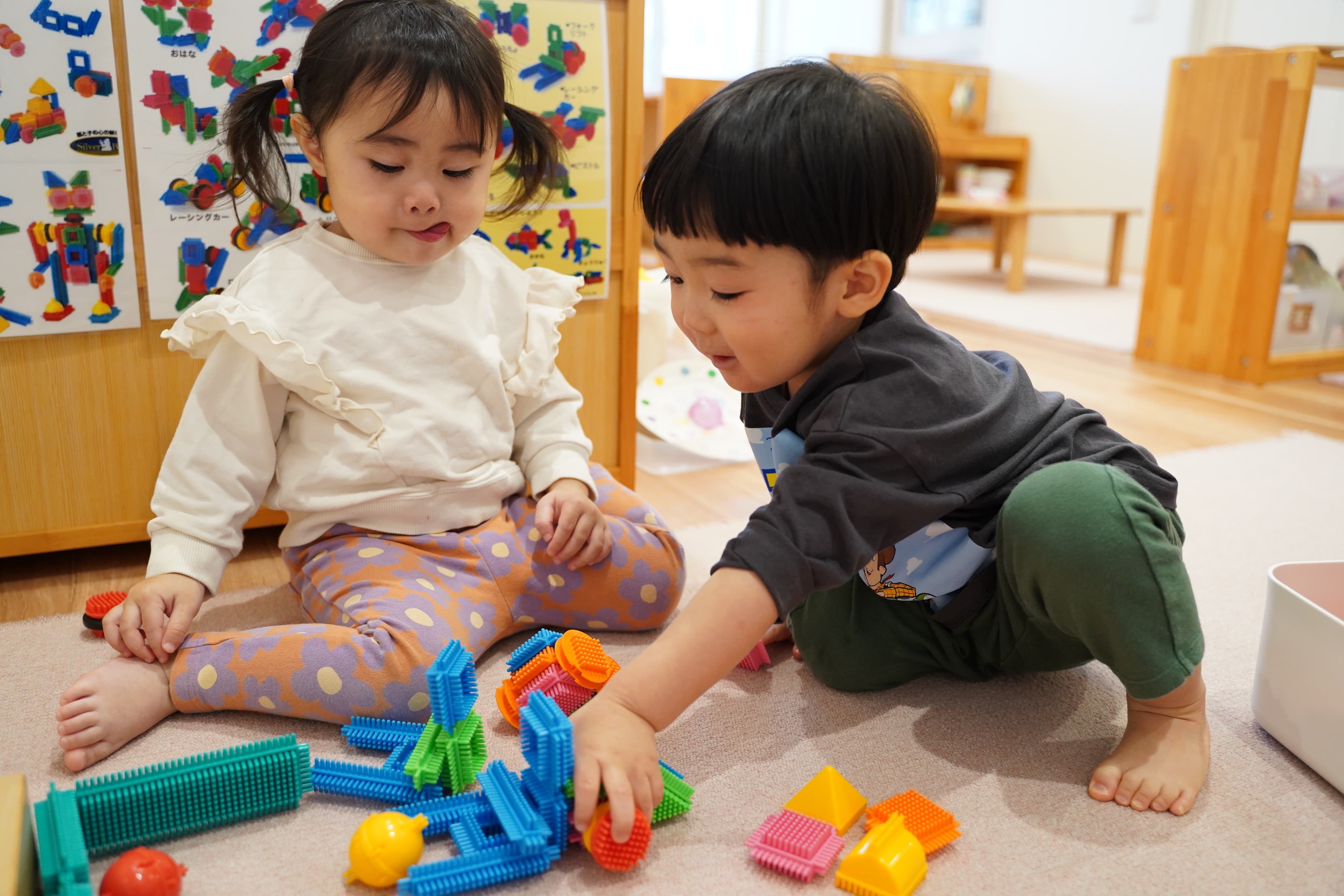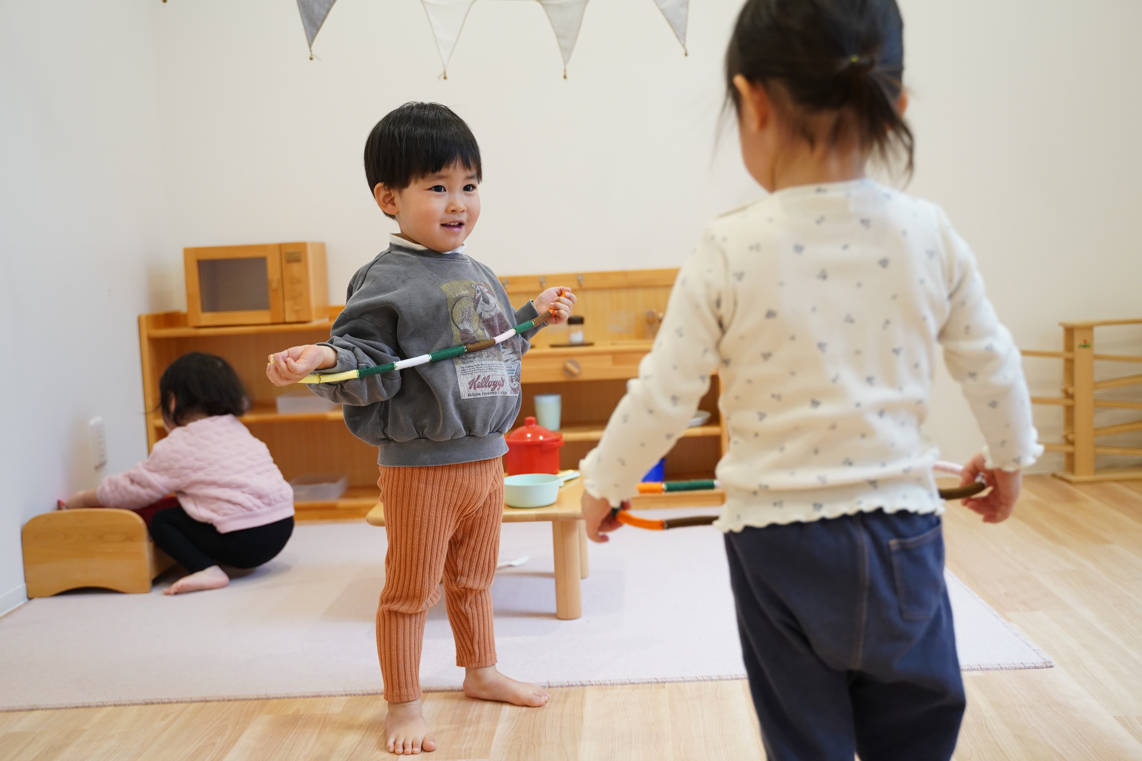 お友達と同じ遊びで楽しさを共感しながら遊ぶ姿も見られ、友達関係もどんどん深まる2歳児さんです🩷
