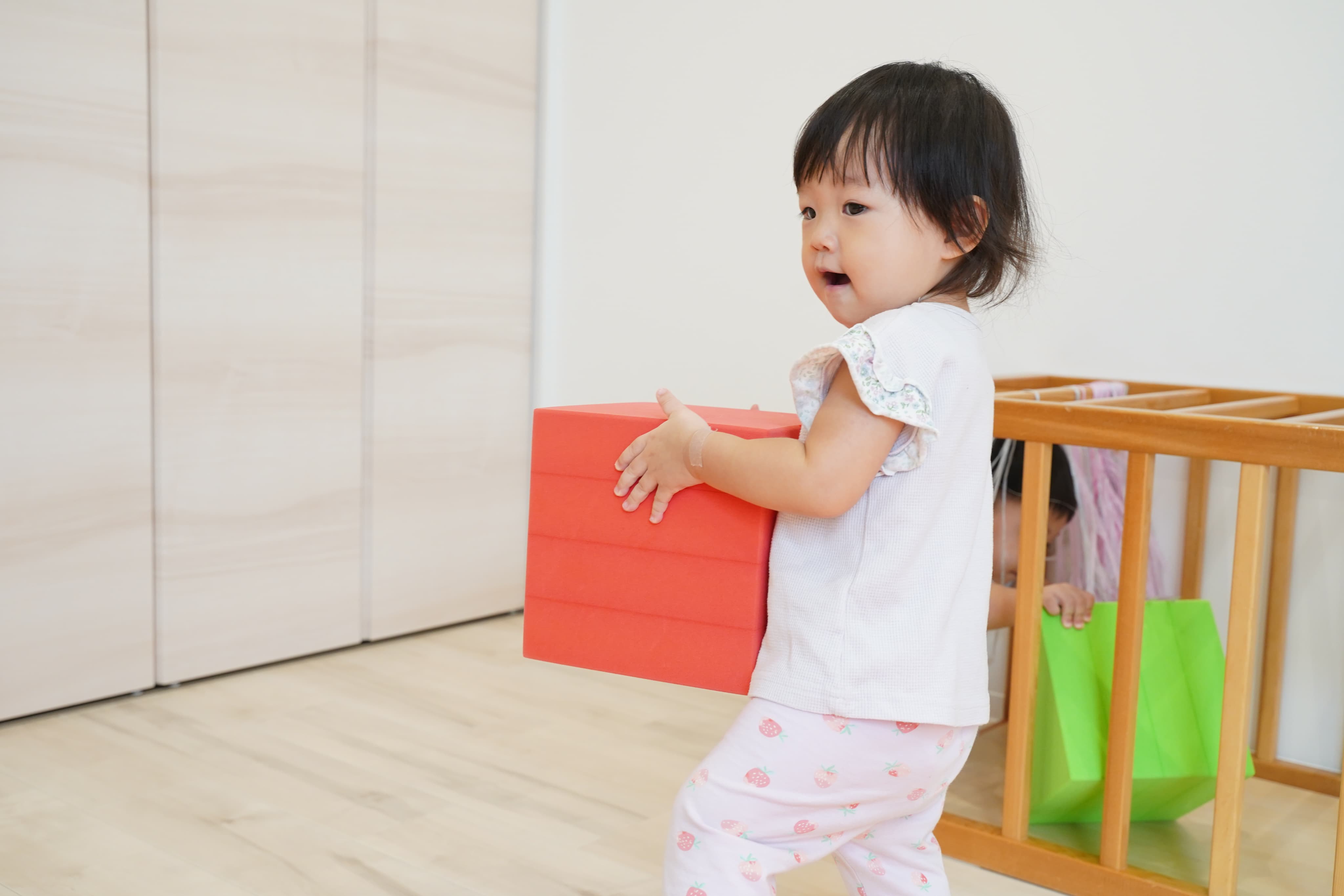 ひとりが積み木を運び始めると、”ボクも〜🙋” ”ワタシも〜🙋♀️”と運び始めました!