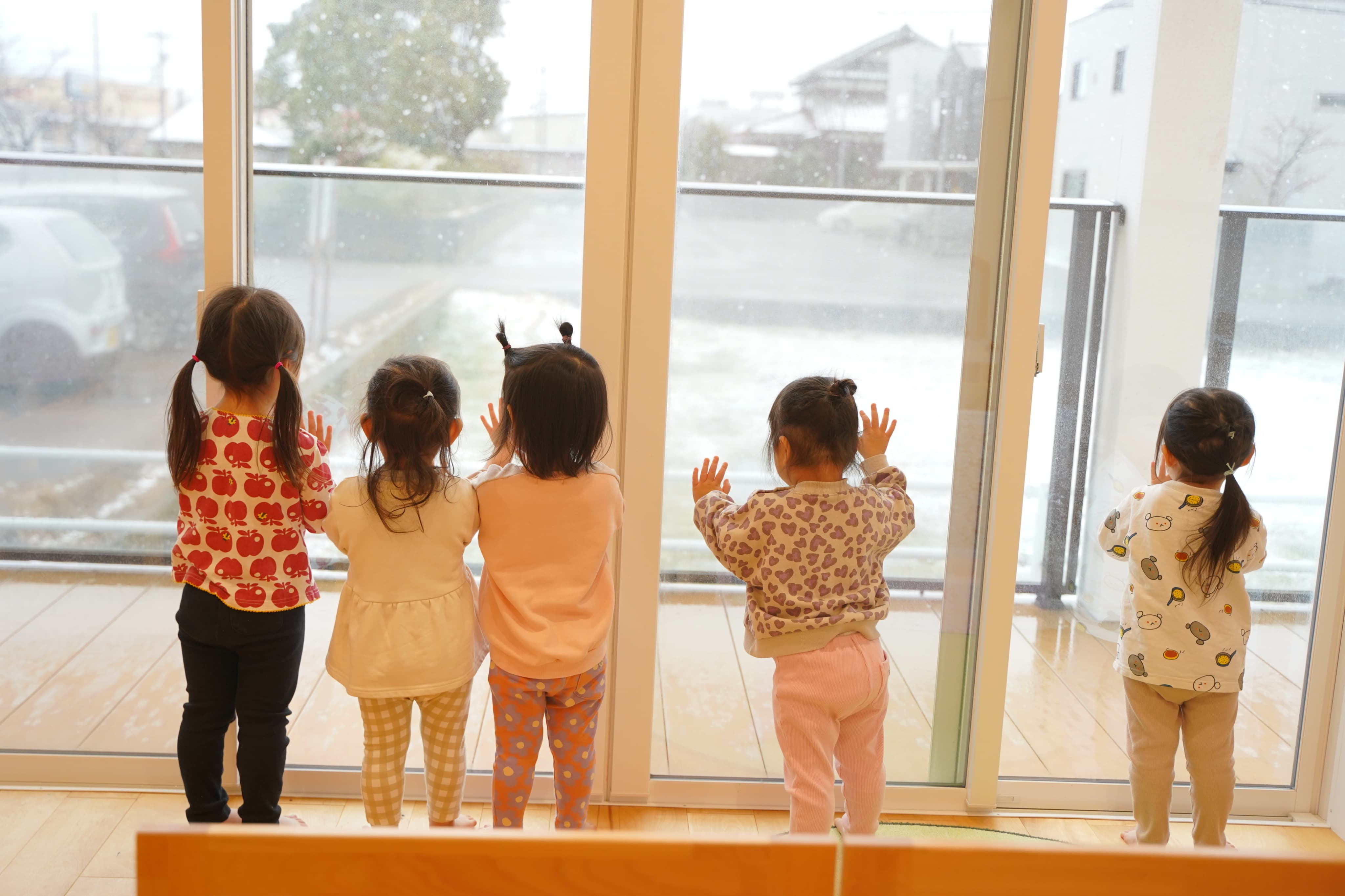 お部屋から見える雪景色に夢中のもも組さん❄️