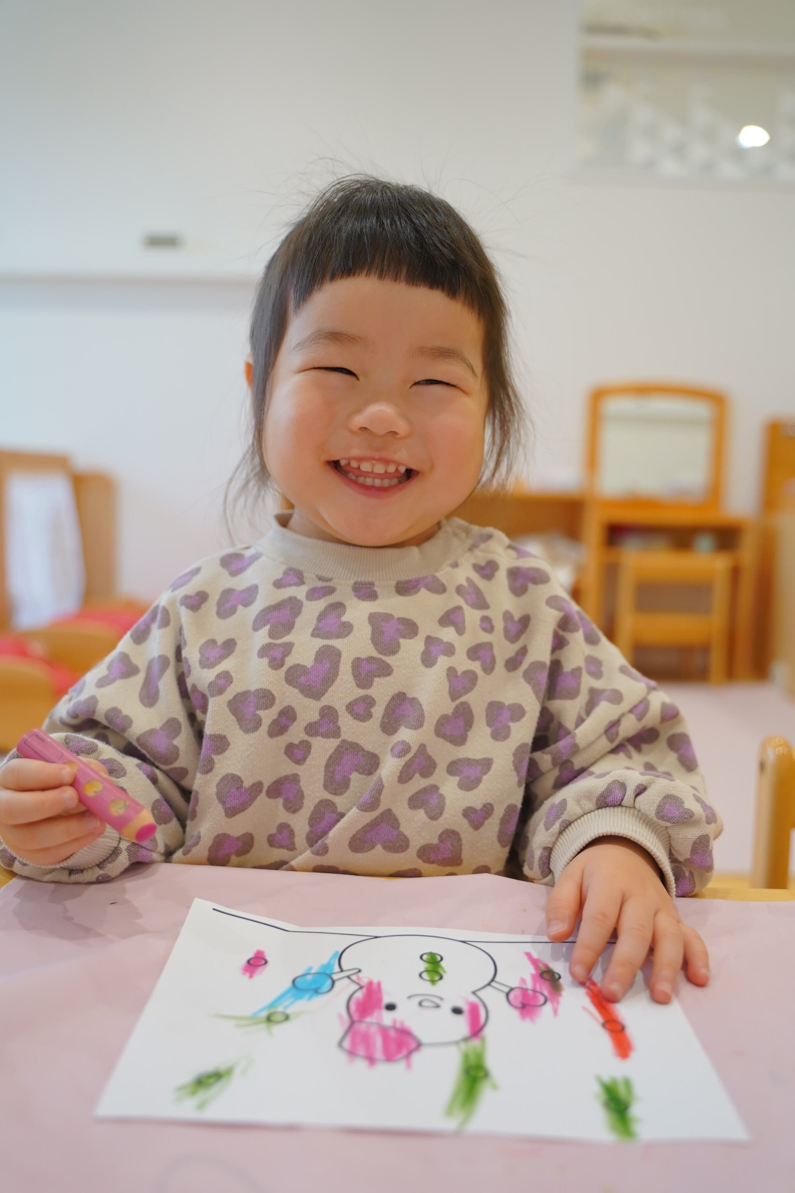 「ゆ〜きやこんこ〜🎶」と上手に歌い、お歌も大好きなもも組さんたちです💕