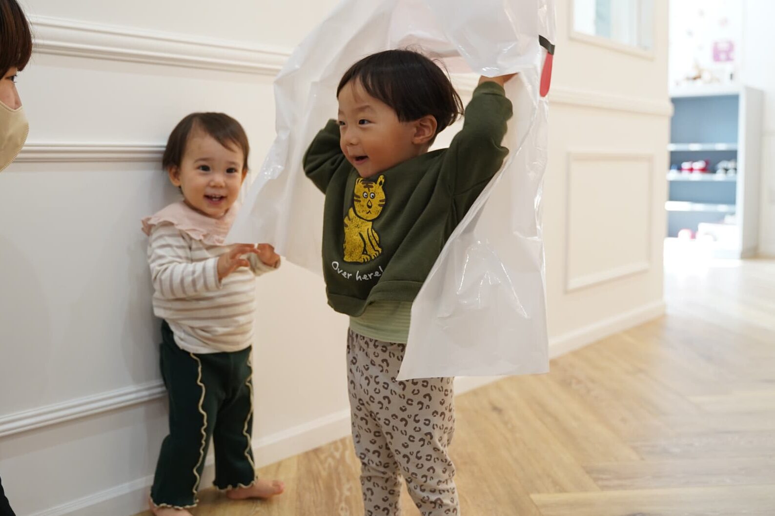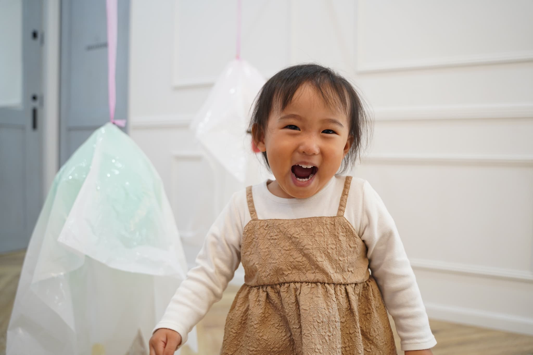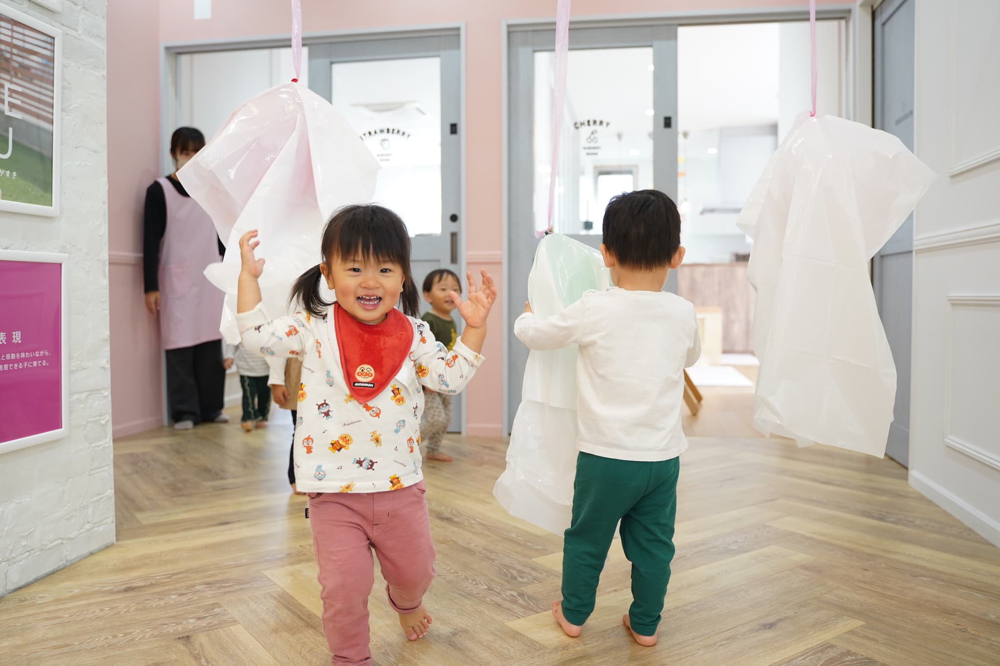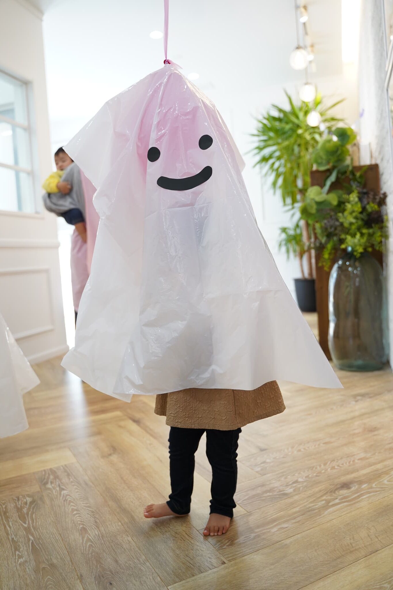 ふわふわと浮かぶオバケにちょっぴりドキドキしていた子もいましたが、ギューっと抱きついたり、隠れてみたり、とっても楽しそうに遊んでいた子ども達でした🎶