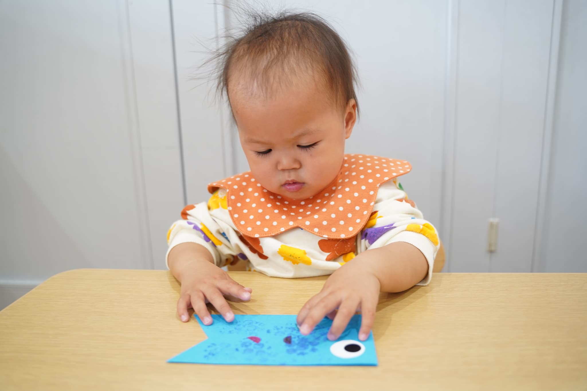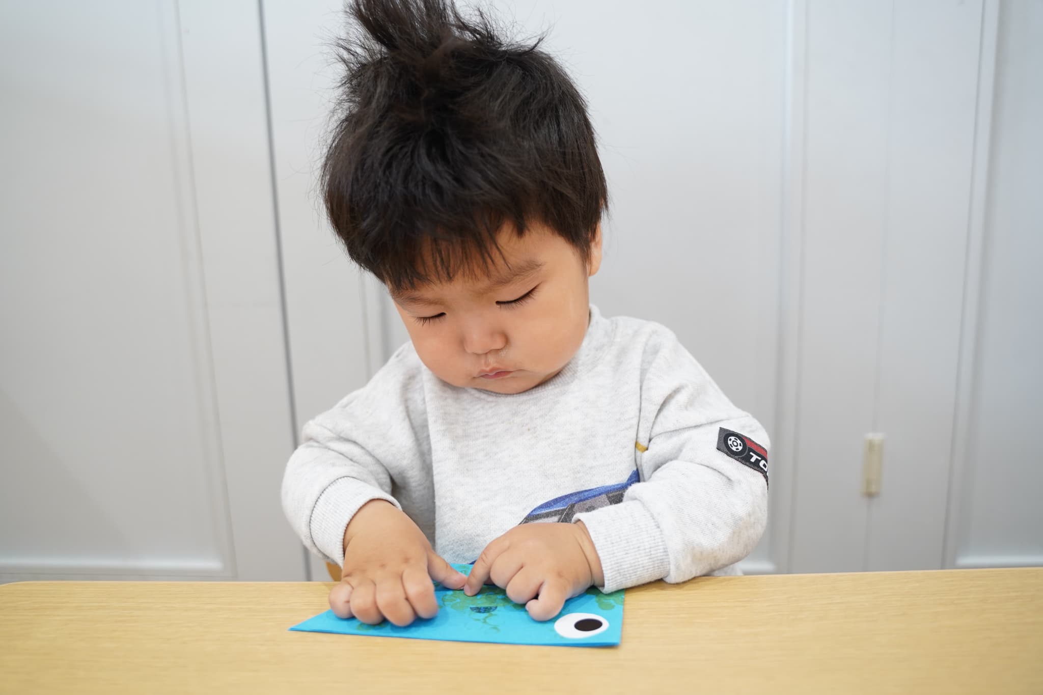 貼りたい場所をよーく見て貼ろうとする姿、とっても可愛いです。