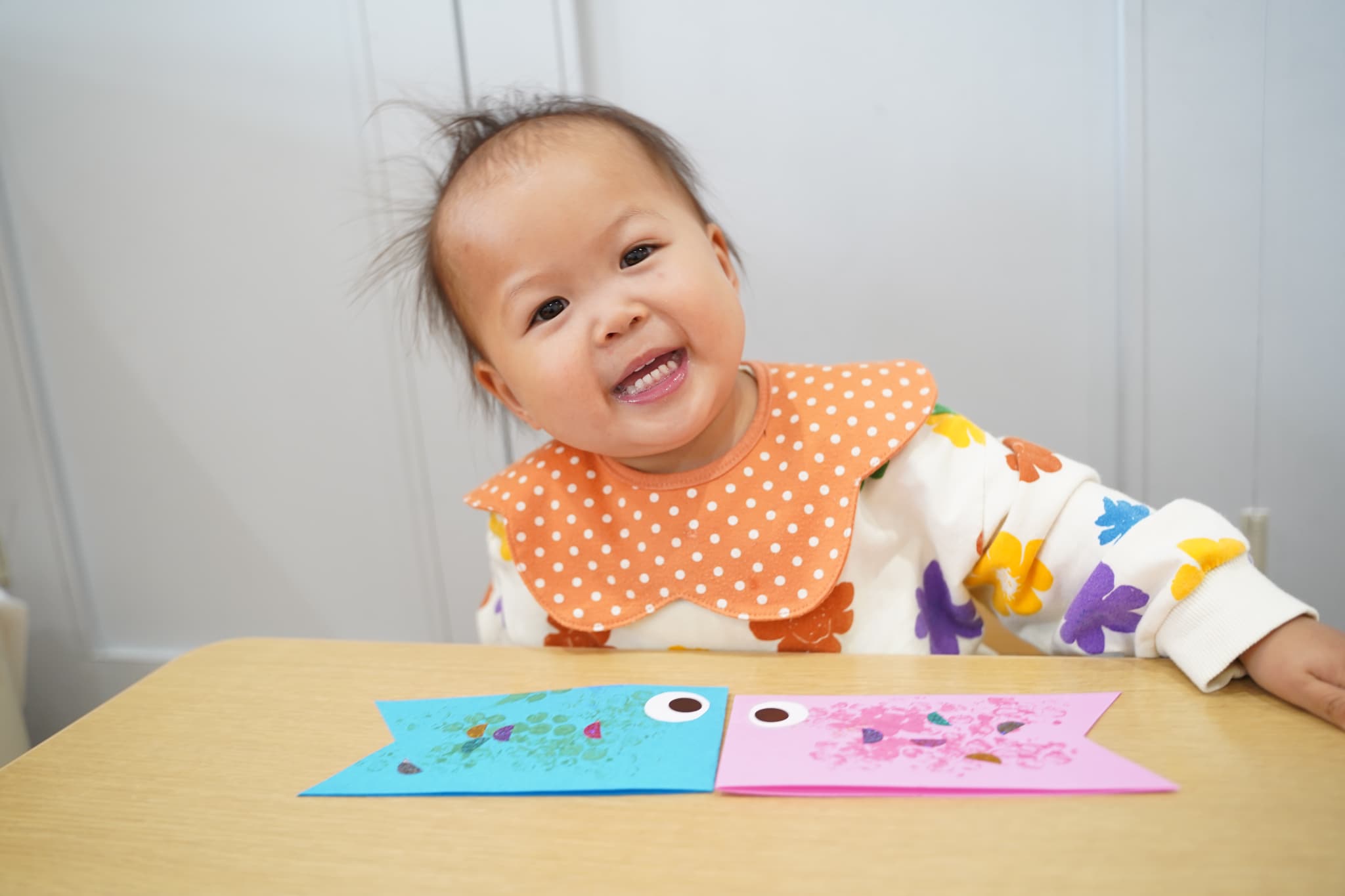 貼る事ができた時や完成した作品を保育士と一緒にみると嬉しそうな子ども達でした!