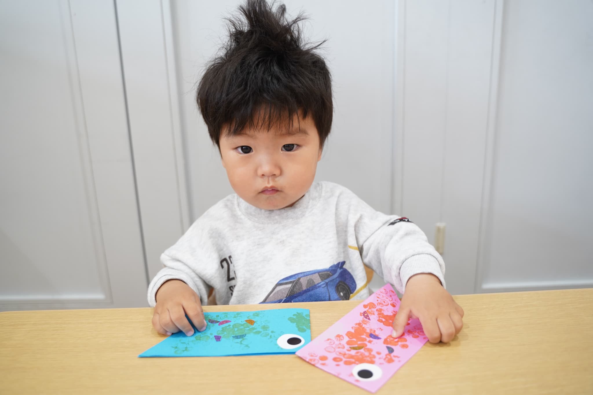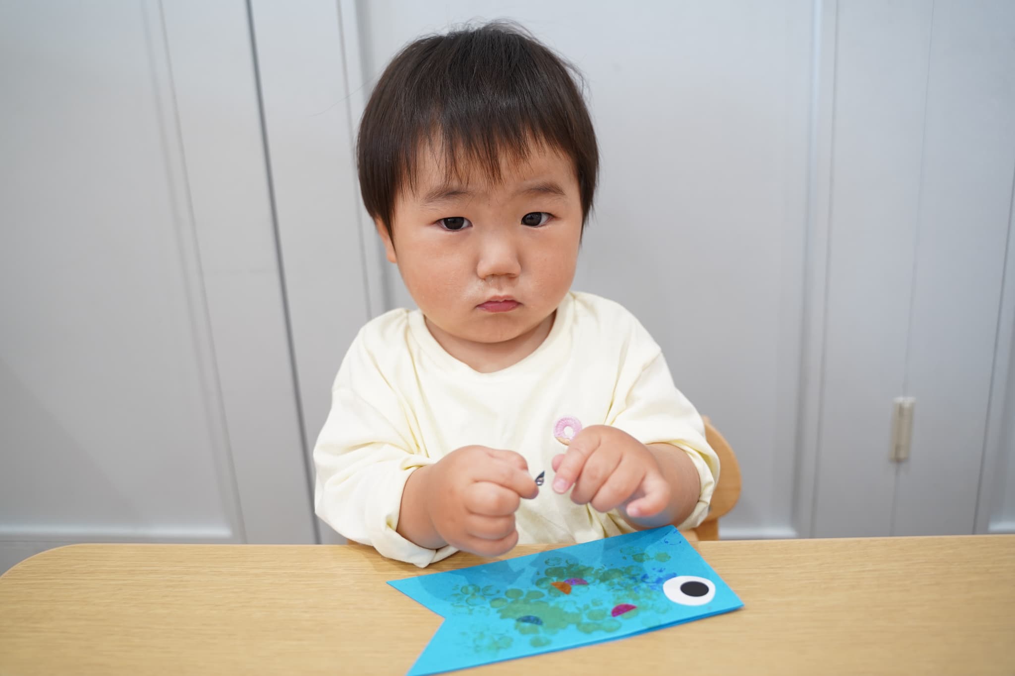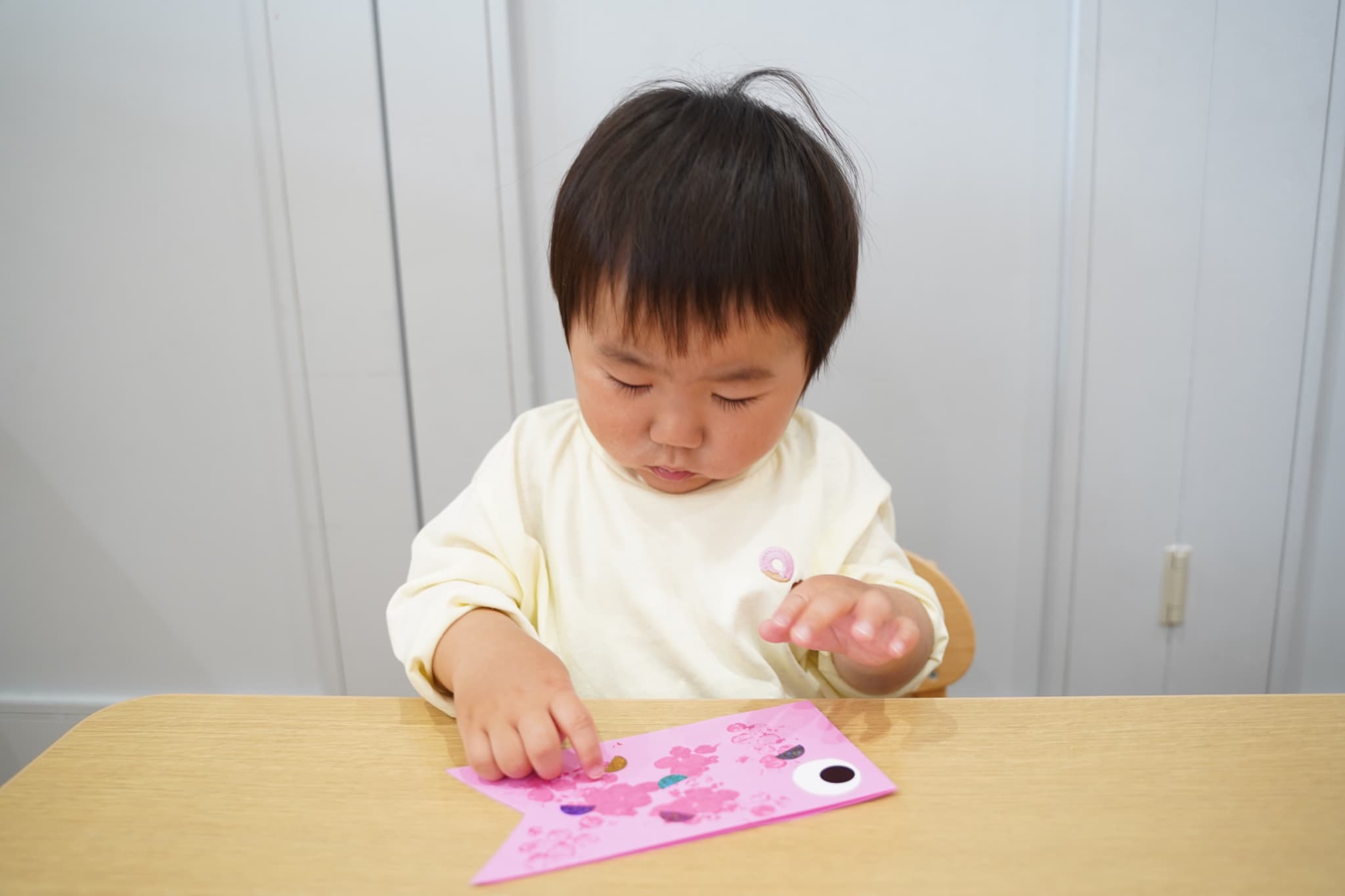 小さなシールでしたが指先を使って上手に貼る姿がありましたよ。