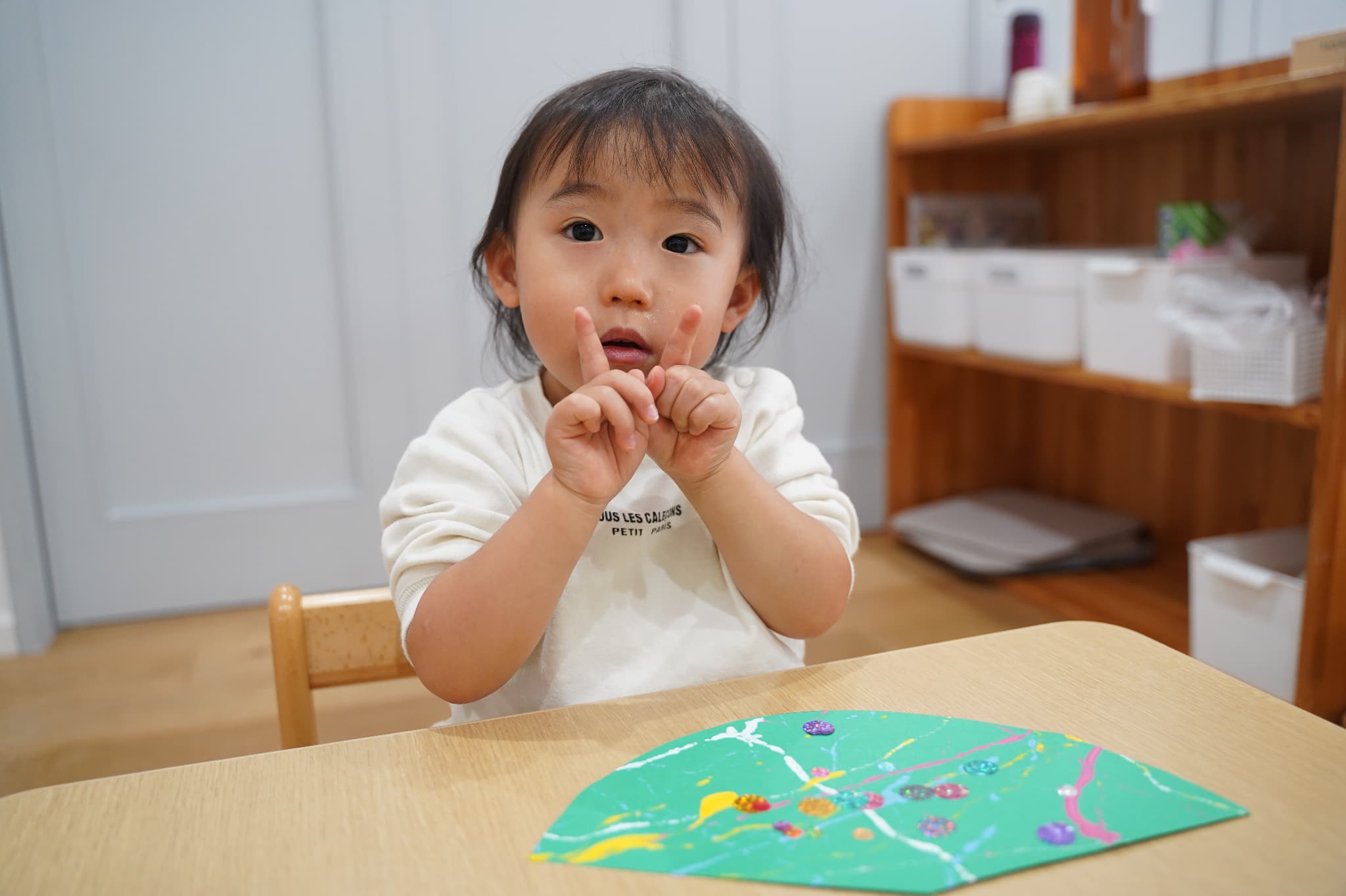 まだまだシールを貼りたいようで「もう1回☝️」とアピール中!