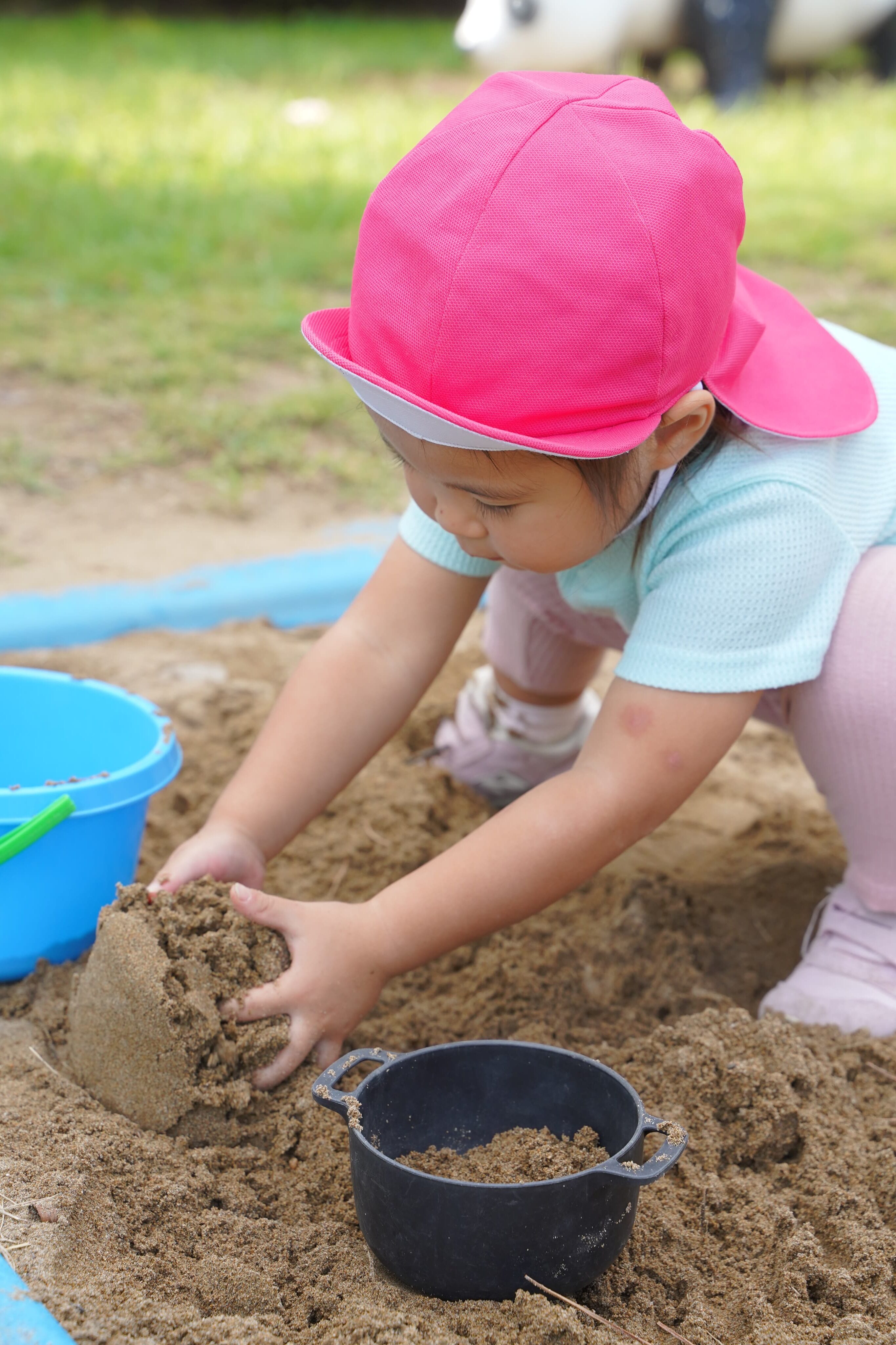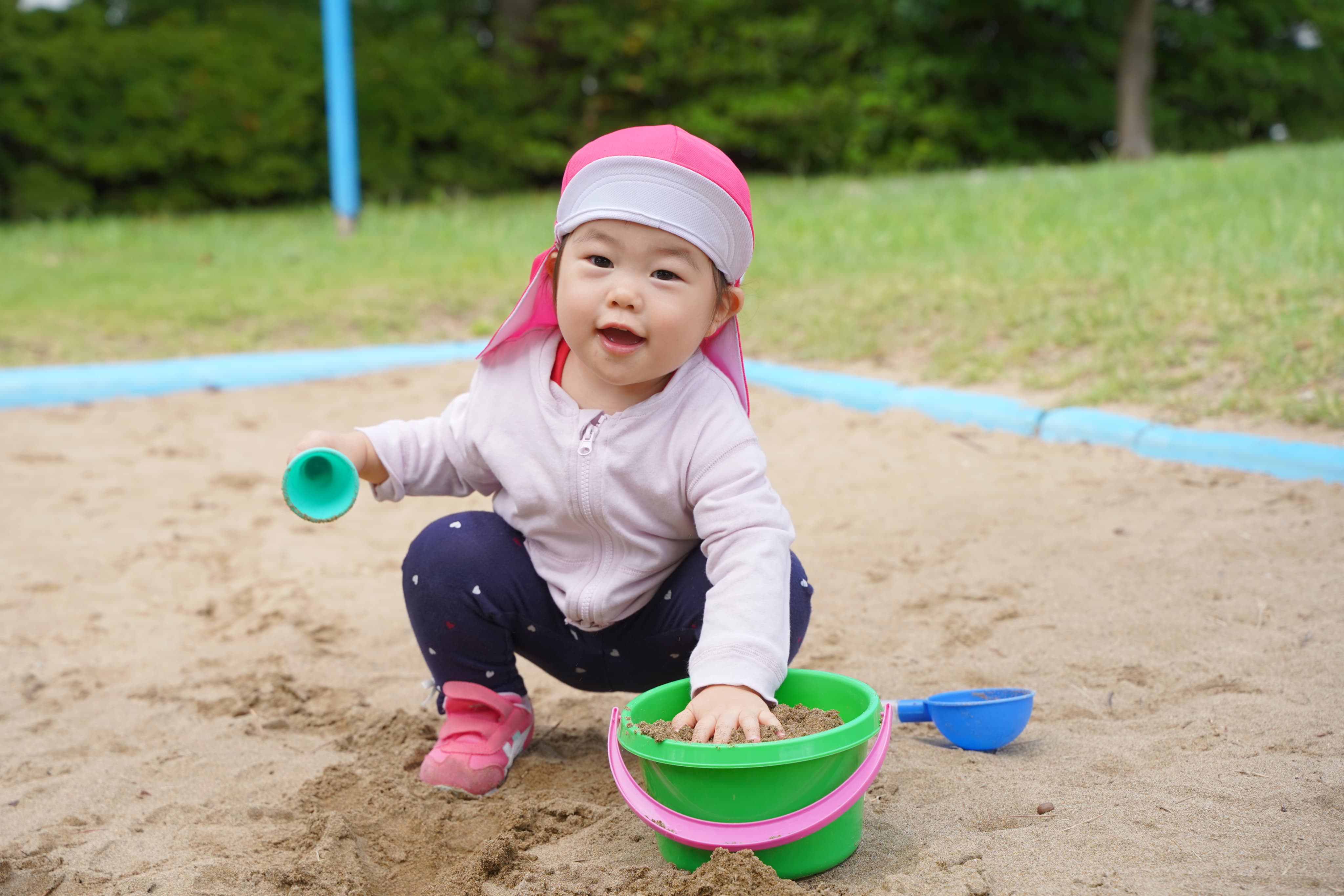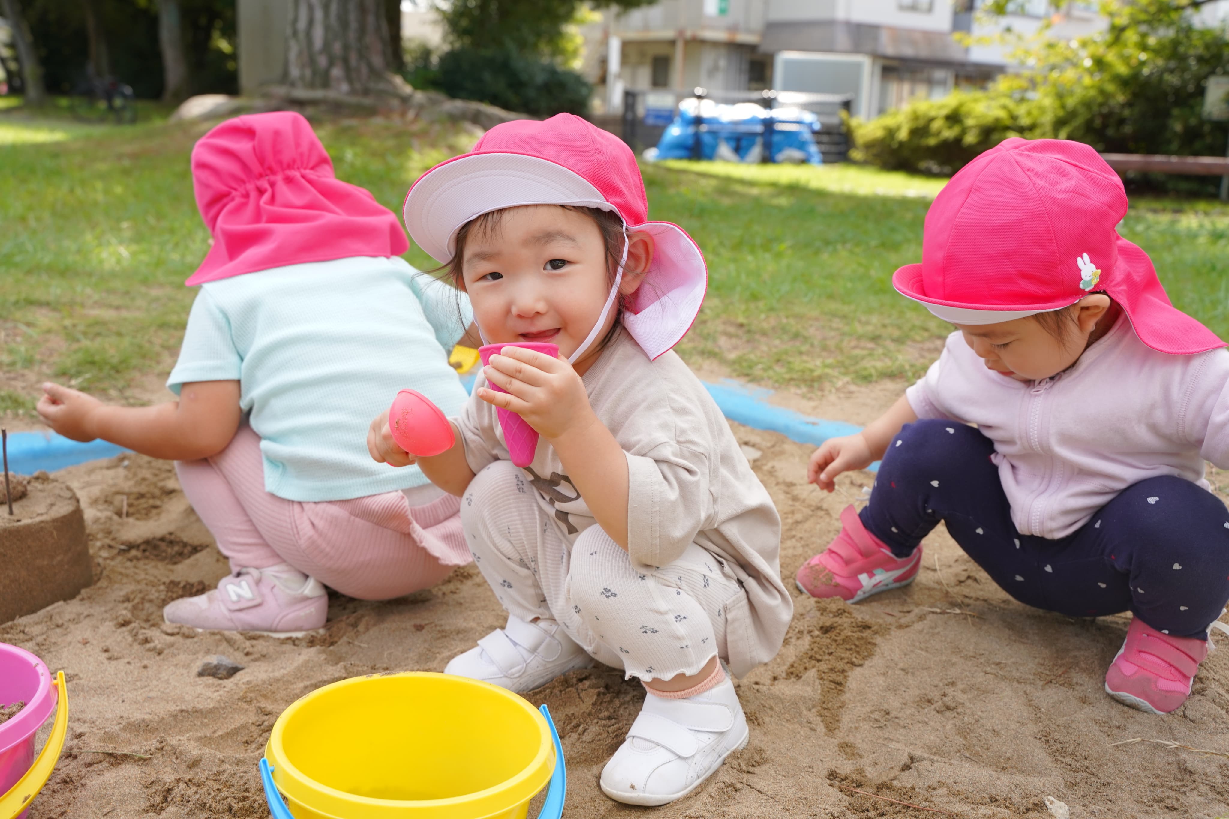 公園に着くと、「砂遊びした〜い」の一言にみんなも賛同し砂遊びが開始〜!!