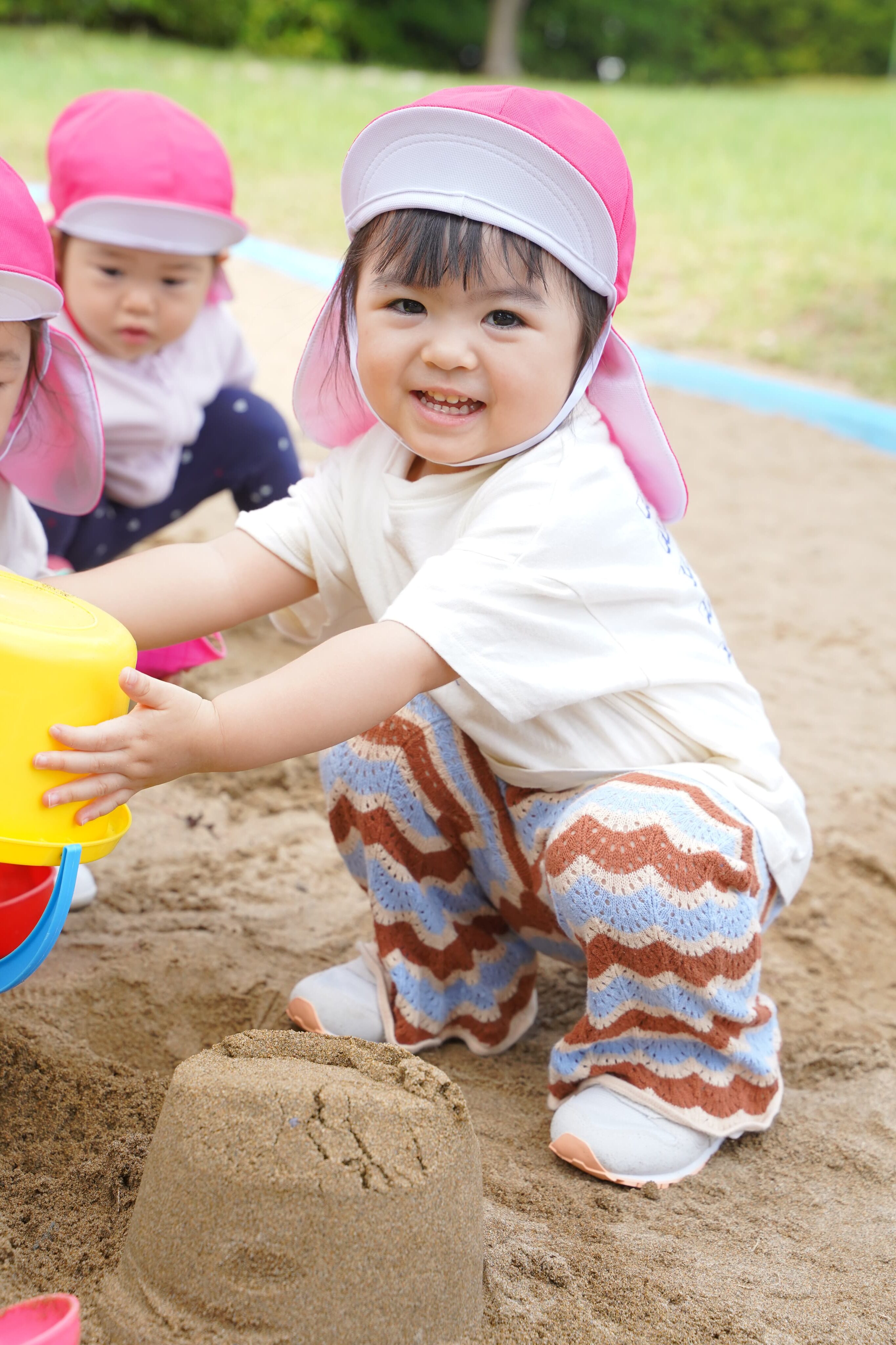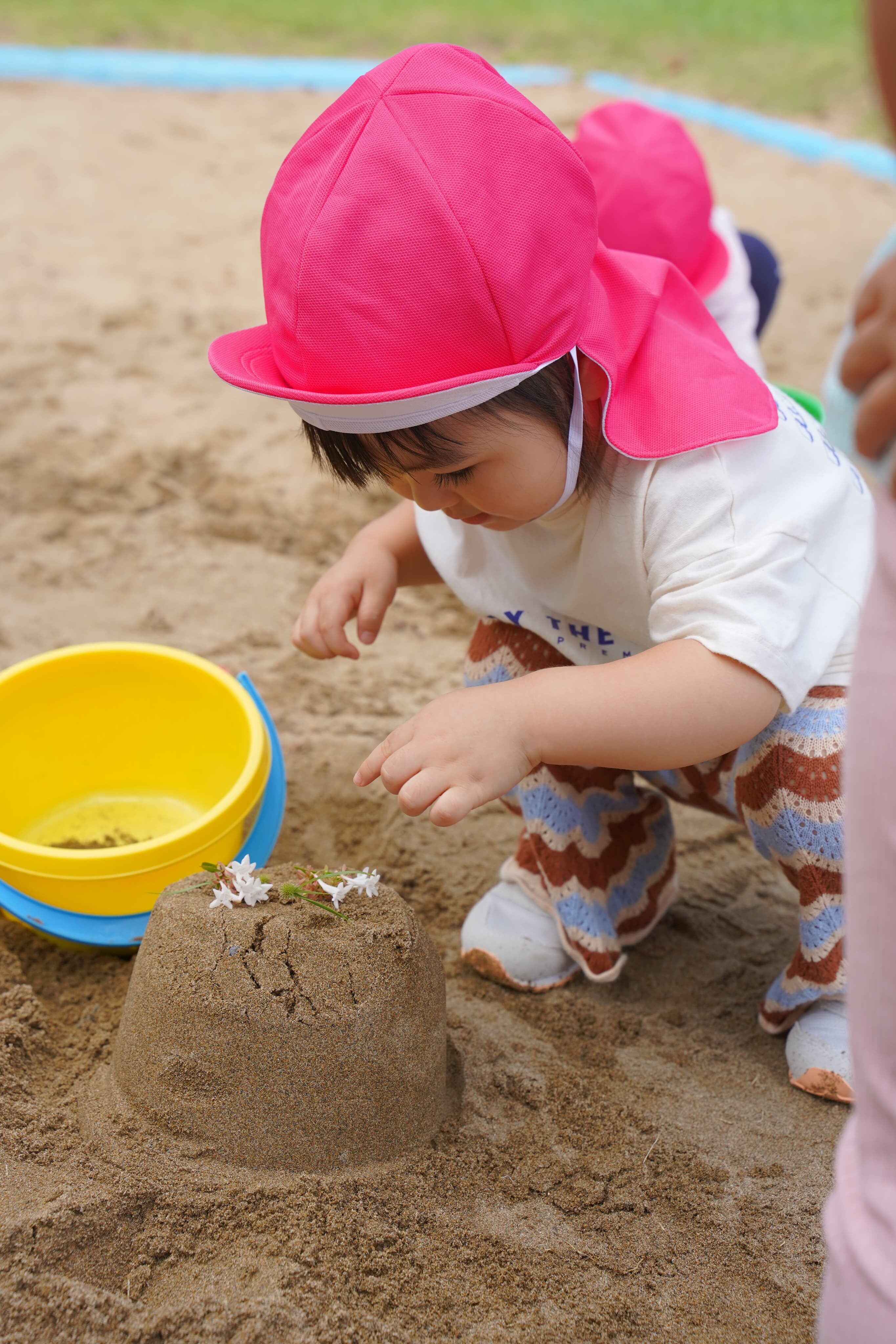 豪快に手で触れて砂の感触を楽しんだり、黙々とイメージを膨らませたりと五感を使ってじっくりと遊び込むもも組さんです♪