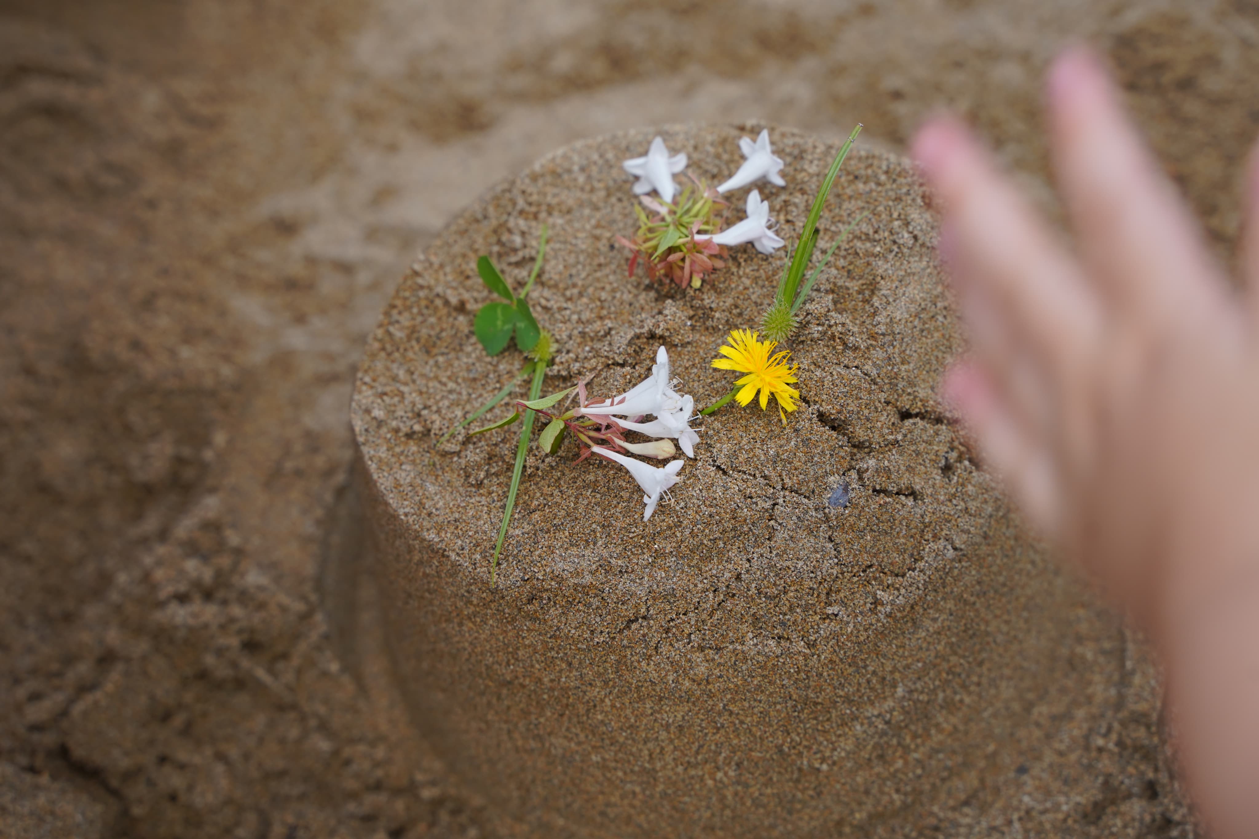 バケツにたくさん砂を入れて、よいしょとひっくり返して・・