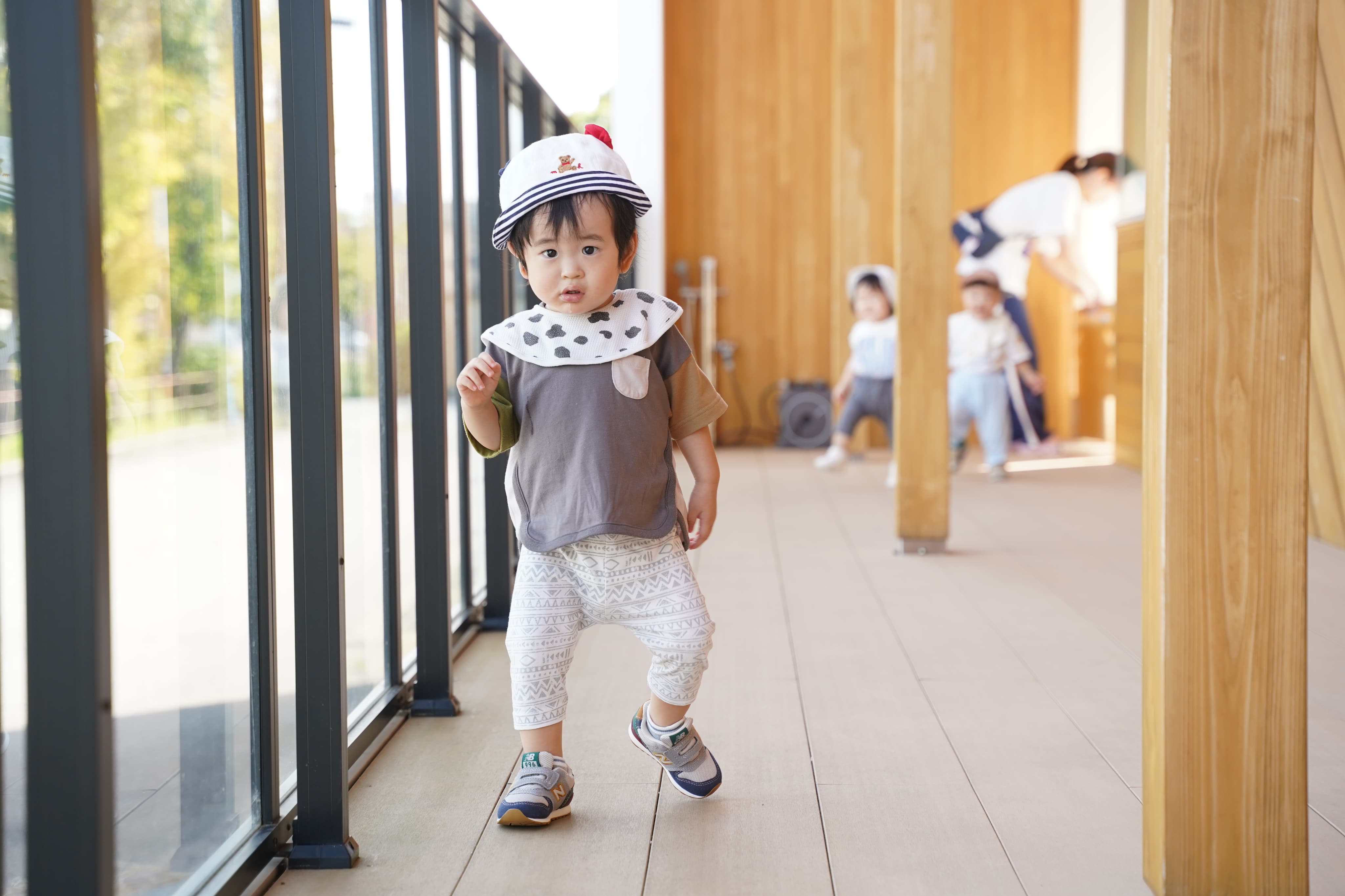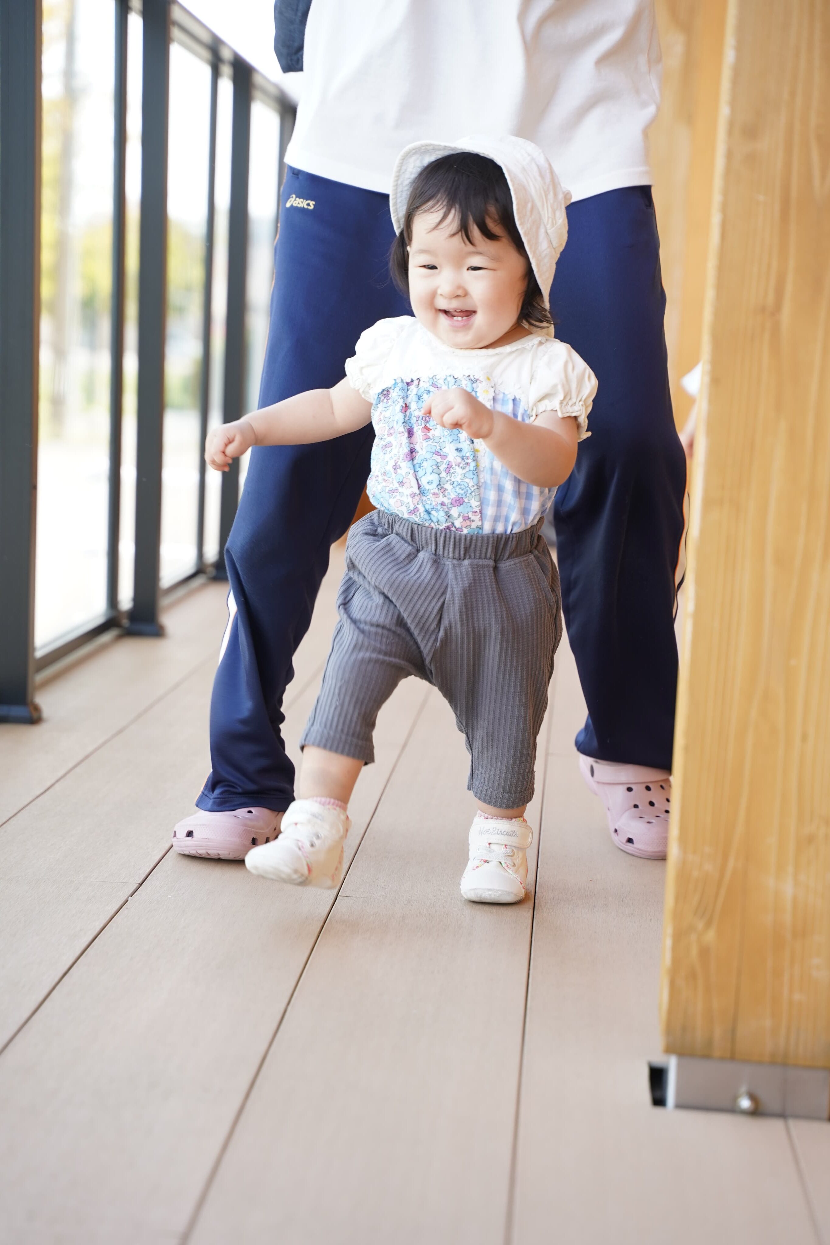 ”よーいどん!”をしたり、”まてまて〜!”と追いかけるとテラスの端から端まで元気いっぱい歩くいちご組さん❗️