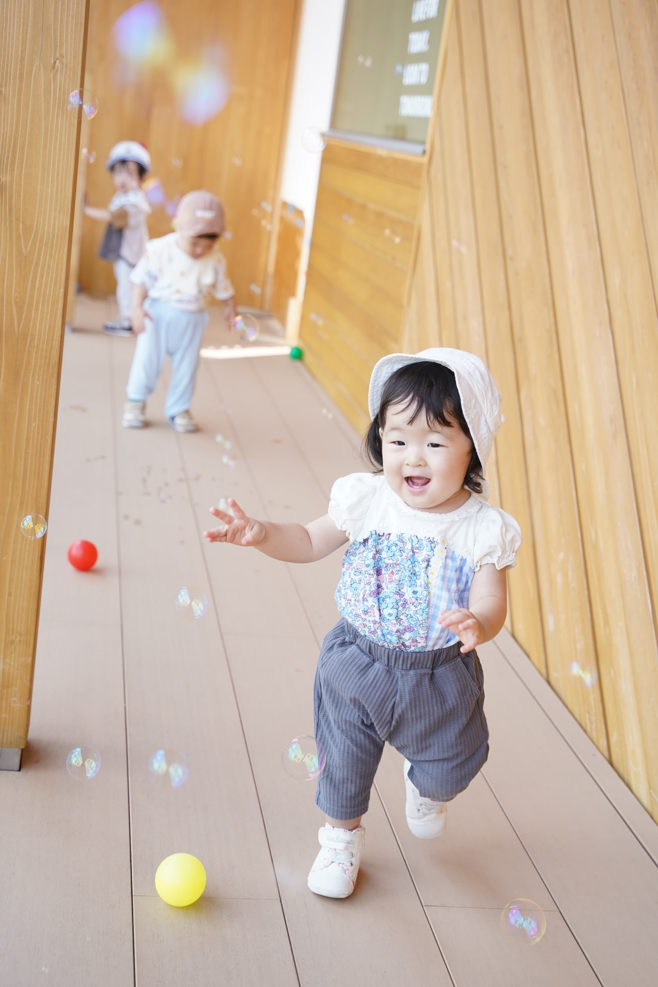 ワタシは小走りでシャボン玉を追いかけちゃいます🎶