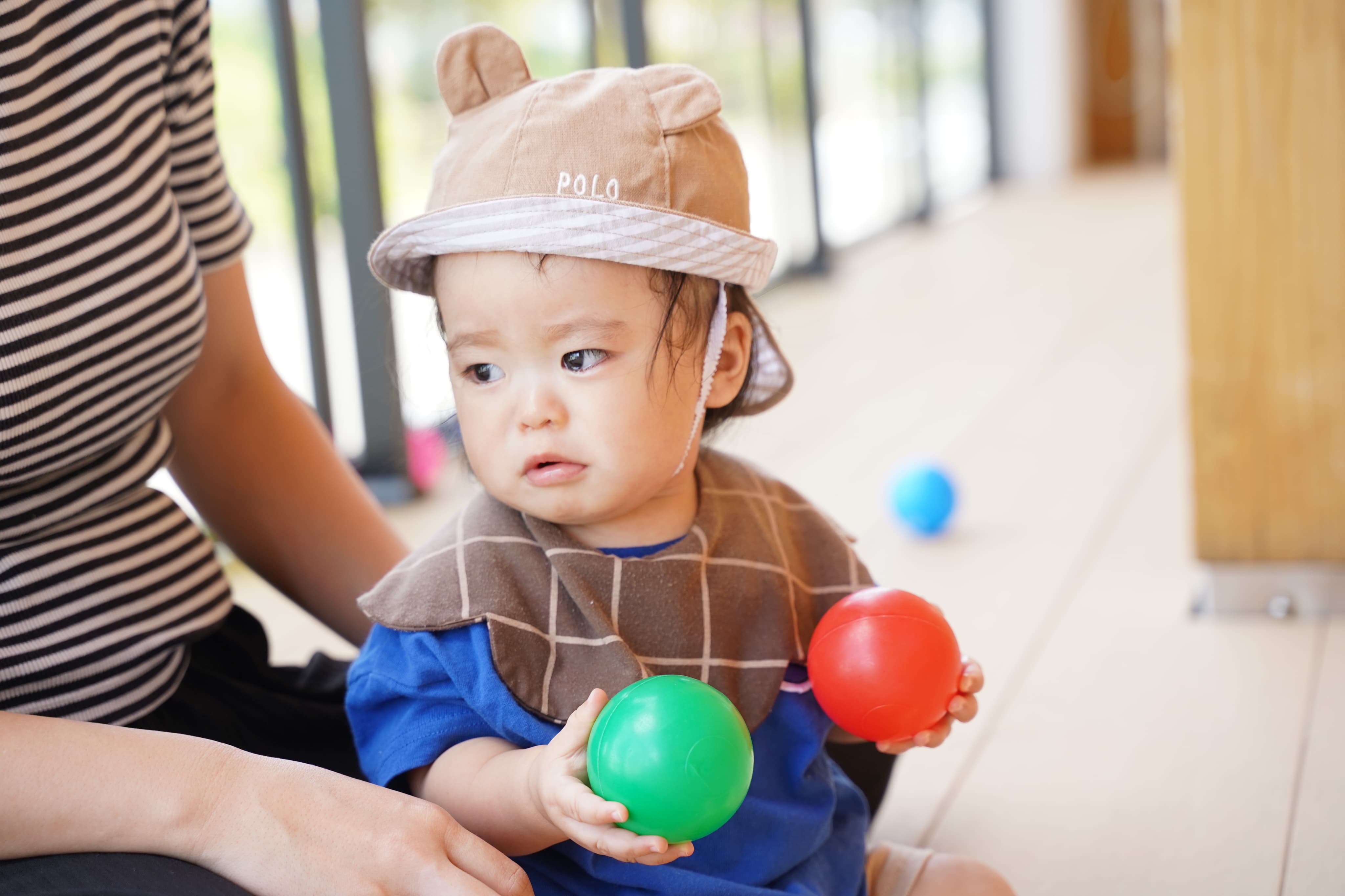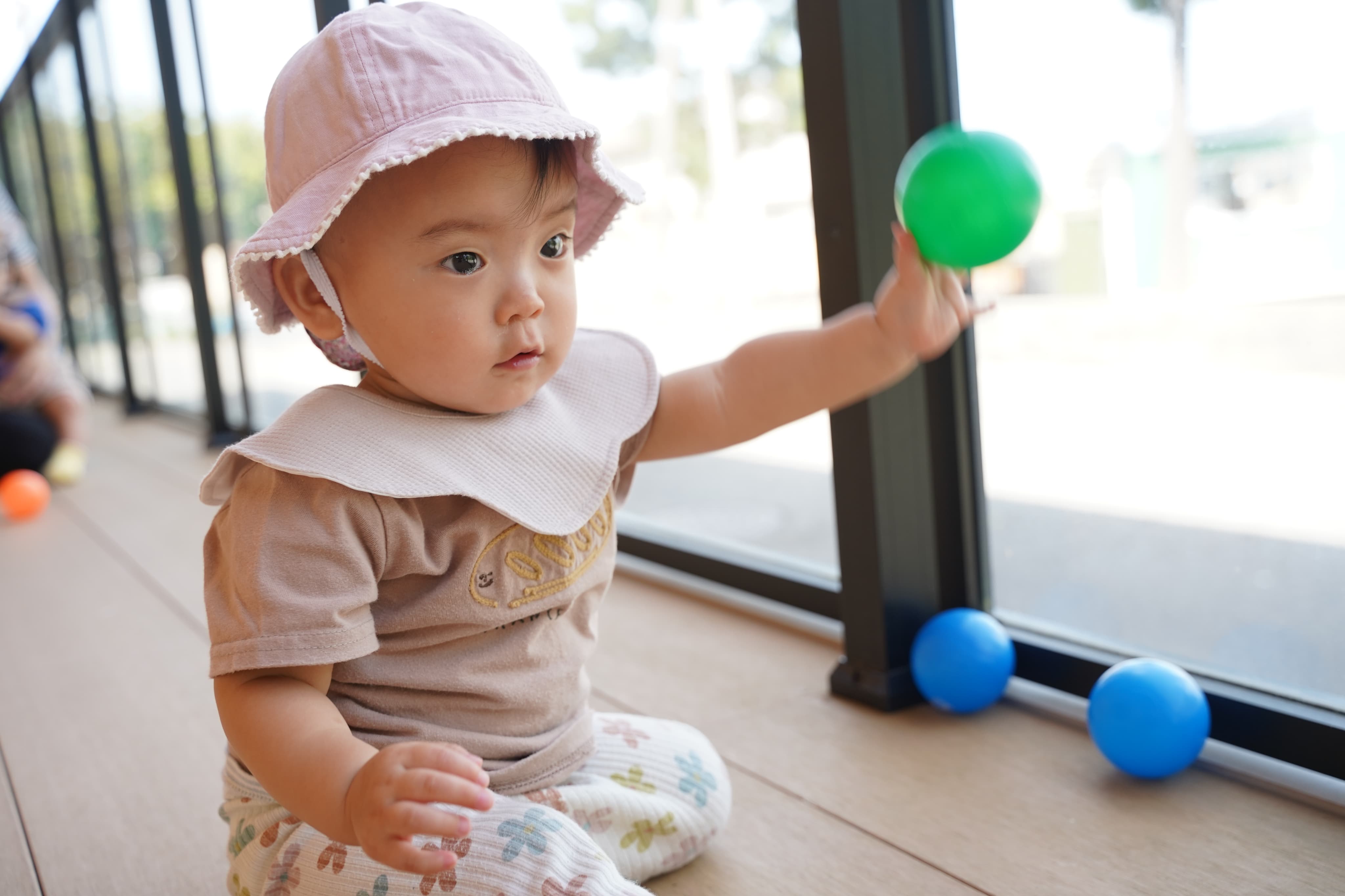 ぽいっの掛け声に合わせてあっちに投げたりこっちに投げたり..