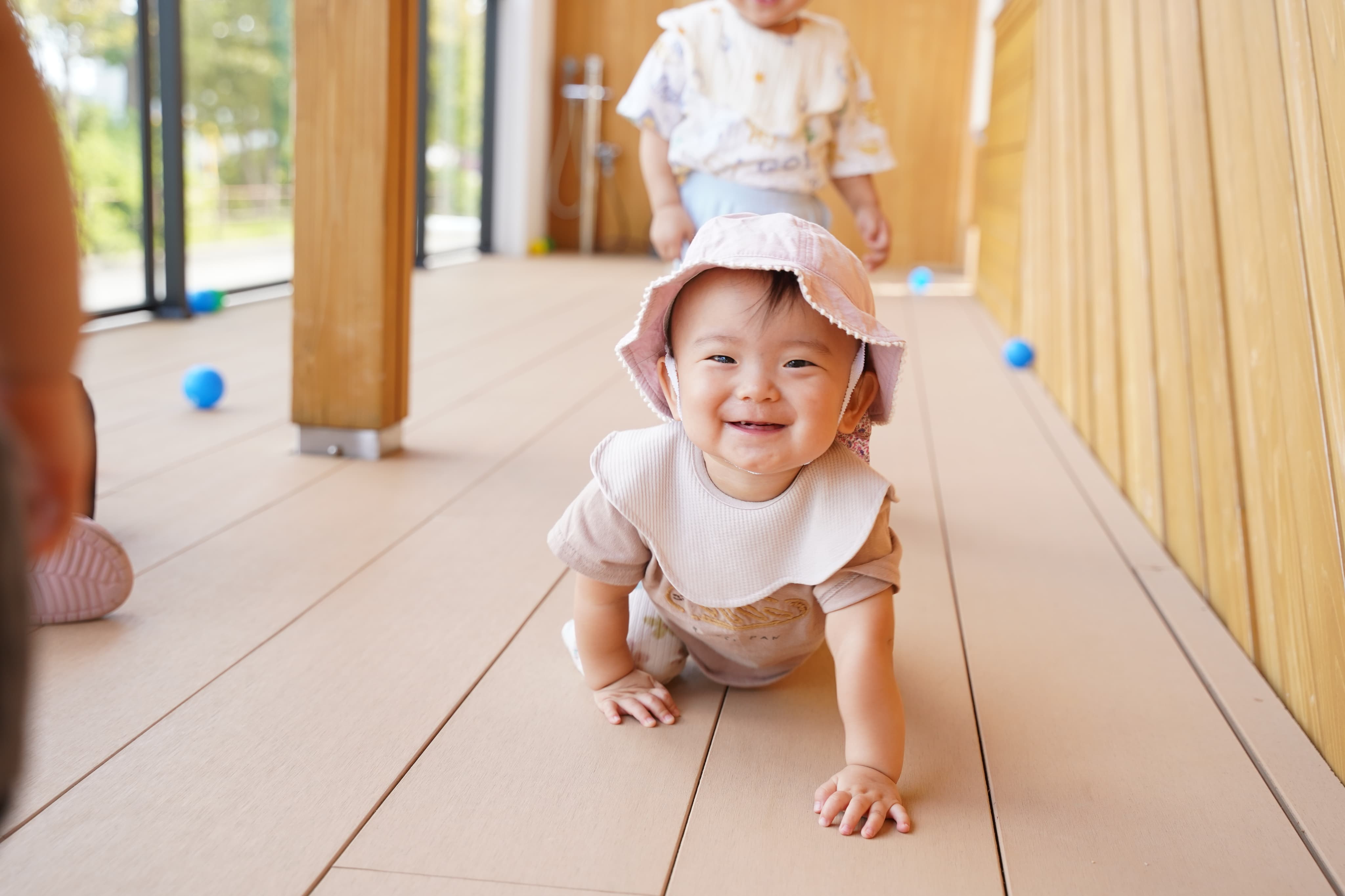 ハイハイ組のワタシたちも負けじとテラスを往復中🌟