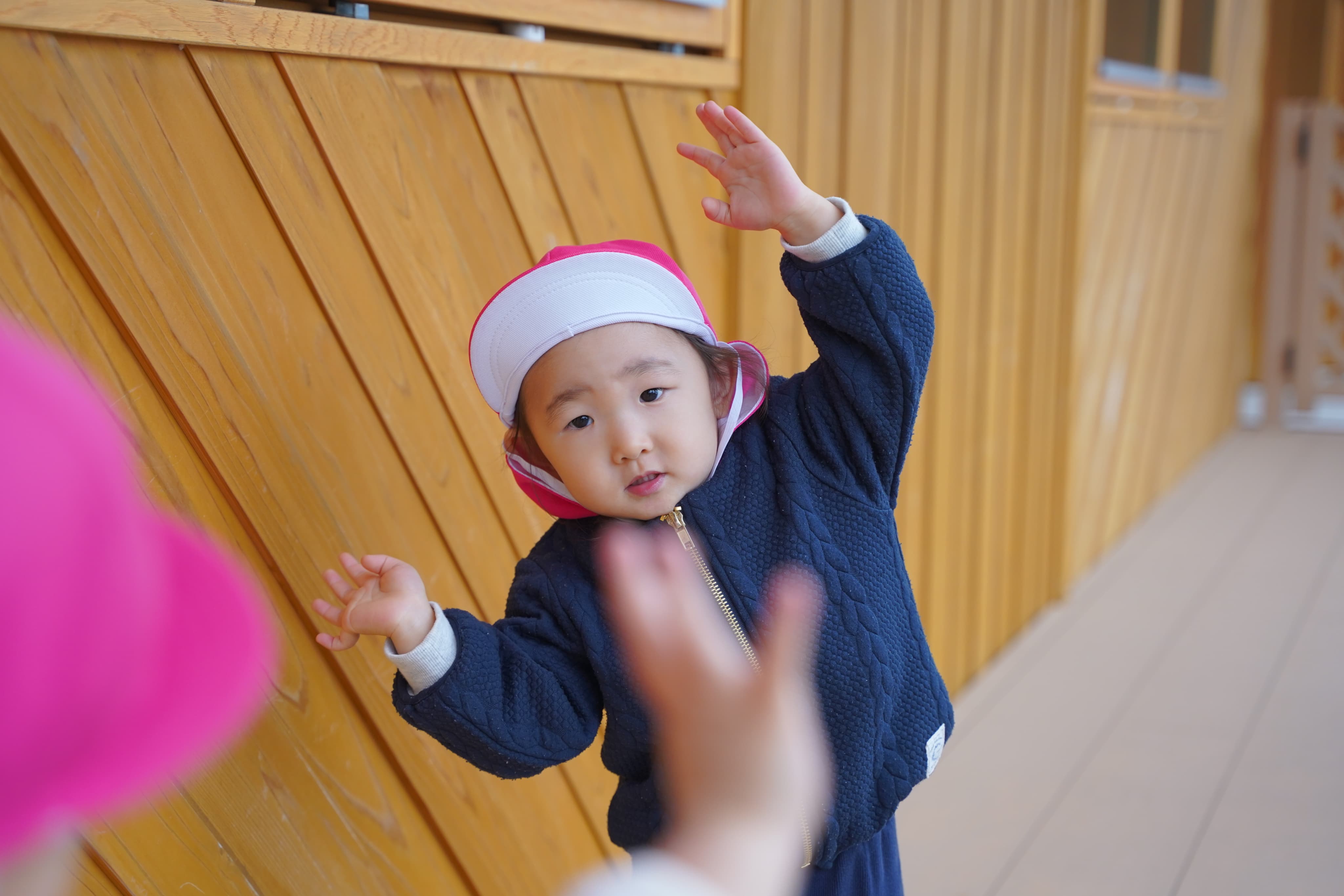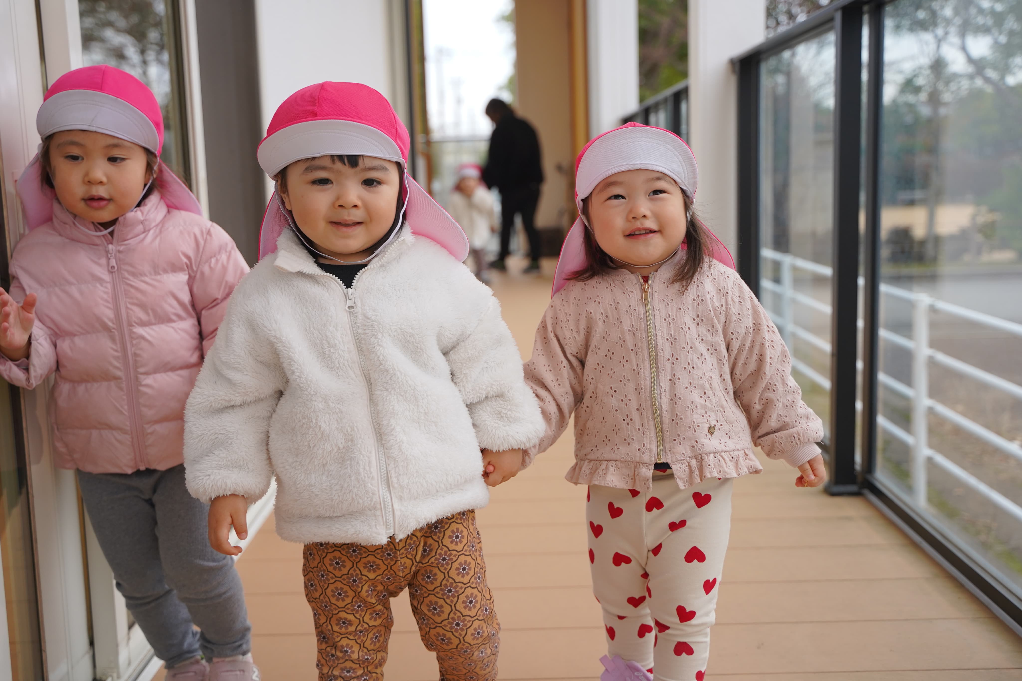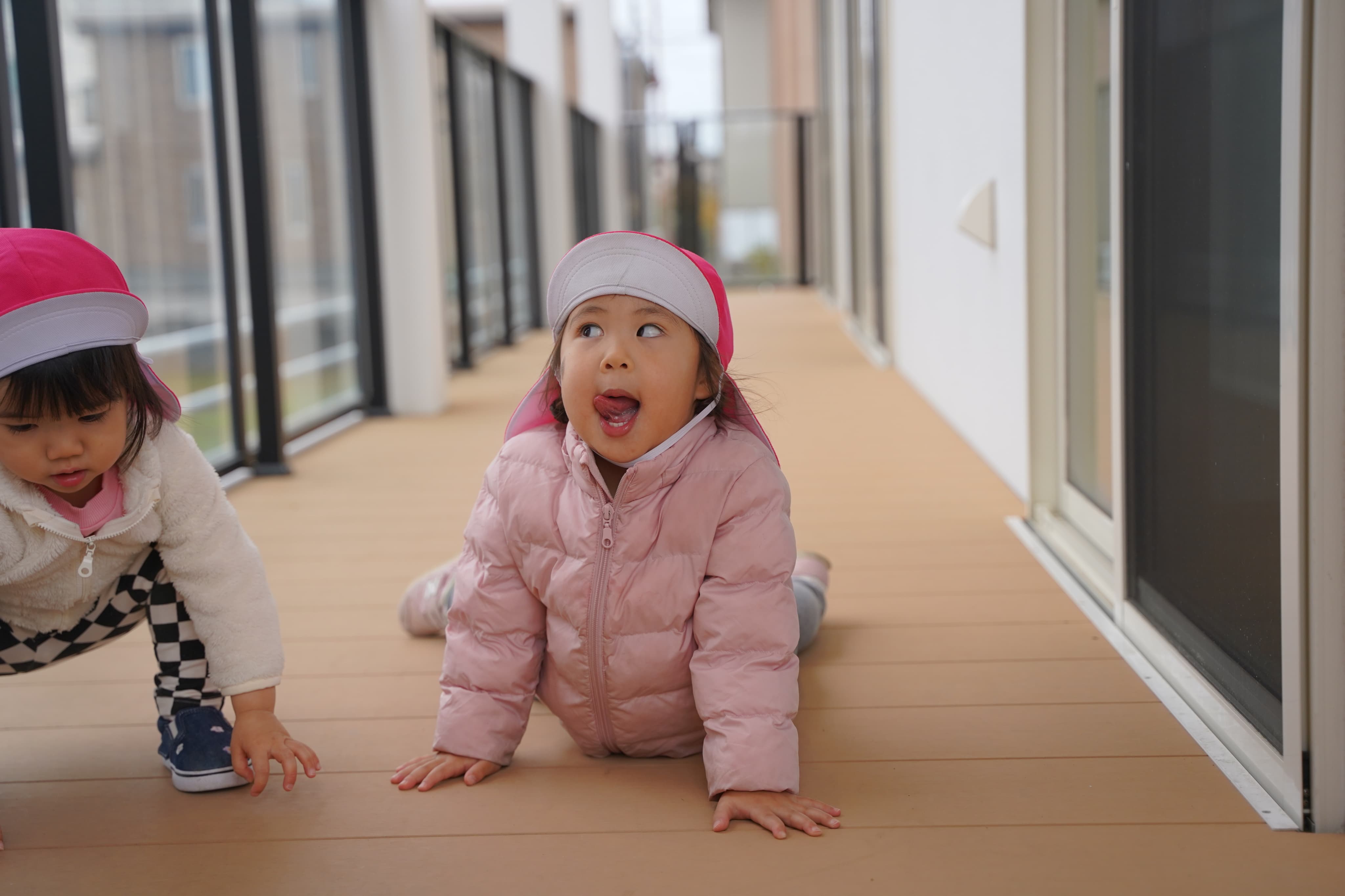 テラスでも、お友だちと手を繋いで歩くことが楽しいようです♩