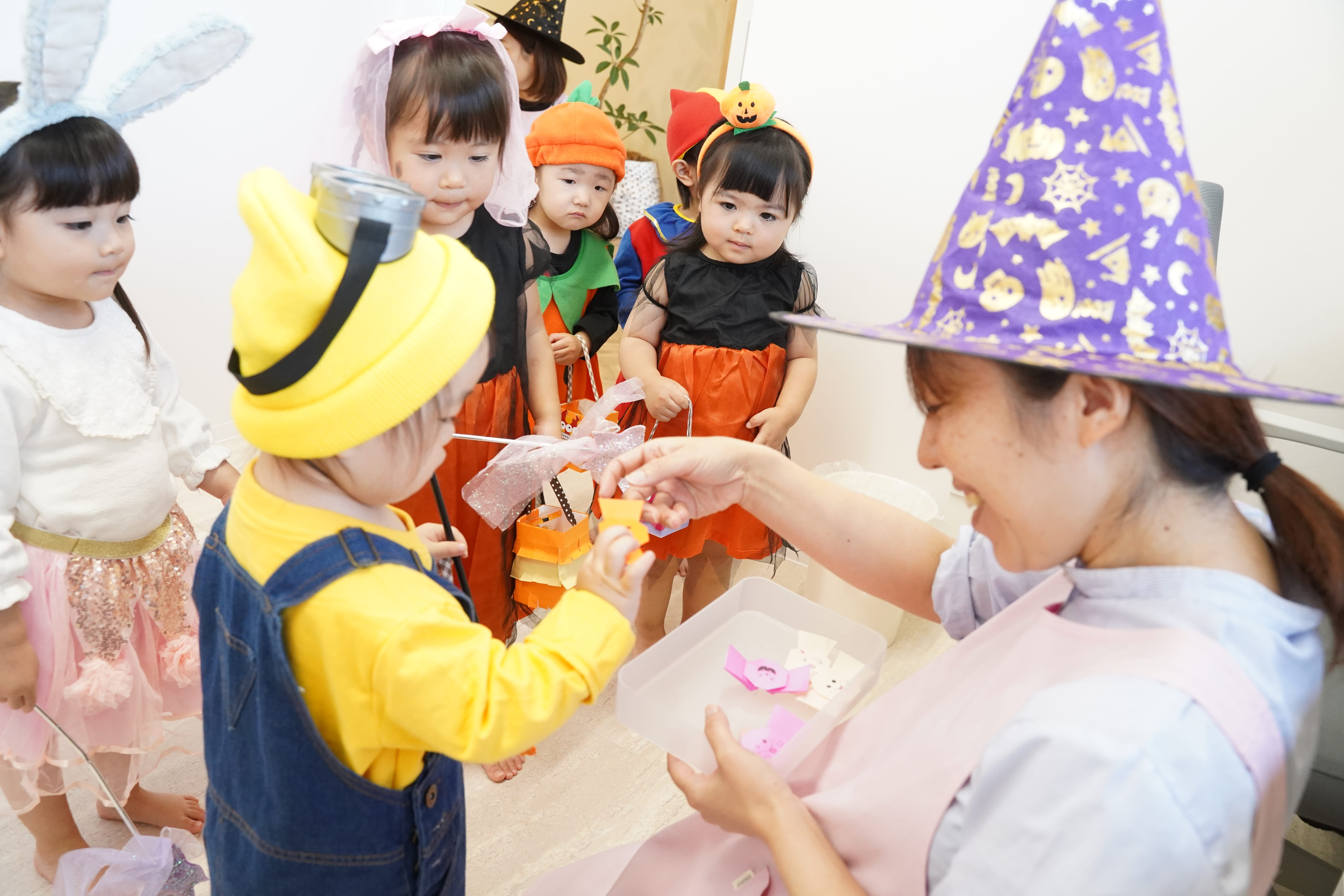 「トリックオアトリート!!!」と元気な声や、少し恥ずかしそうにする子など、反応は様々😊