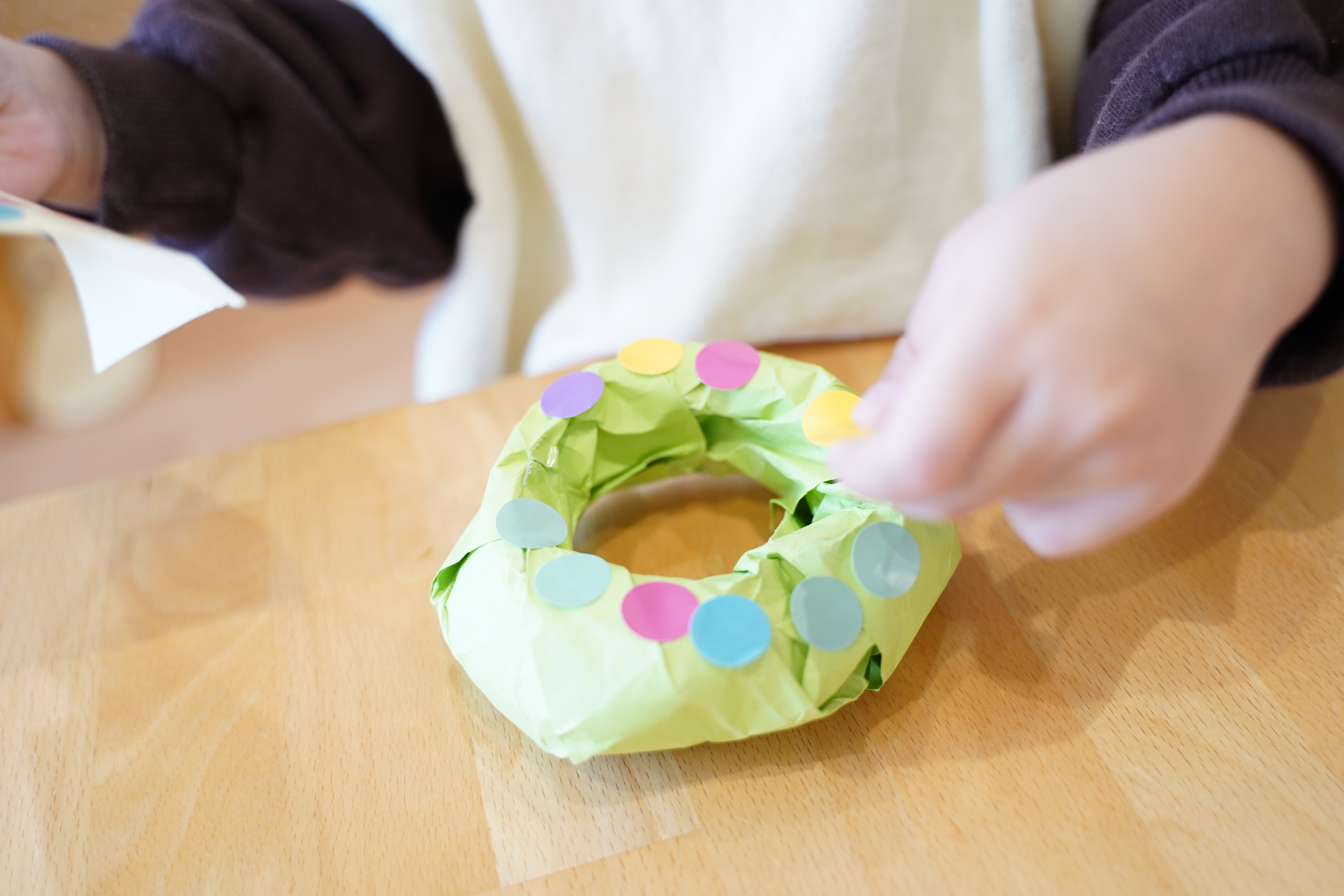 シールを貼っていい感じの美味しそうなドーナツ完成🍩