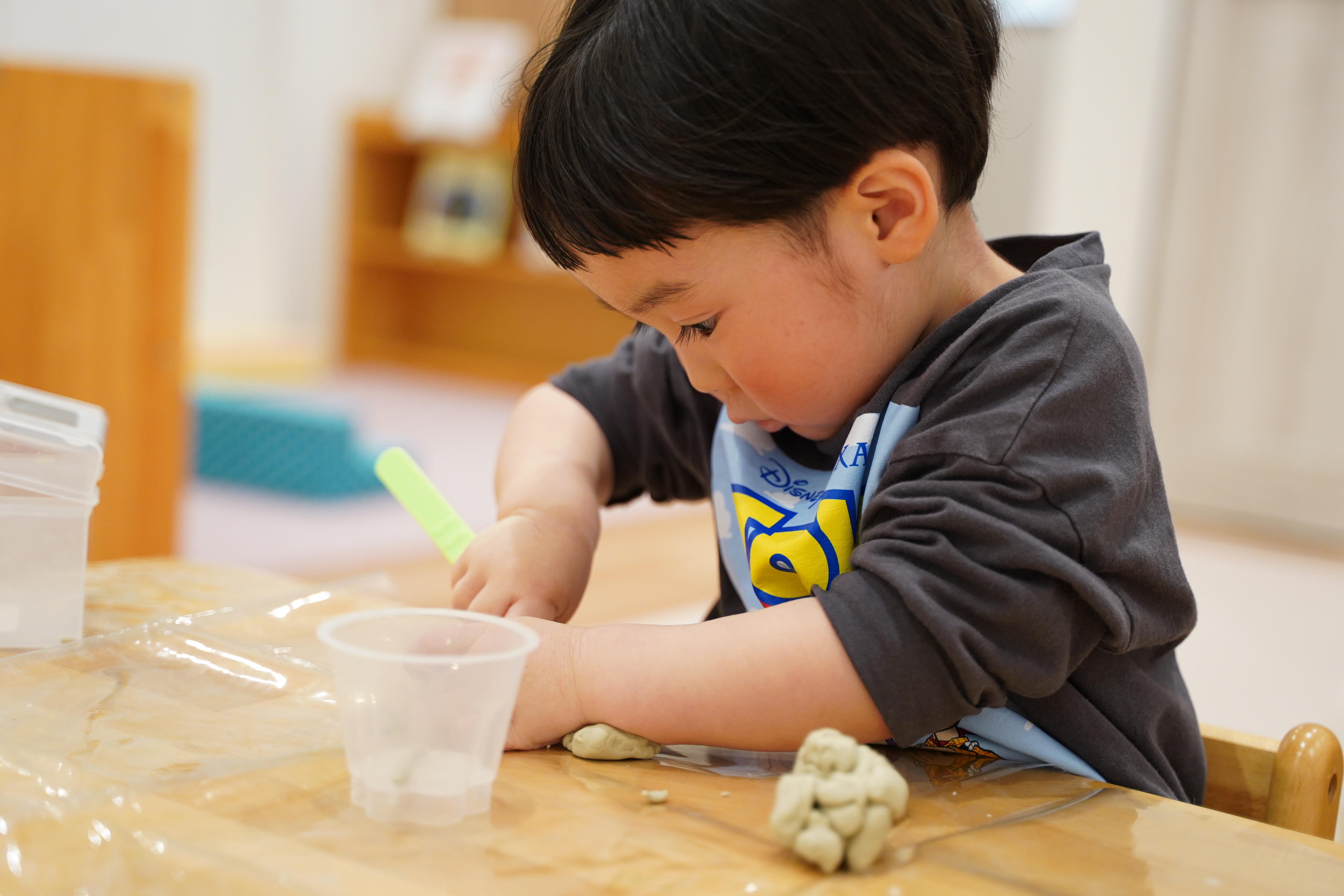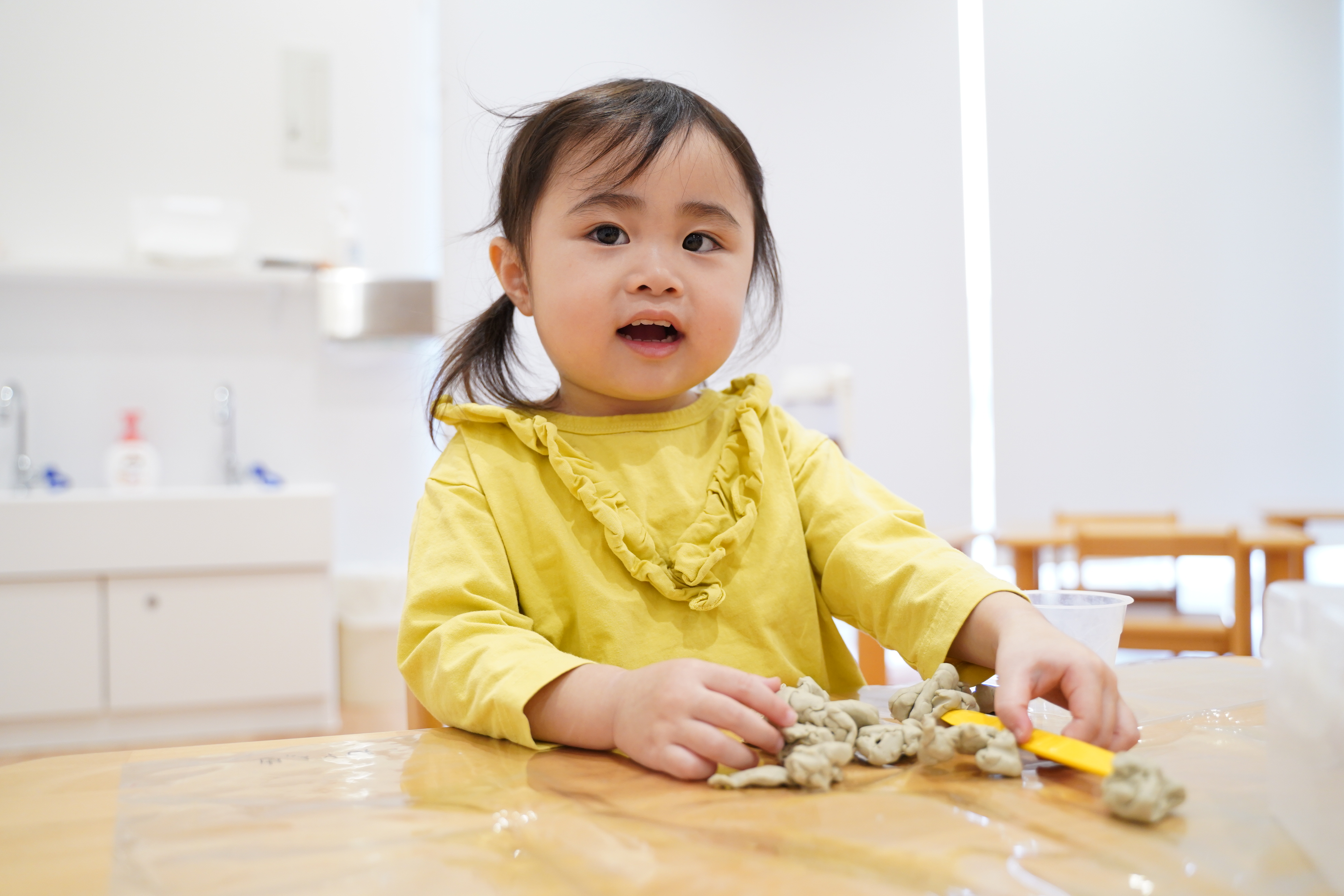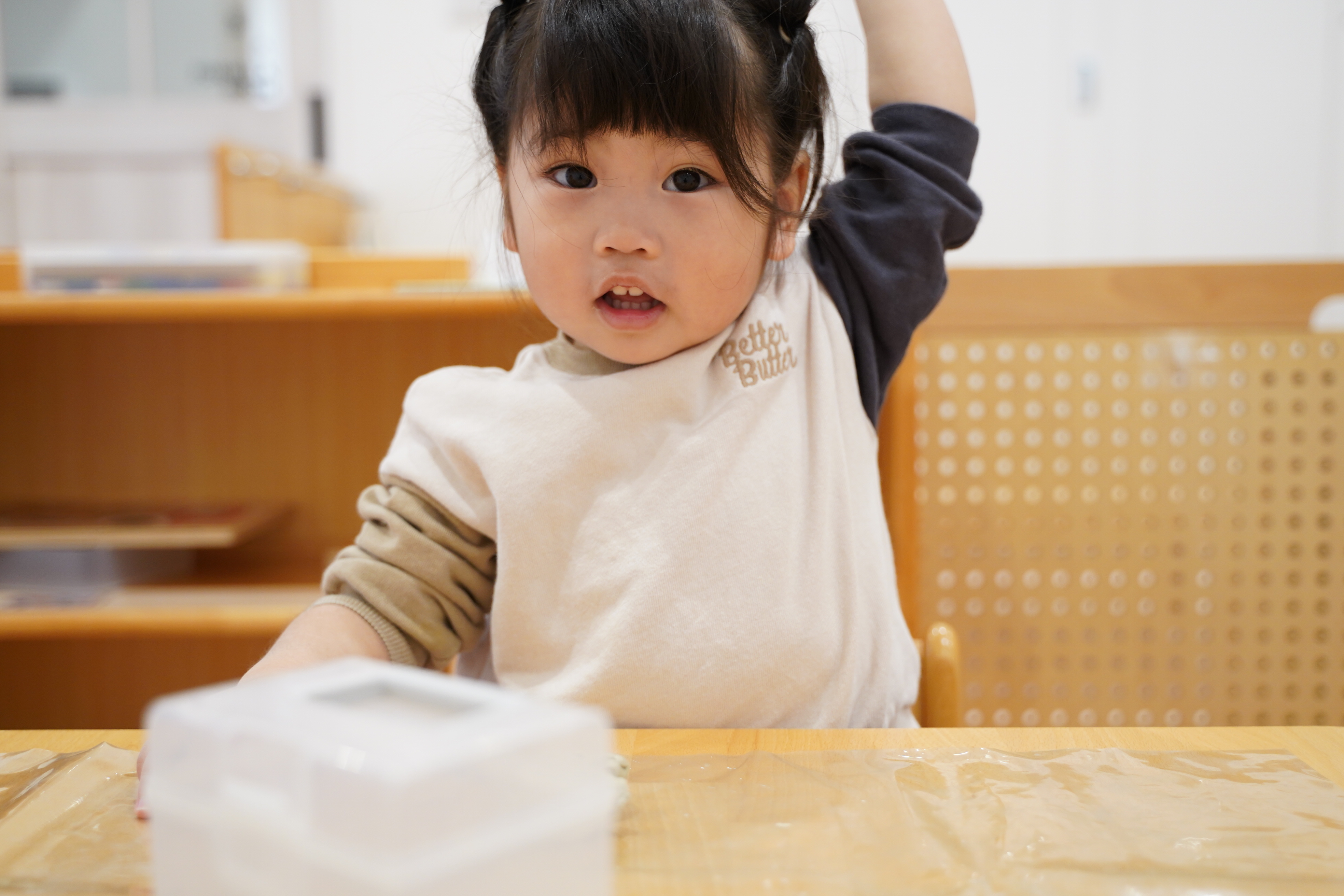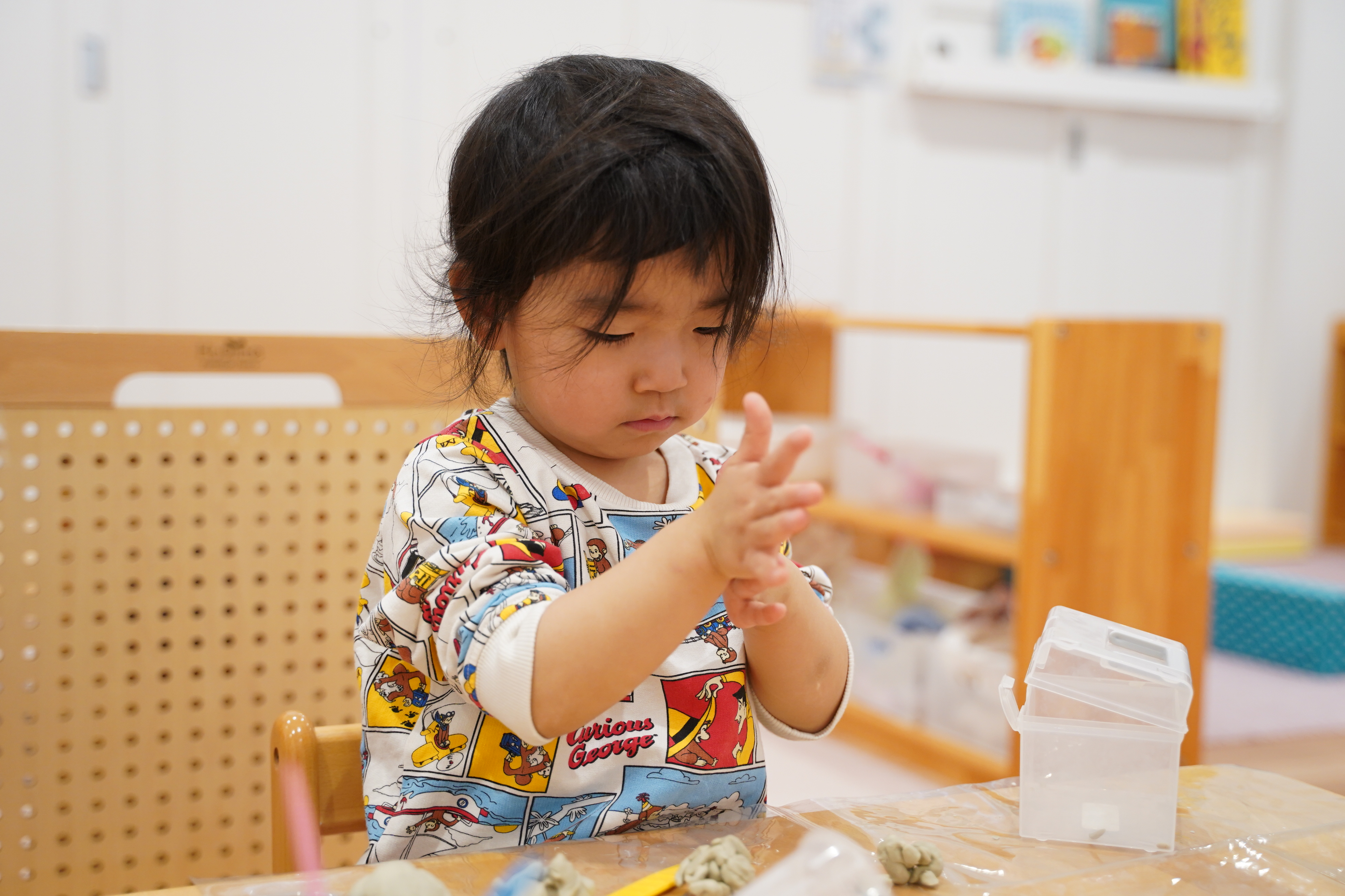 1歳児さんは、体を動かしたあと粘土遊びをしました🐾