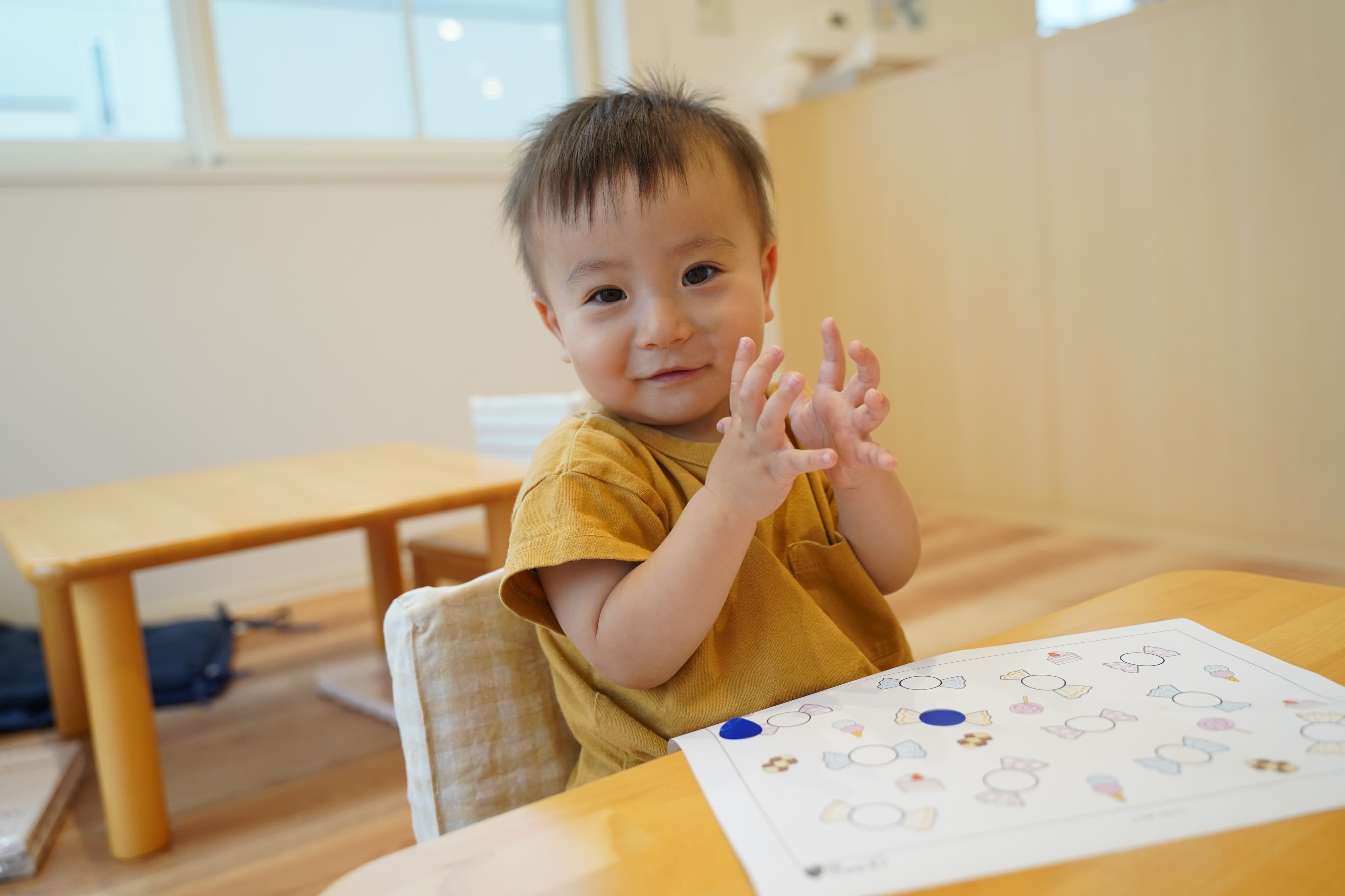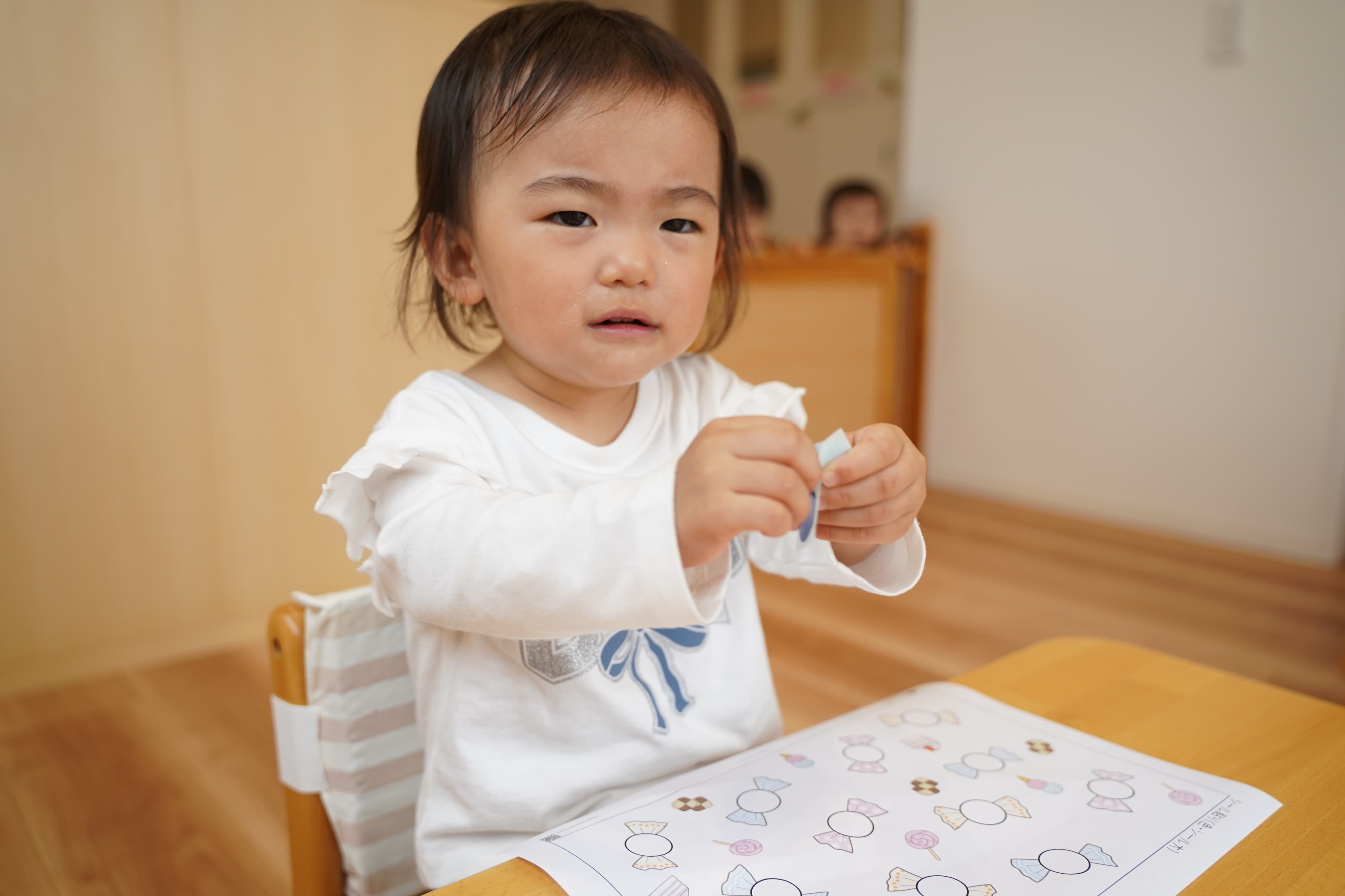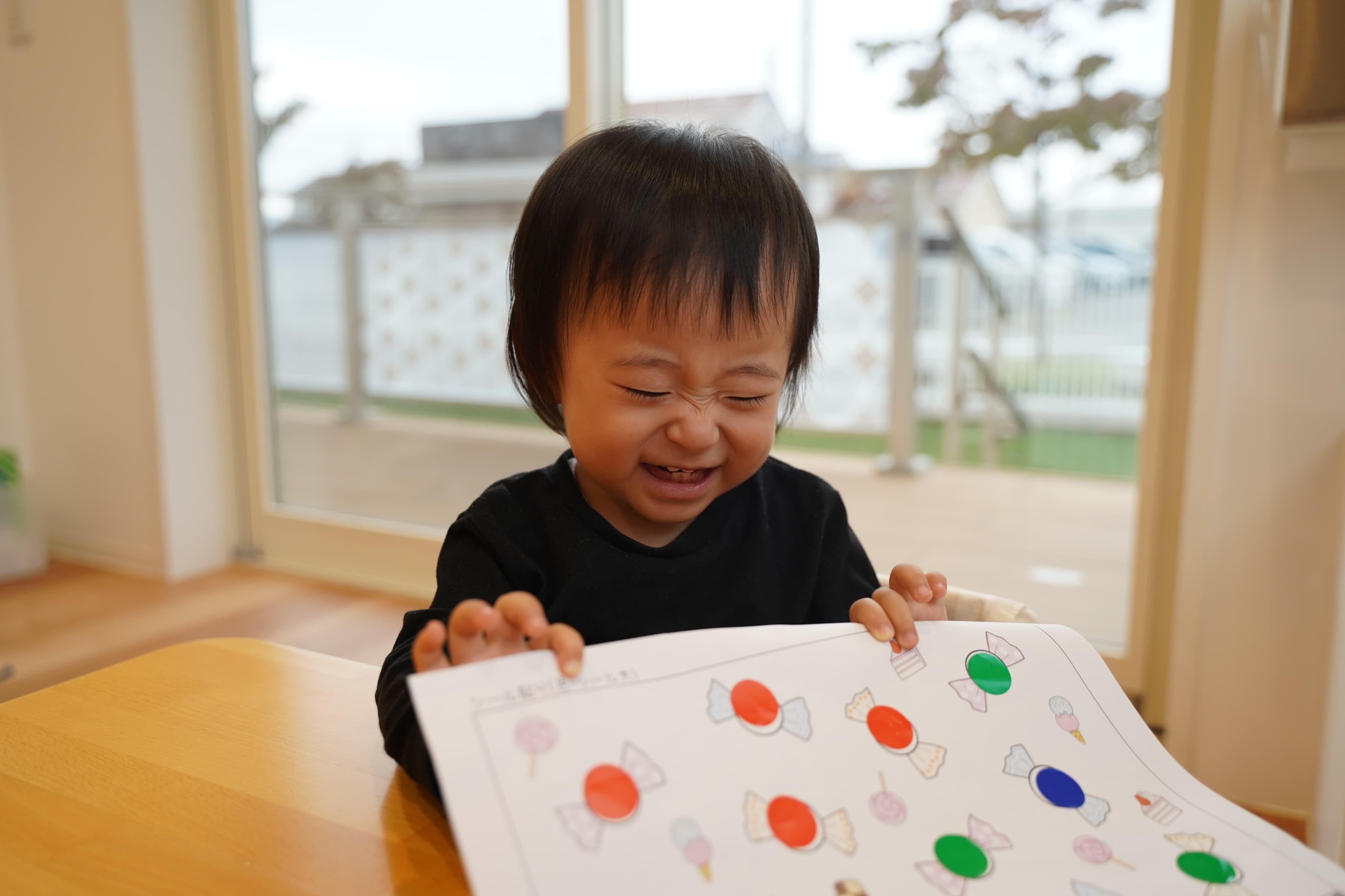 以前やってみたときは、口に入れようとしたりシールがめくれなくて怒っていた子もいたのですが、何度か挑戦しているうちにみんなそれぞれに上達していてびっくりしちゃいました☺️
